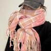 Cachecol xadrez de atmosfera retrô para meninas inverno ins versátil grosso quente longo xale lenço de estudante de dupla utilização