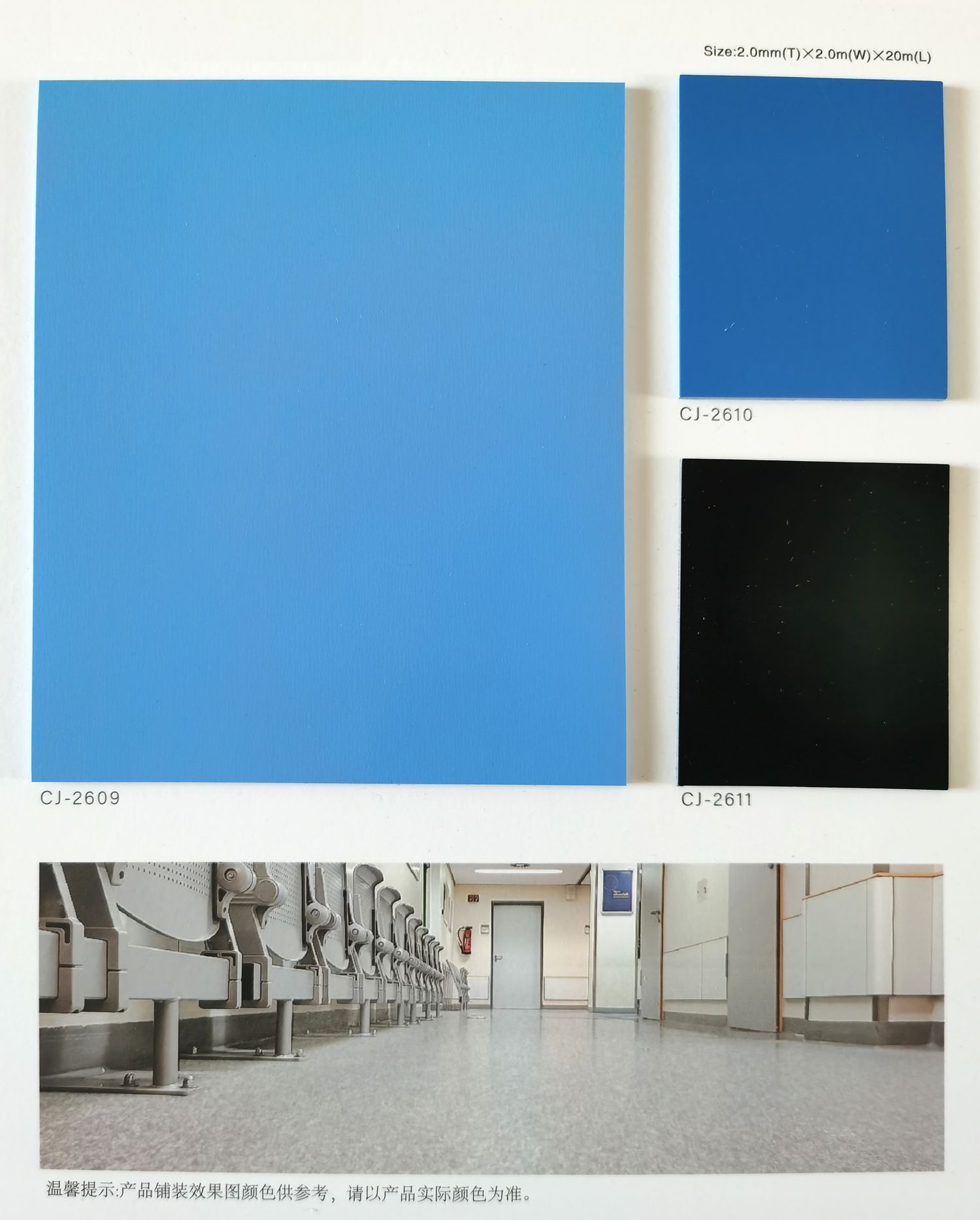Os seguintes pisos de PVC homogêneos e permeáveis (adequados para locais de alto desgaste, como hospitais, escolas, casas de repouso, salas limpas, oficinas, fábricas, etc.)
