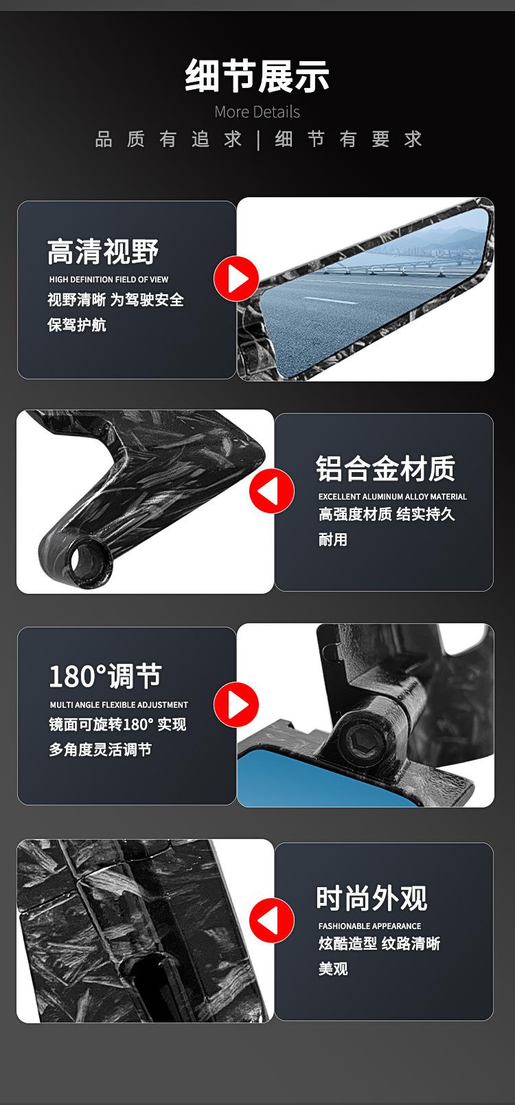 Espelho Retrovisor Personalizado para Bicicleta Elétrica/Acessório para Não-Motocicleta Espelho Retrovisor Asa Fixa Modificado Refletor para Marcha à Ré