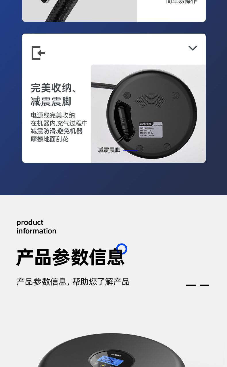 Bomba de inflador de carro Deli pneus de carro de alta potência portátil elétrico de alta pressão inflando sem fio