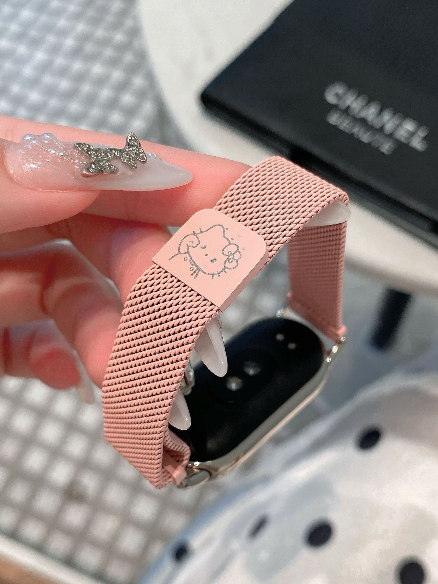 Compre Pulseira de Relógio de Metal Magnética Forte Gravada a Laser Milanês Adequada para Xiaomi Mi Band 10/9/8 Geração no atacado no Joom.pro