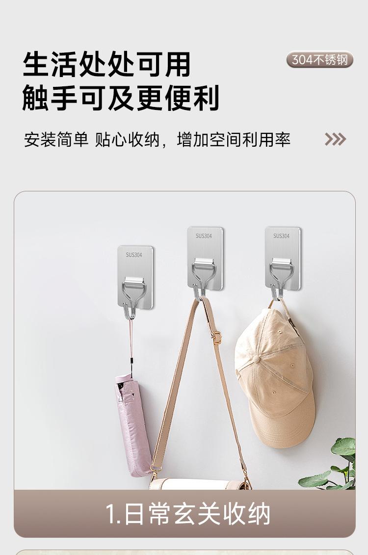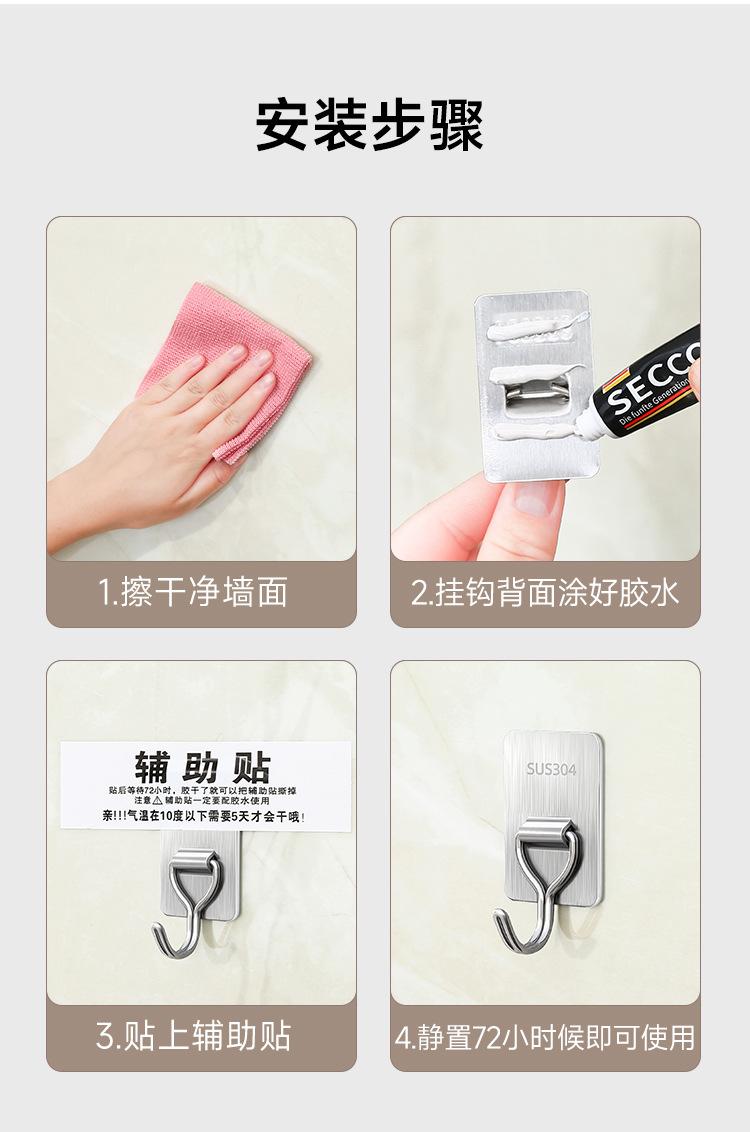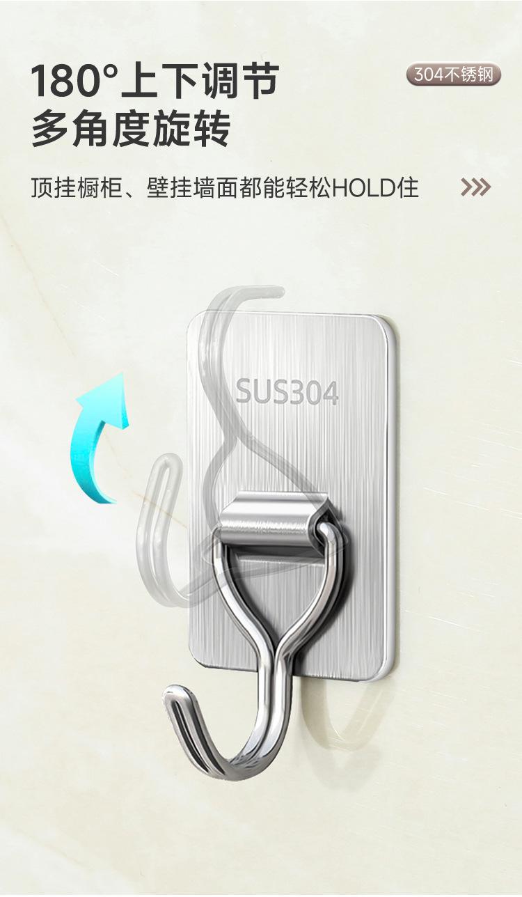 5 Gancho Punch-free Forte Carga-rolamento Viscose Gancho Único Gancho de Aço Inoxidável na Parede do Banheiro da Cozinha