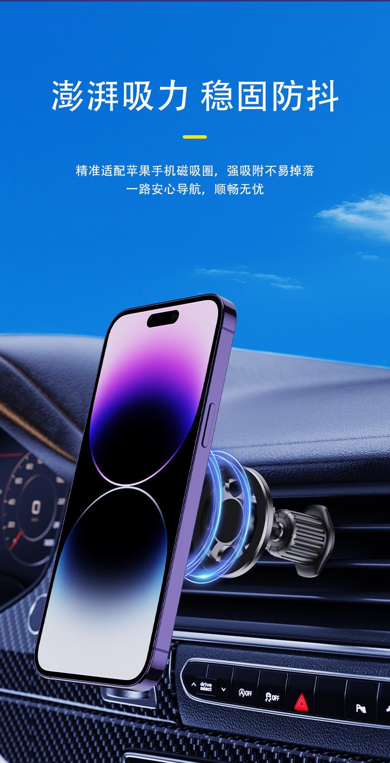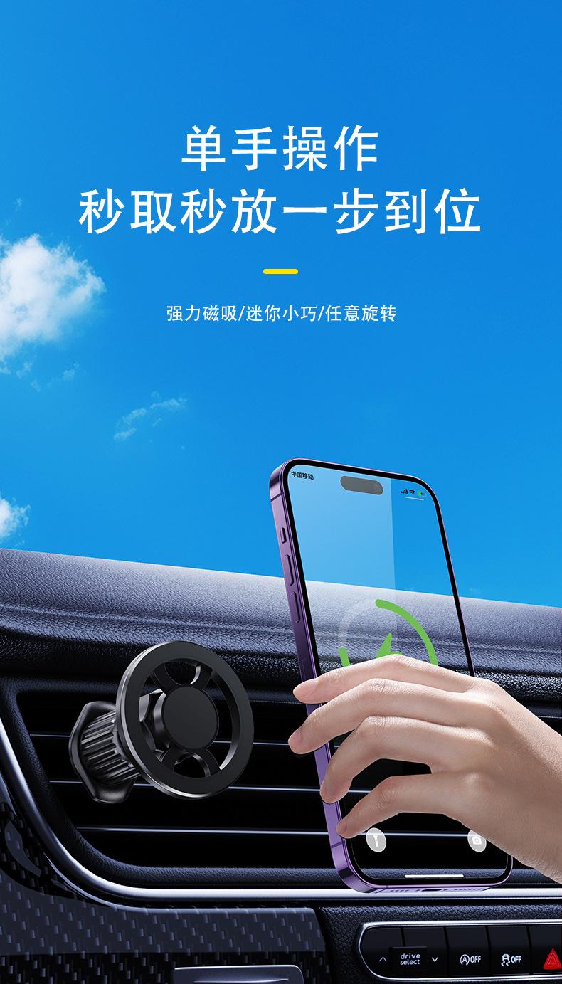 Suporte de telefone móvel de carro com sucção magnética de metal transfronteiriço Suporte de saída de ar de navegação para carro Suporte giratório de navegação para telefone móvel