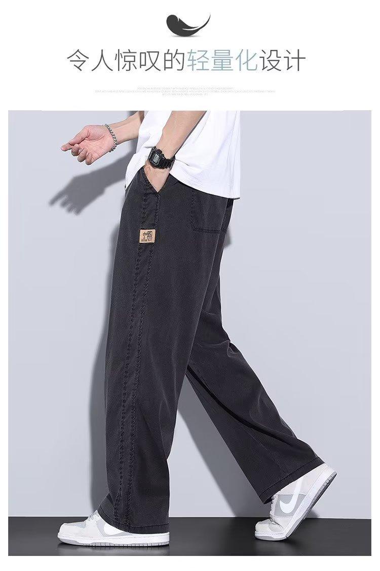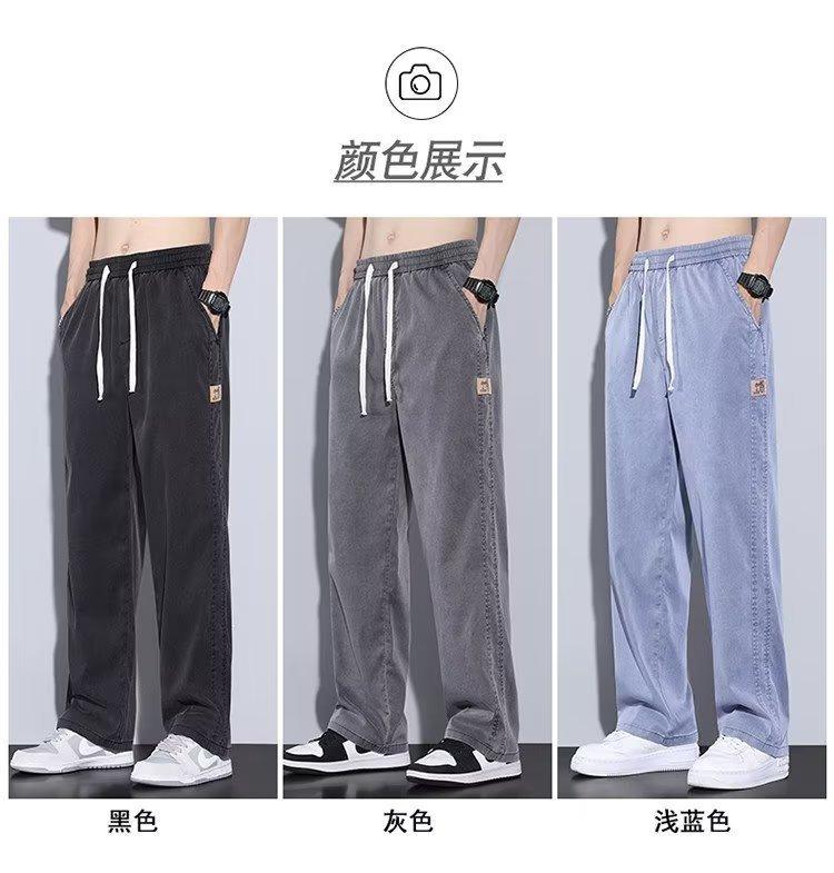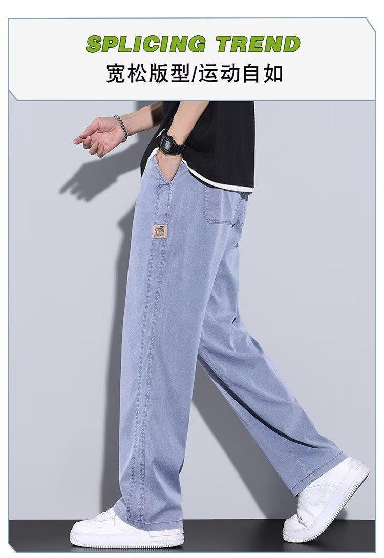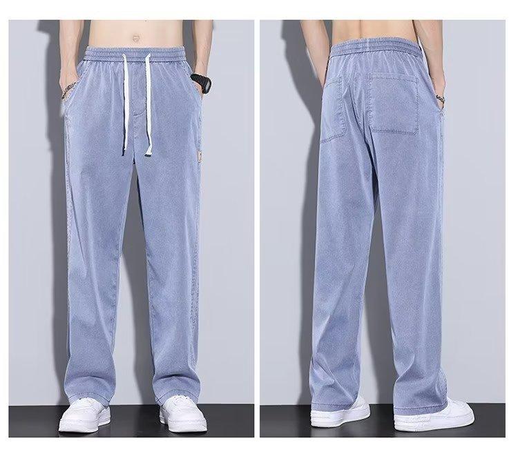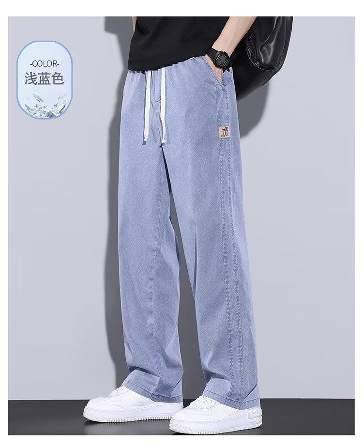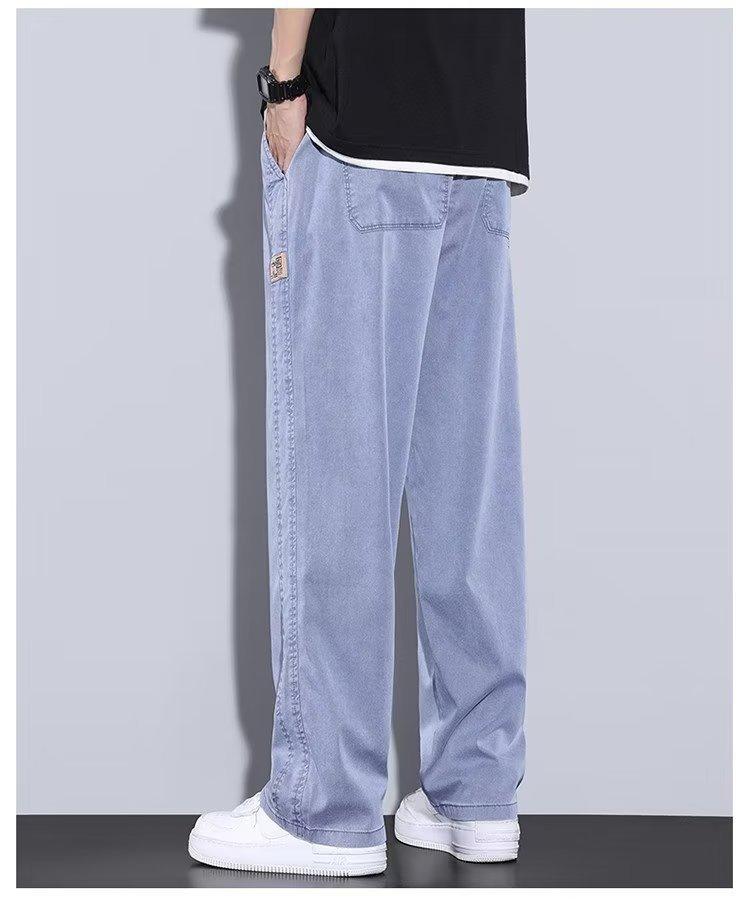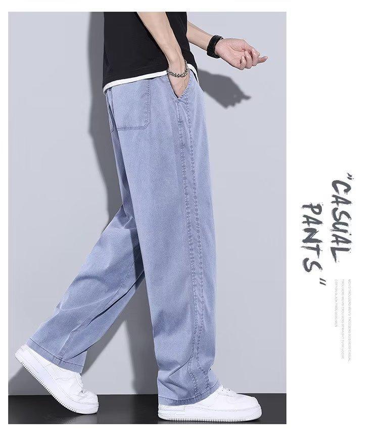 Calça jeans fina de verão Tencel masculina solta reta casual de perna larga calças masculinas de seda gelo calças da moda masculinas