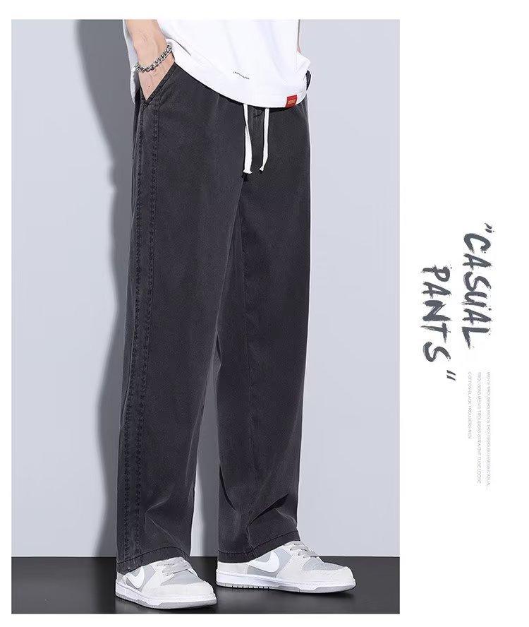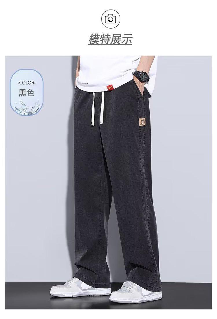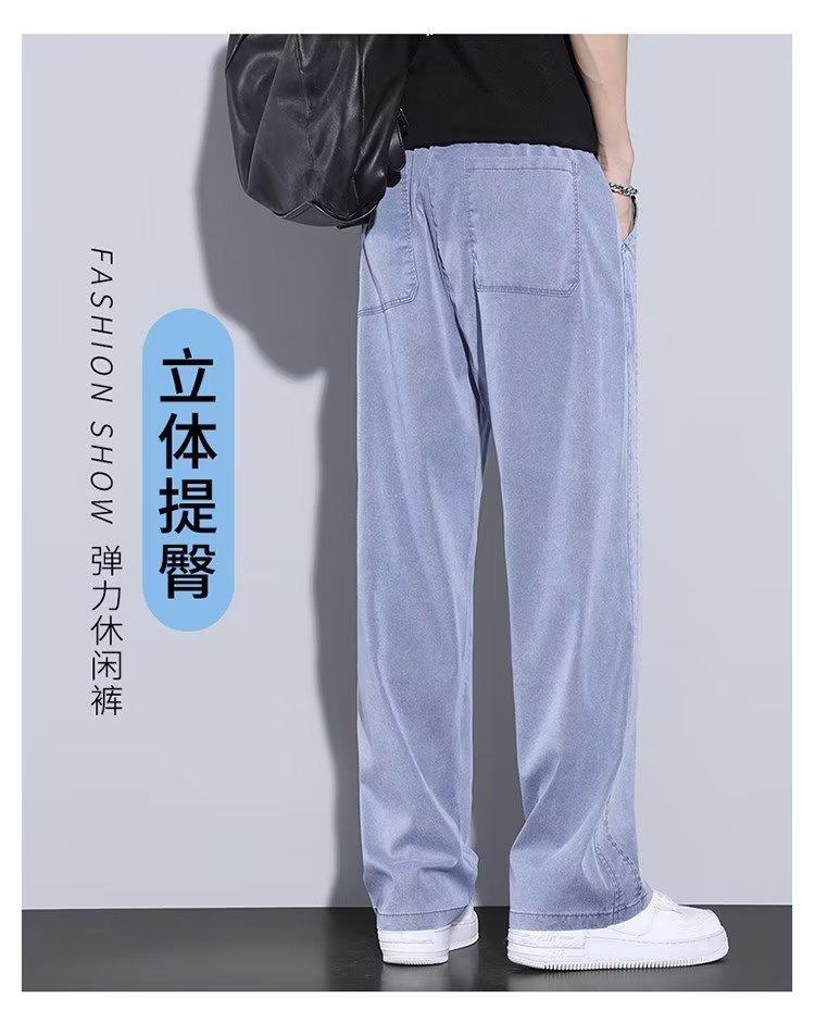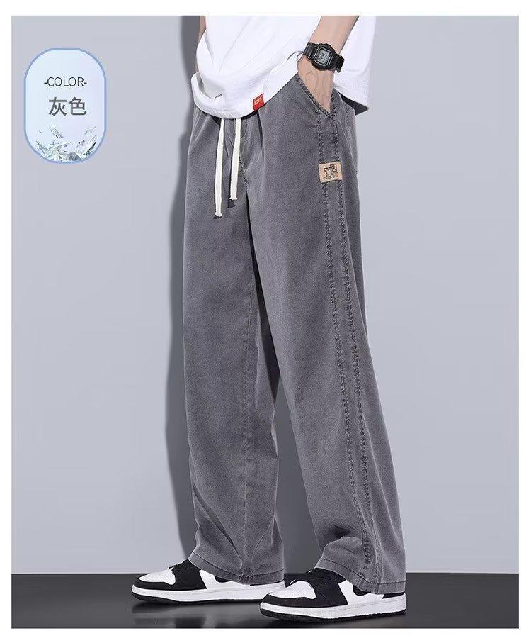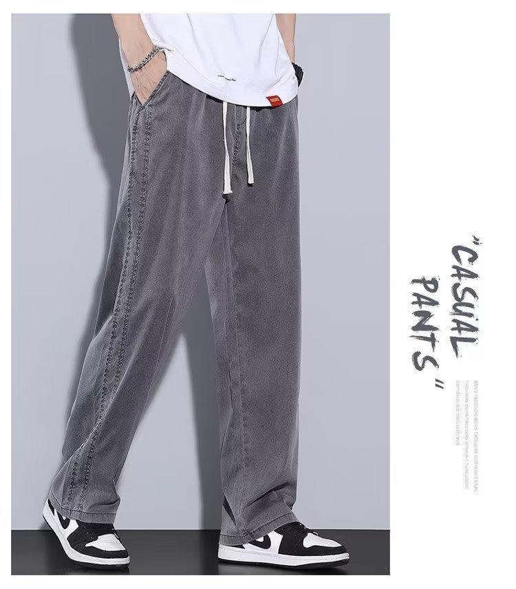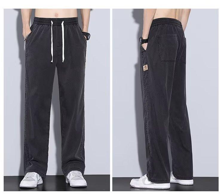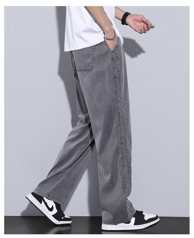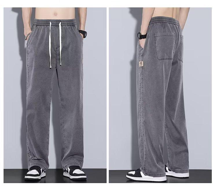 Calça jeans fina de verão Tencel masculina solta reta casual de perna larga calças masculinas de seda gelo calças da moda masculinas
