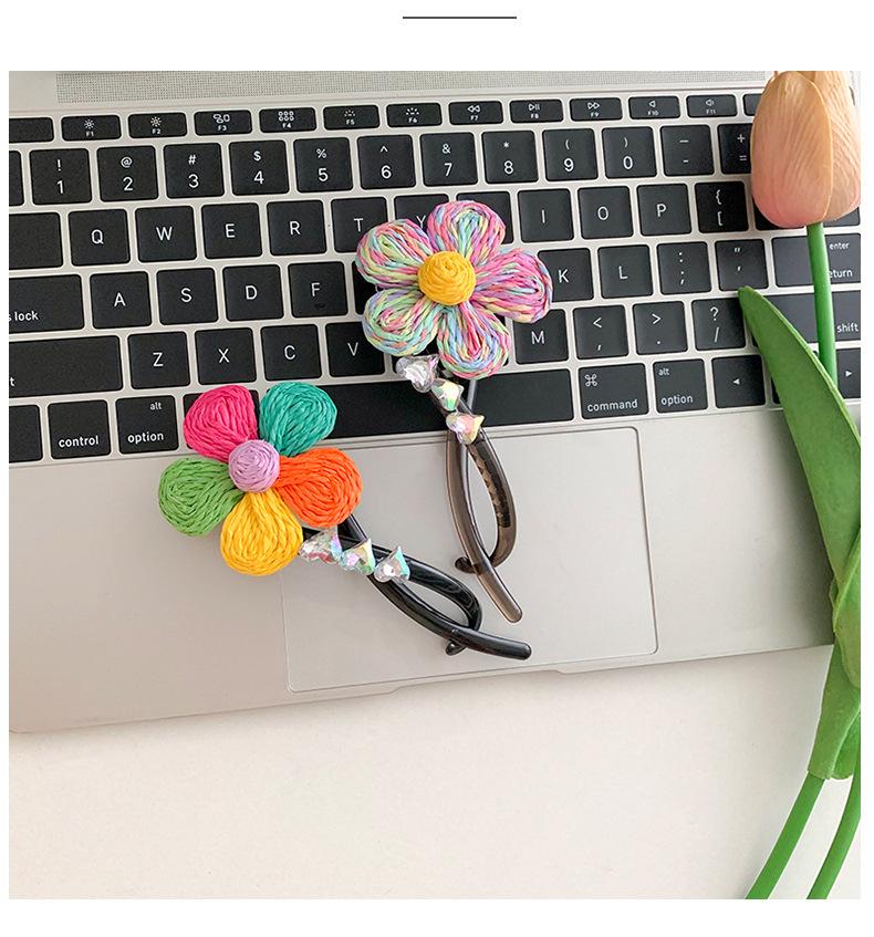 Clipe de flor arco-íris de verão feminino 2024 novo high-end sense twisted grampo de cabelo para trás cabeça tubarão clipe acessórios para cabelo
