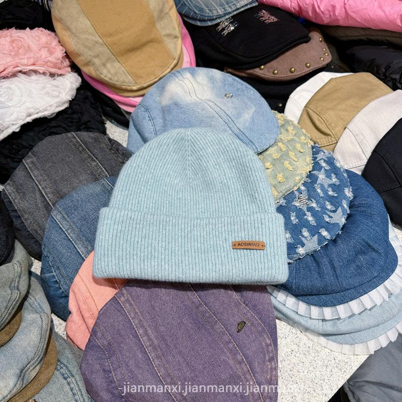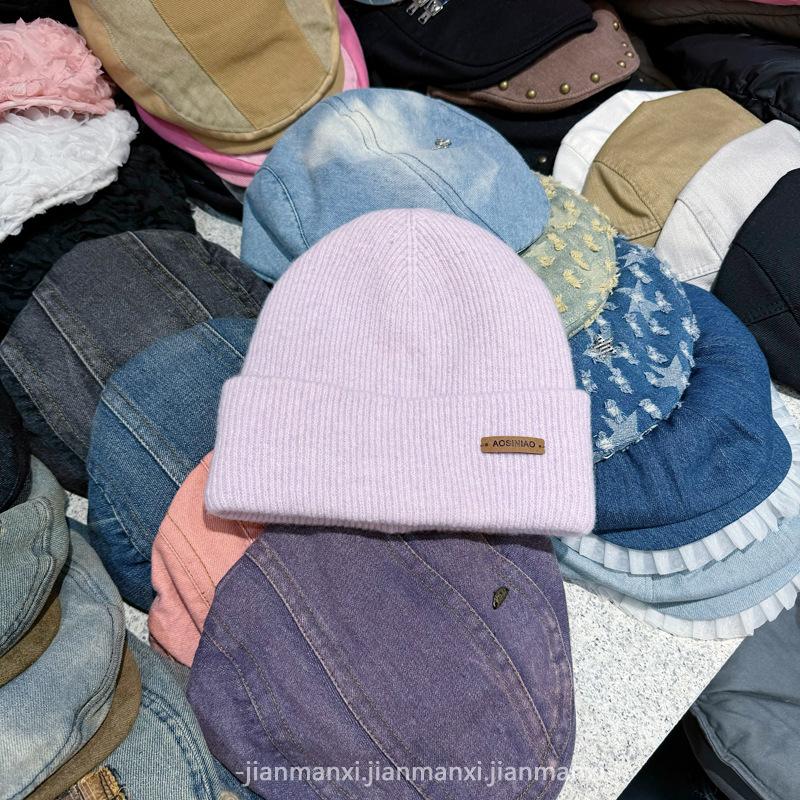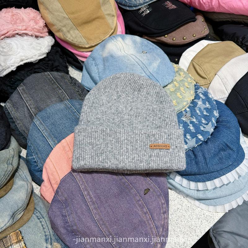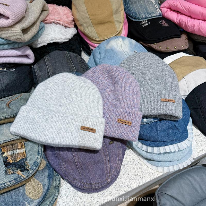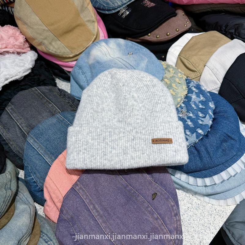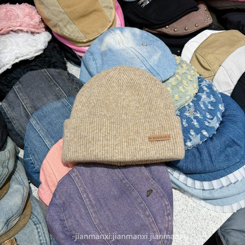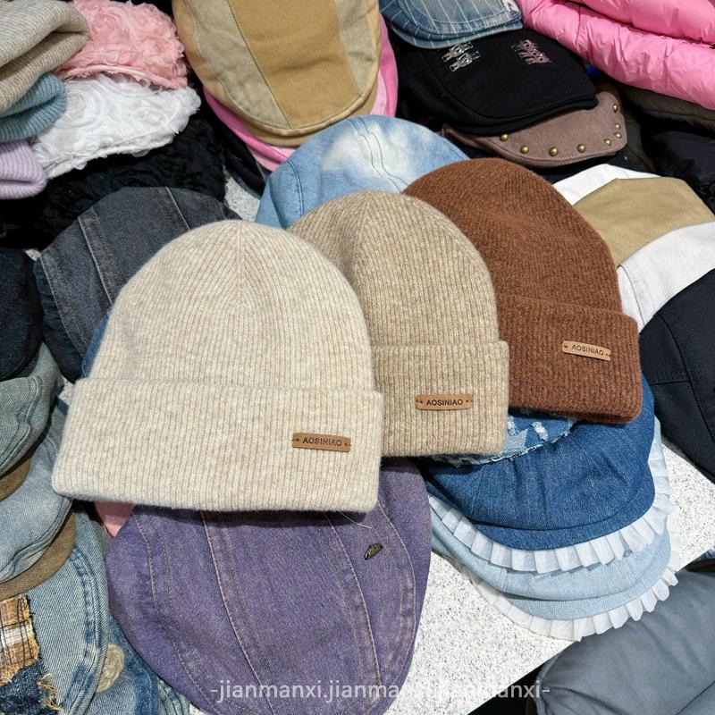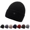 Chapéu de lã de malha de cor sólida multicolorida com etiqueta Chapéu de proteção auricular à prova de frio quente para homens