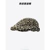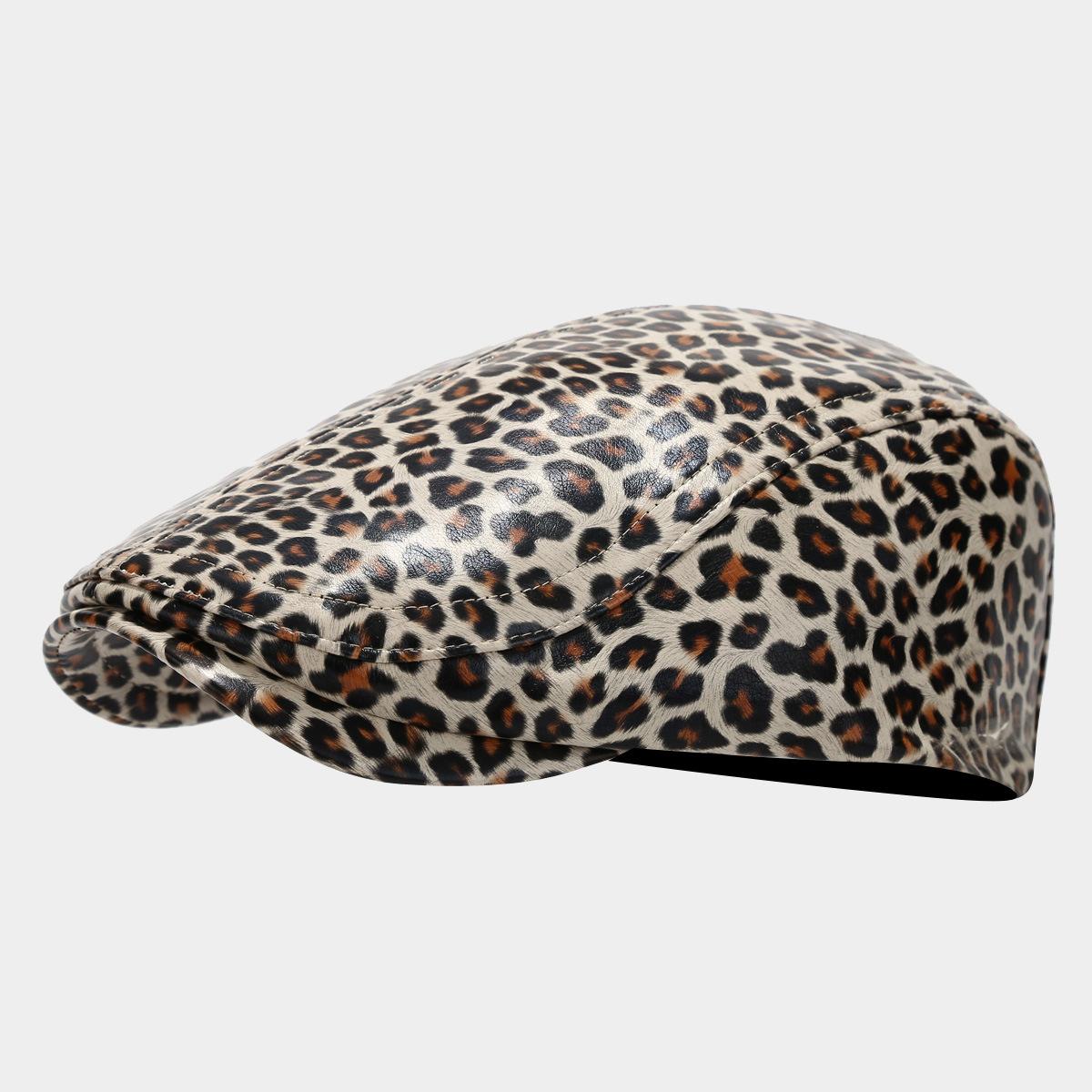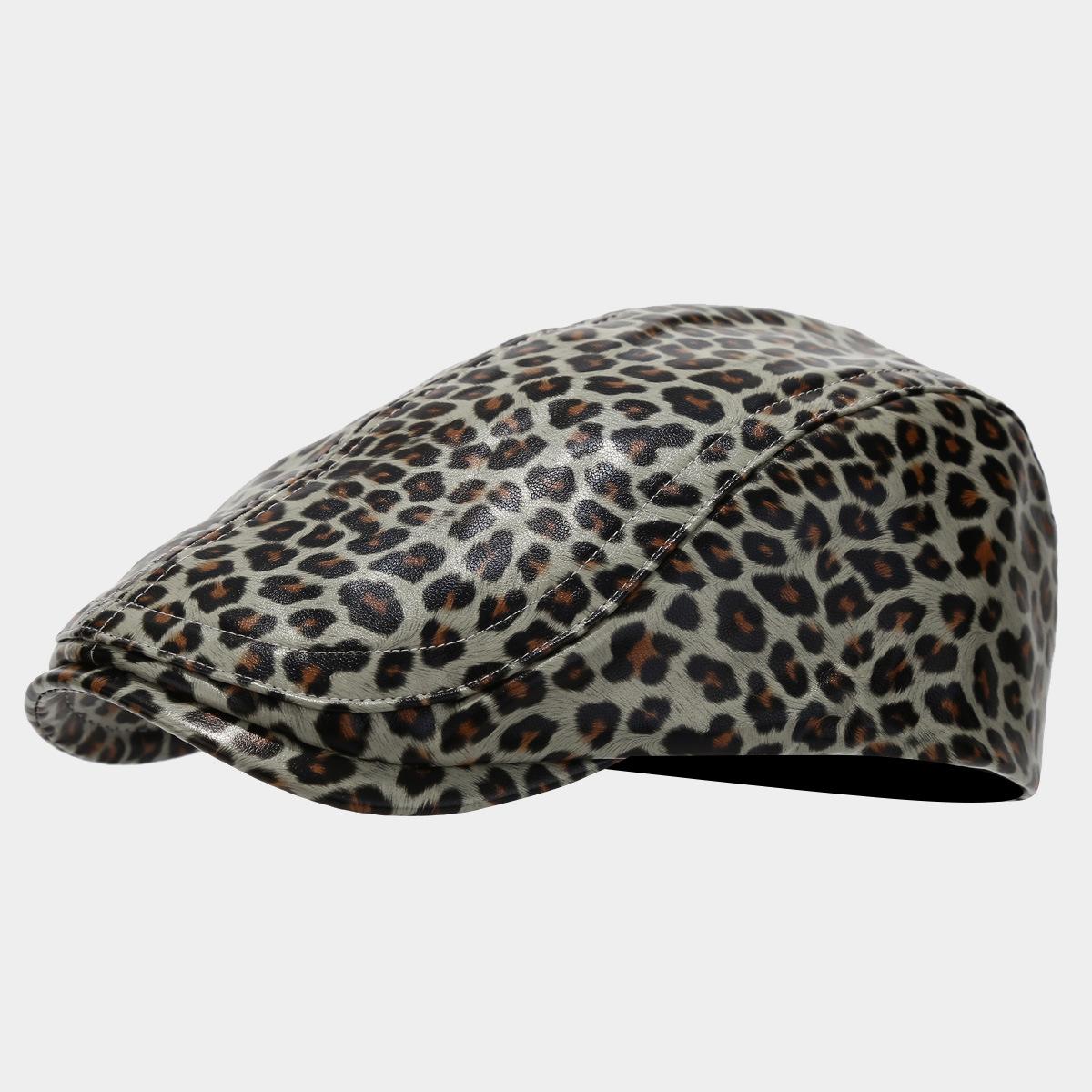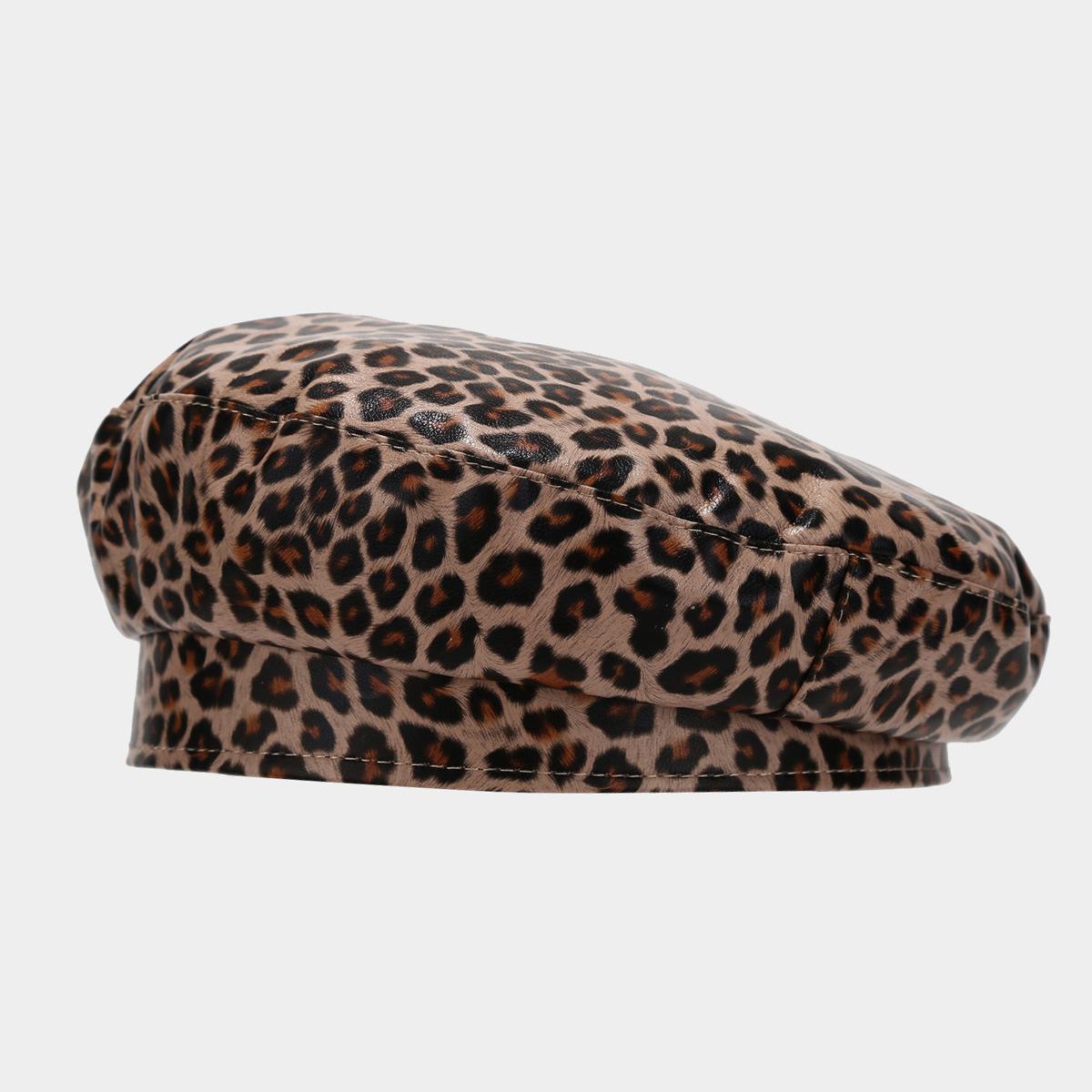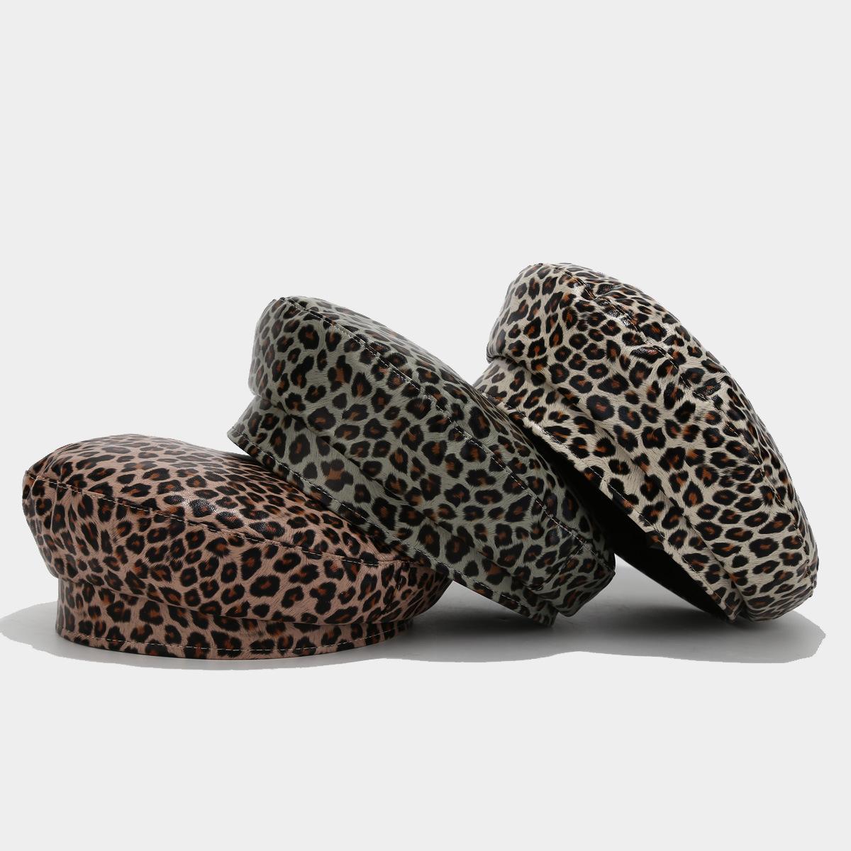 Boné progressivo de PU com estampa de leopardo da moda europeia e americana, personalidade feminina, moda retrô, boina, outono e inverno, chapéu de pintor de rua, maré