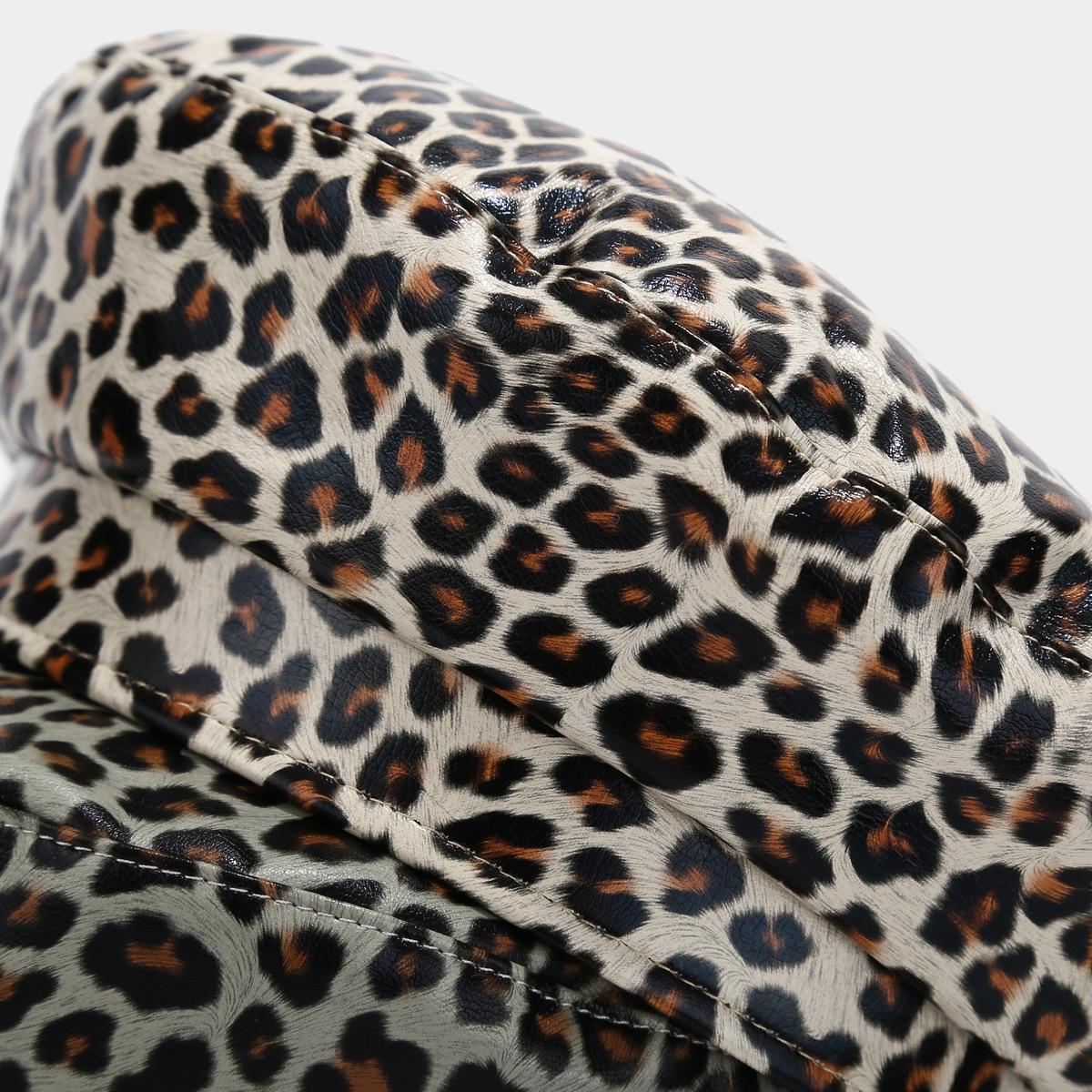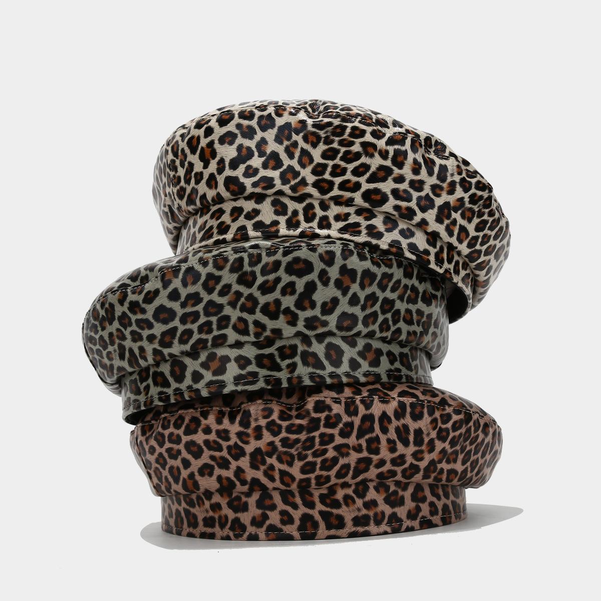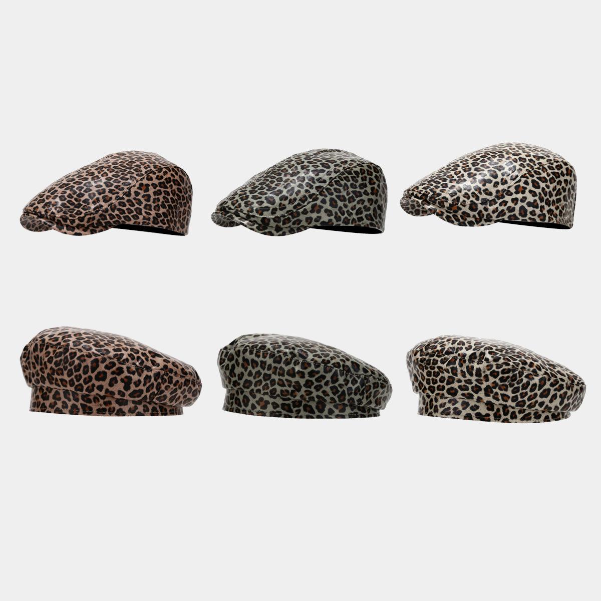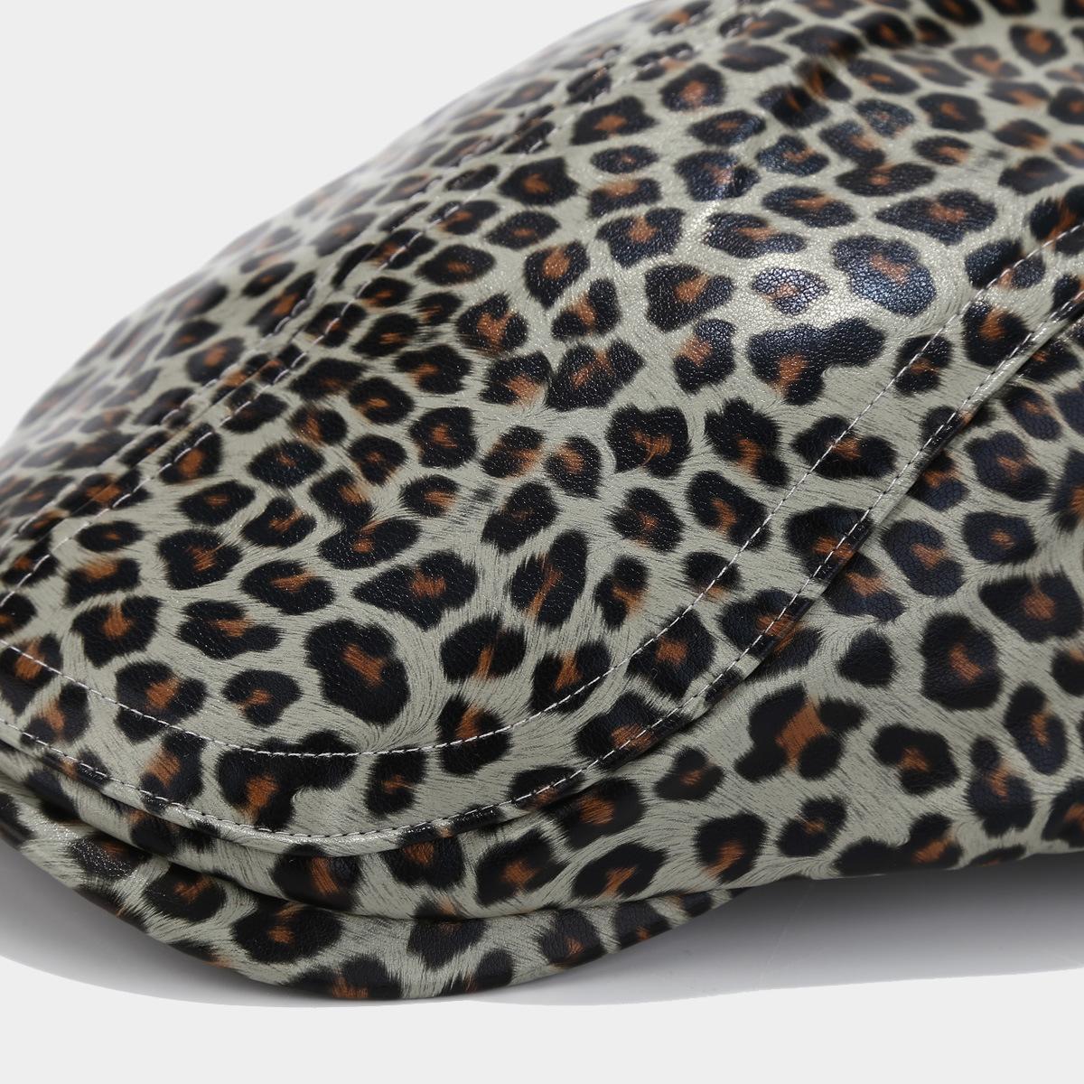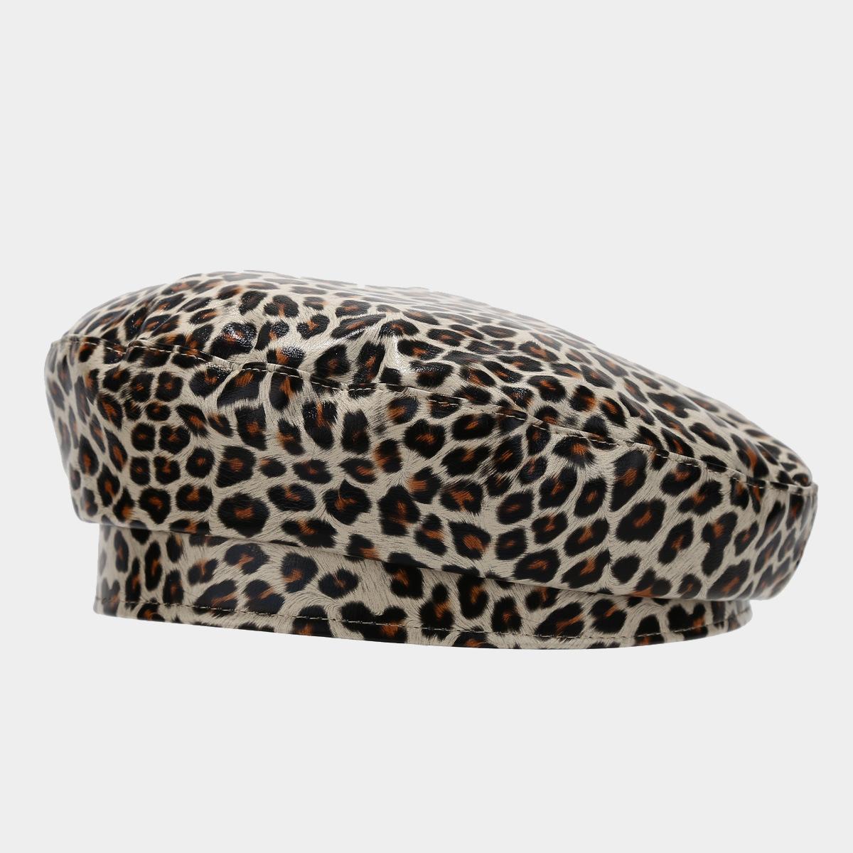 Boné progressivo de PU com estampa de leopardo da moda europeia e americana, personalidade feminina, moda retrô, boina, outono e inverno, chapéu de pintor de rua, maré
