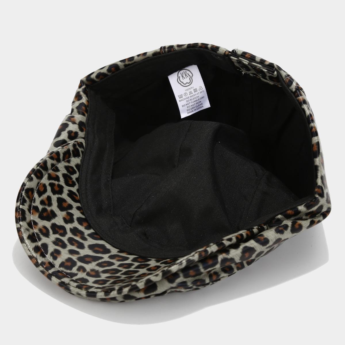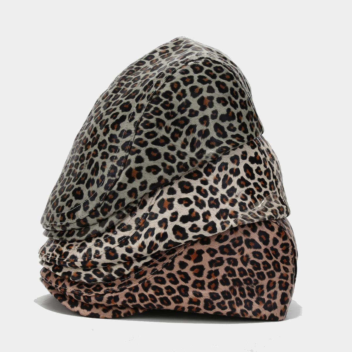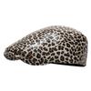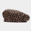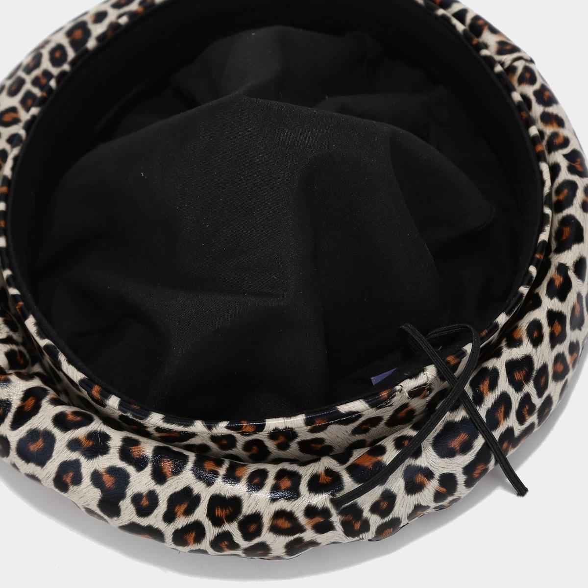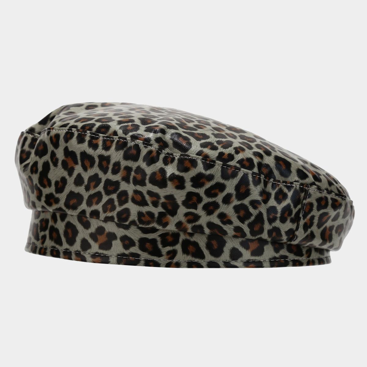 Boné progressivo de PU com estampa de leopardo da moda europeia e americana, personalidade feminina, moda retrô, boina, outono e inverno, chapéu de pintor de rua, maré