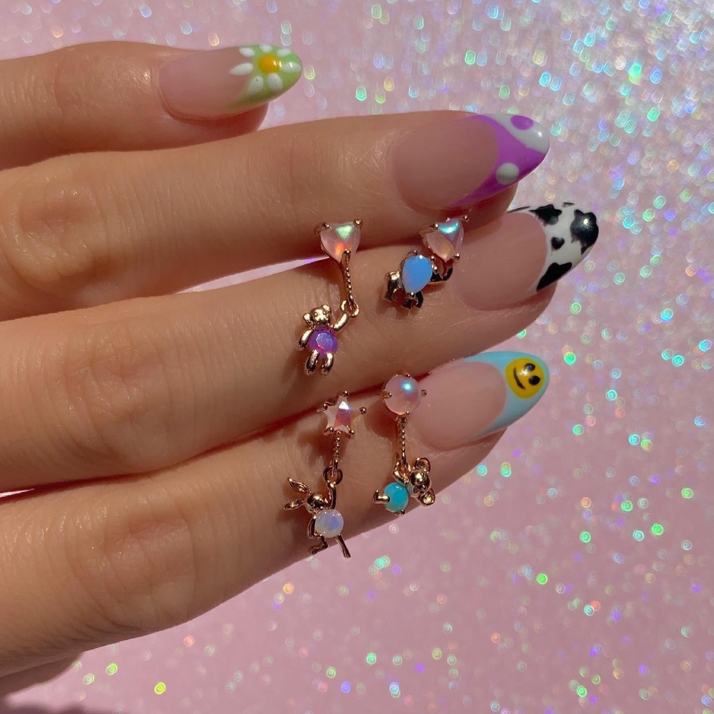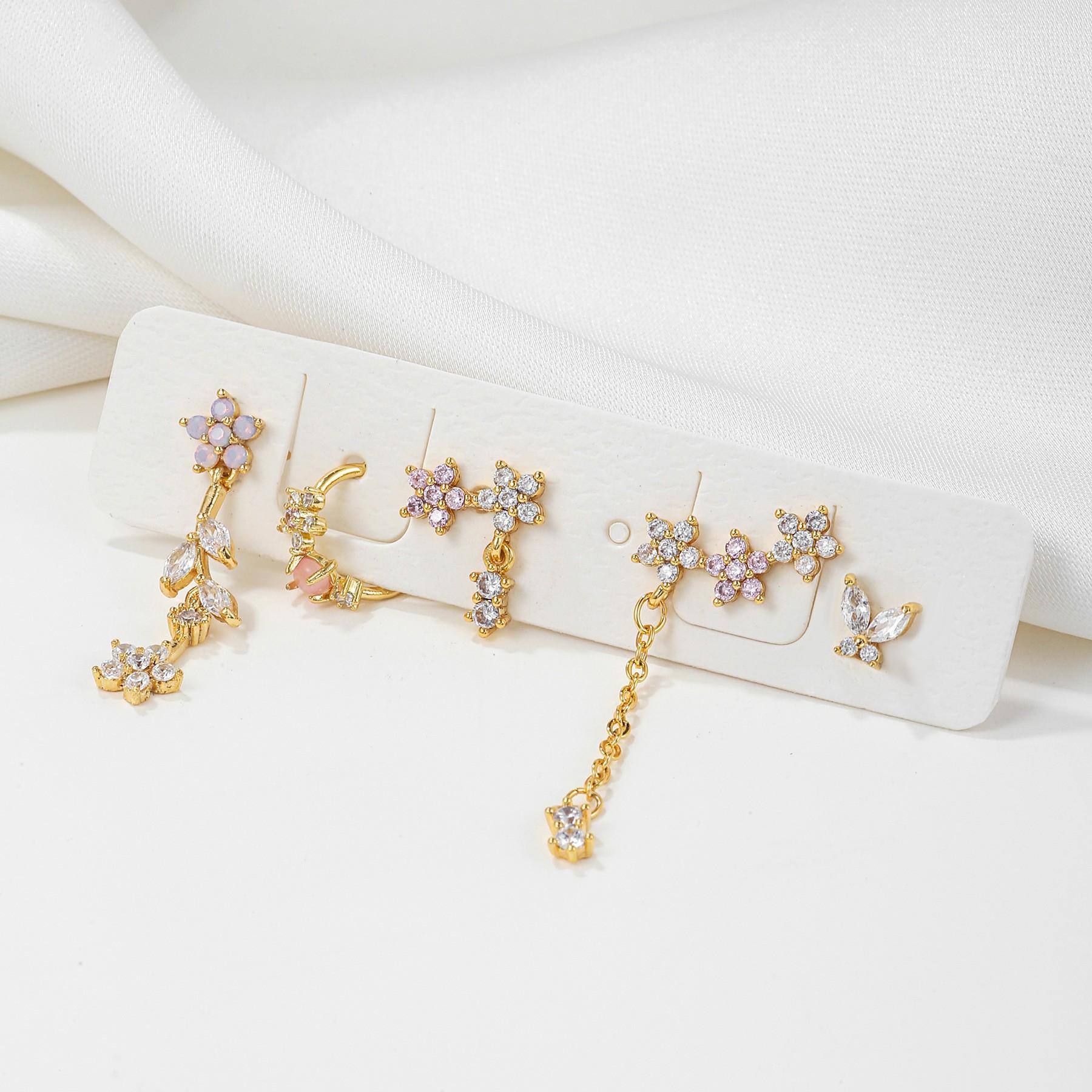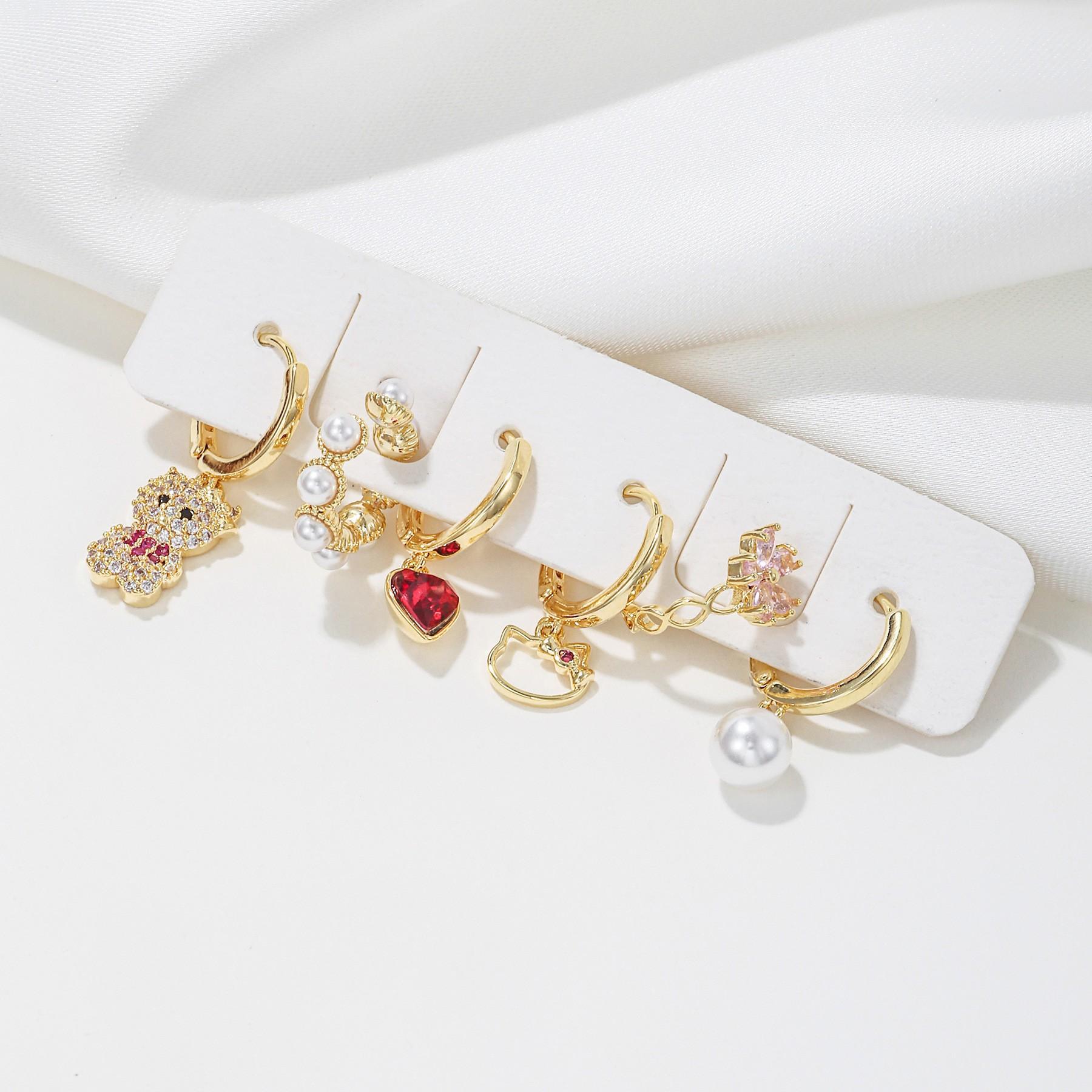 Compre Europa e Estados Unidos personalidade transfronteiriça borboleta urso borla brincos de corrente brincos cor zircão amor brincos brincos terno no atacado no Joom.pro