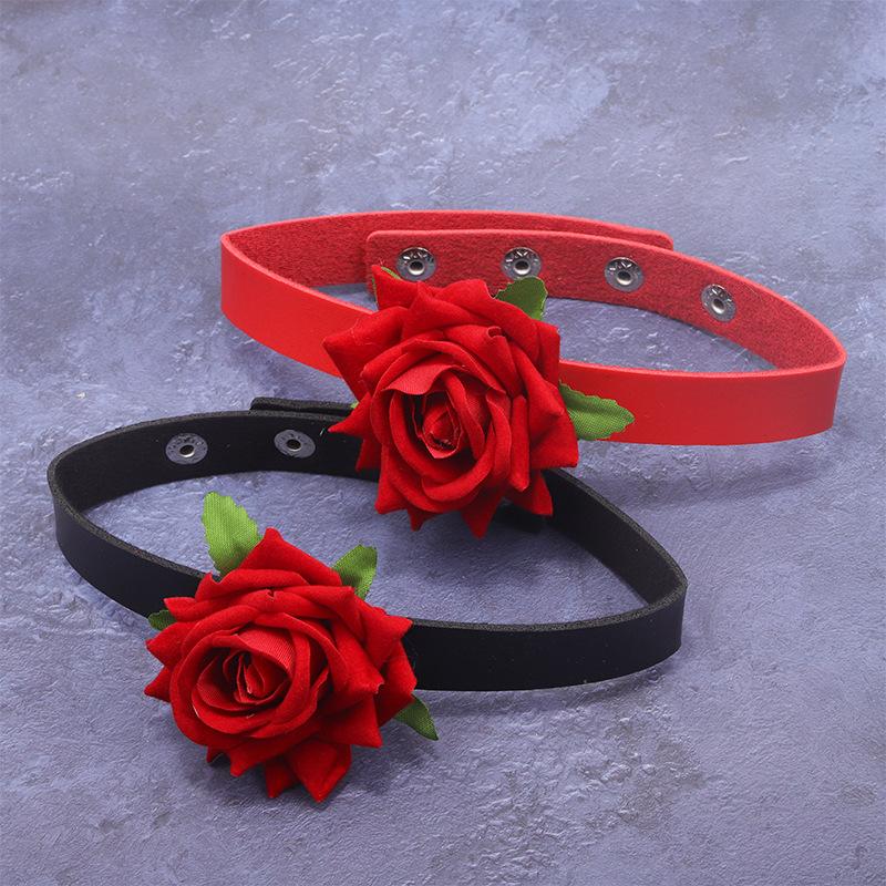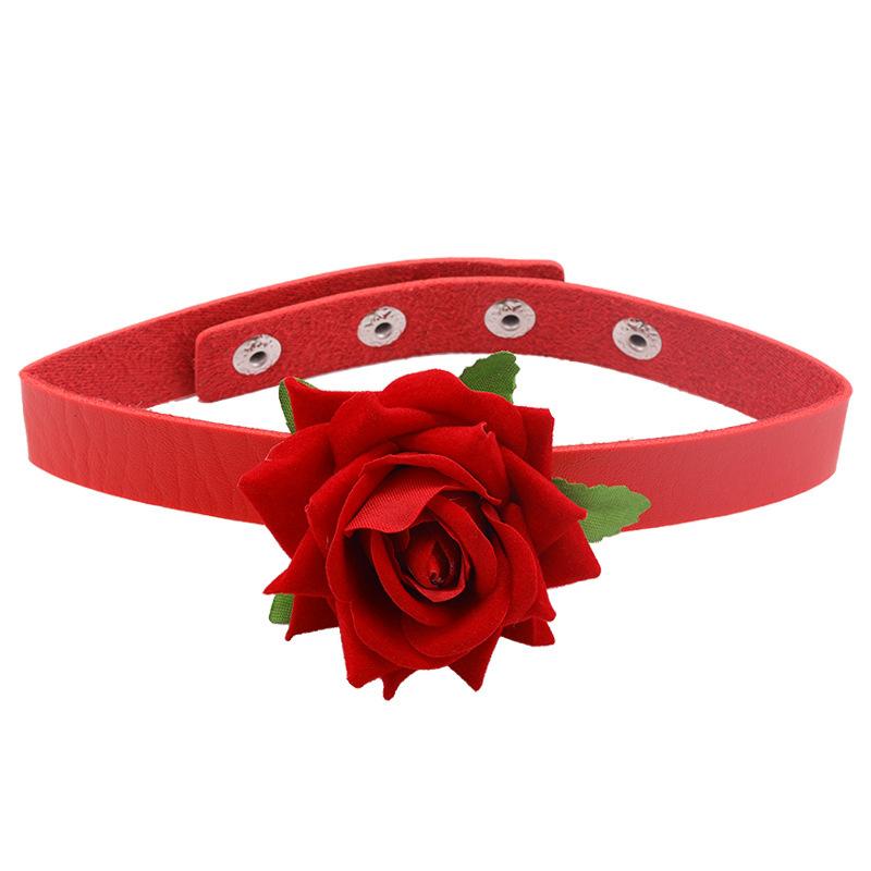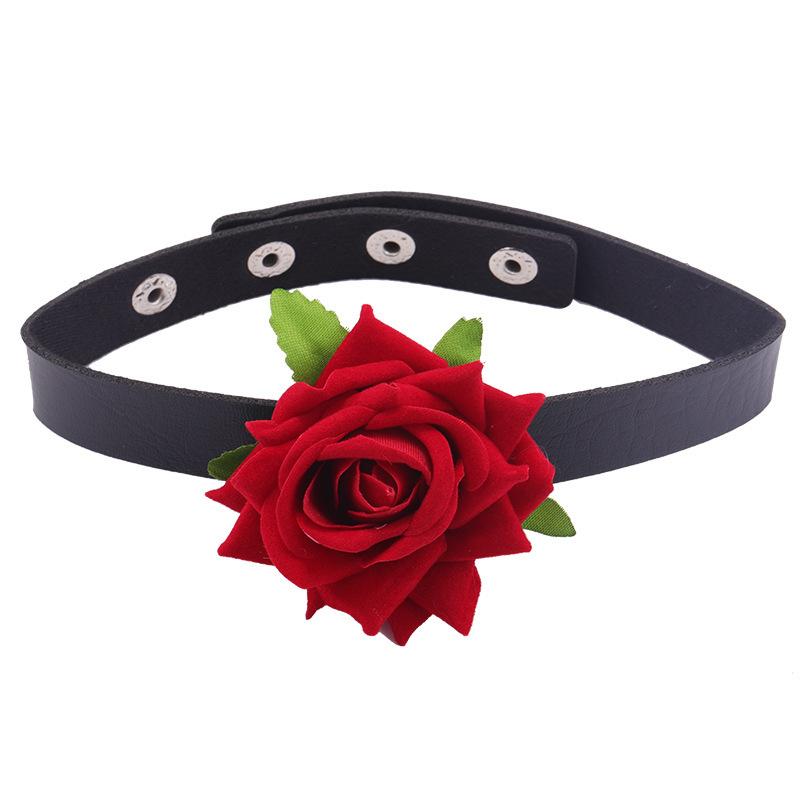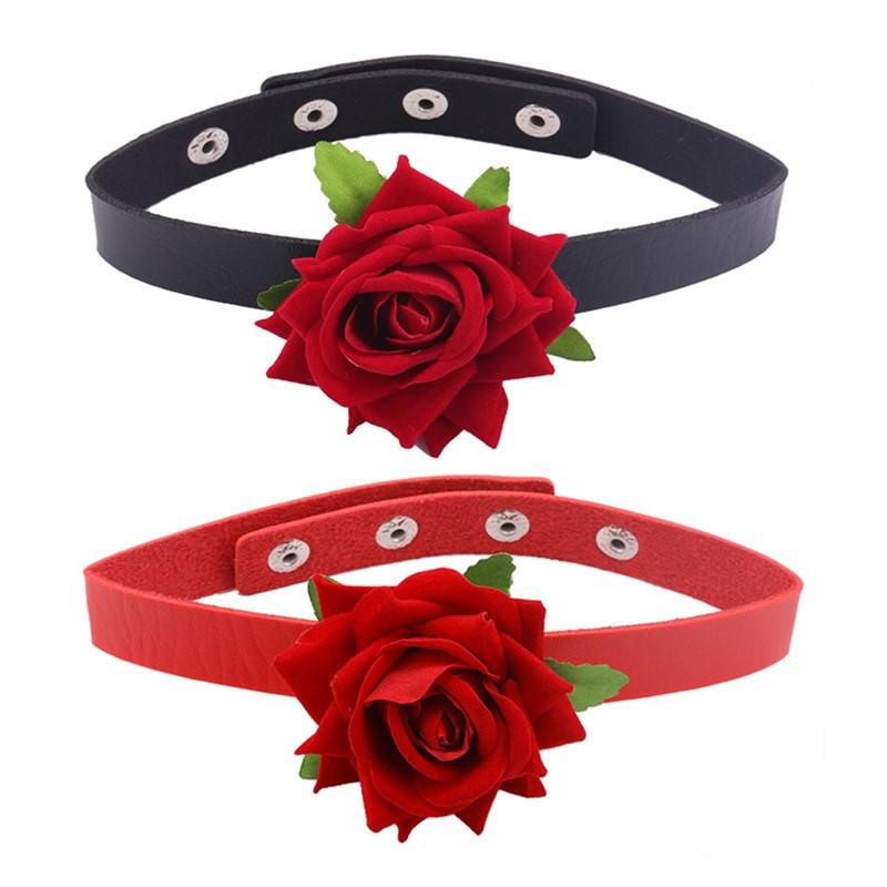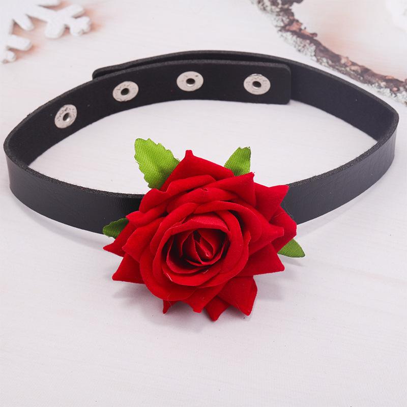 Compre Gótico Estilo Escuro Rosa Flor Gargantilha Colar Lolita Flor Sólida PU Couro Pescoço Cadeia no atacado no Joom.pro