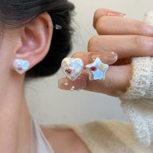 Brincos de amor de temperamento de luxo leve francês para mulheres, brincos de moda de personalidade de design versátil de nicho de alta qualidade, atacado