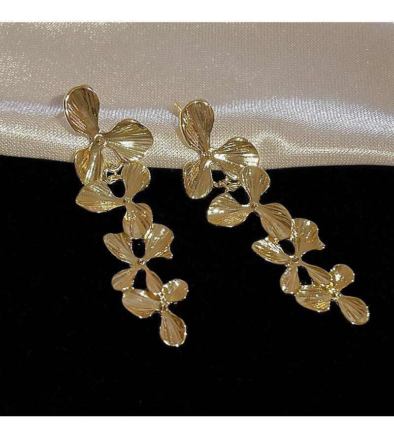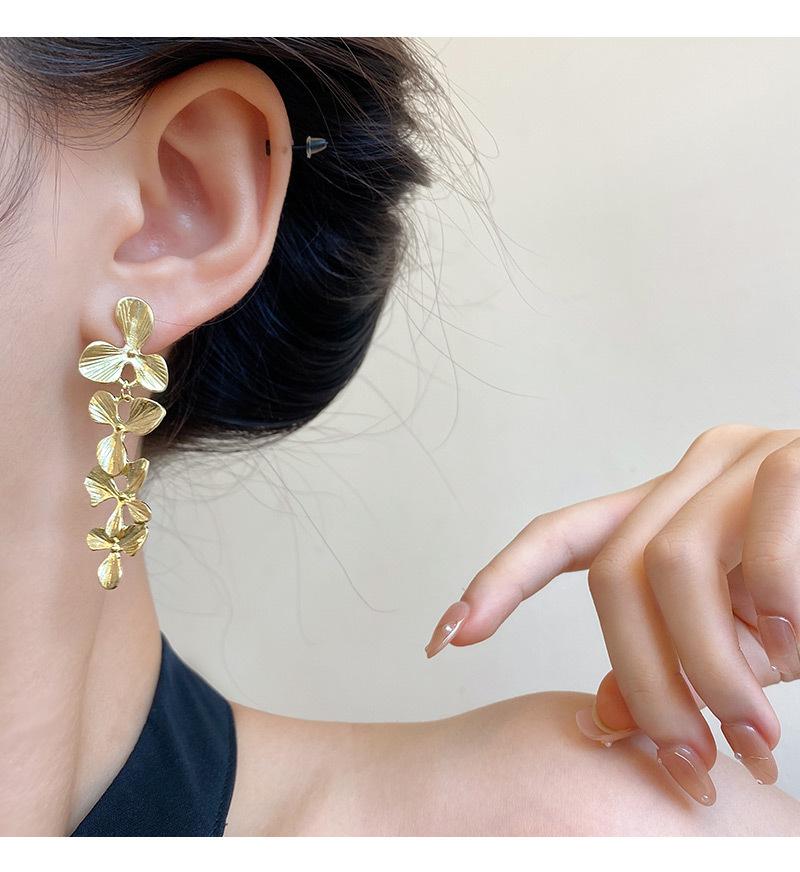 Brincos de flores de metal românticos franceses para mulheres, brincos exagerados de temperamento da moda, brincos simples de alta qualidade, brincos exclusivos