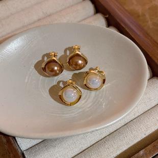 2024 novo branco geométrico quadrado pérola orelha clipe simples e generoso versátil moda temperamento brincos atacado