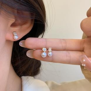 Brincos de coração de zircão de nicho simples estilo coreano para mulheres, todos os tipos de brincos de pérola mini de luxo leve e de alta qualidade