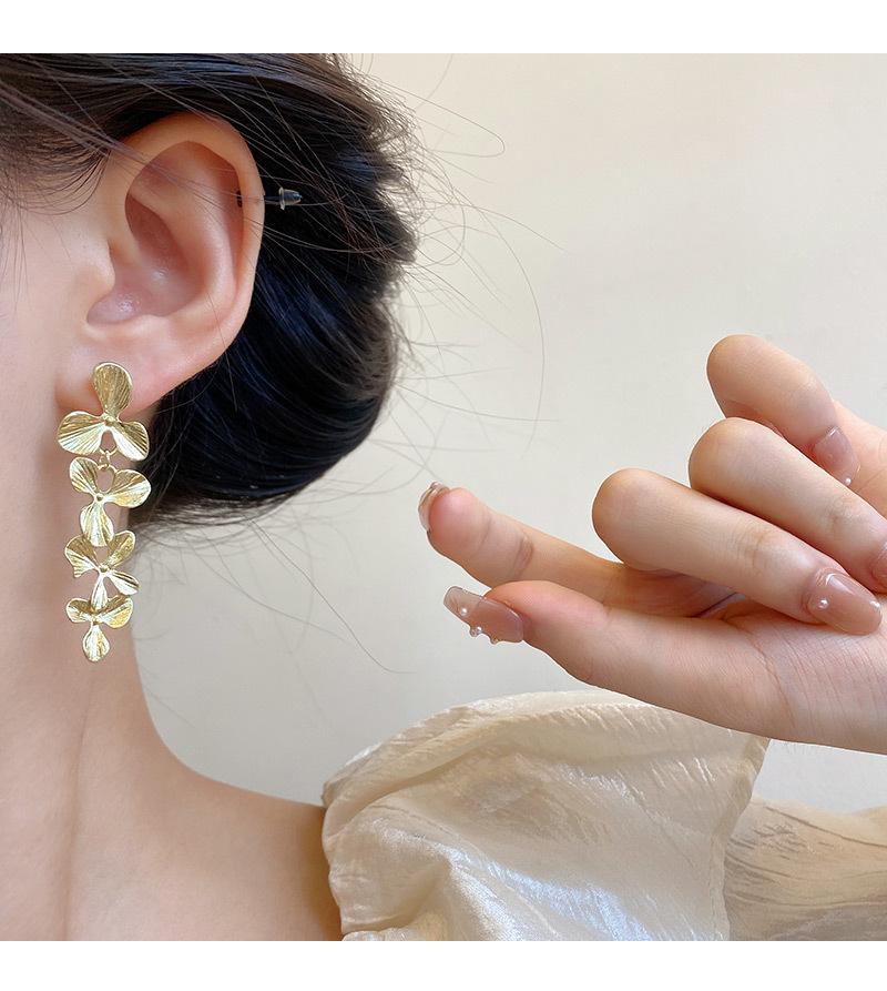 Compre Brincos de flor de metal românticos franceses Brincos femininos elegantes e exagerados Brincos simples de alta qualidade Brincos exclusivos no atacado no Joom.pro