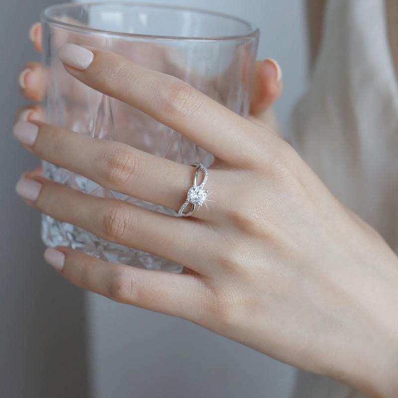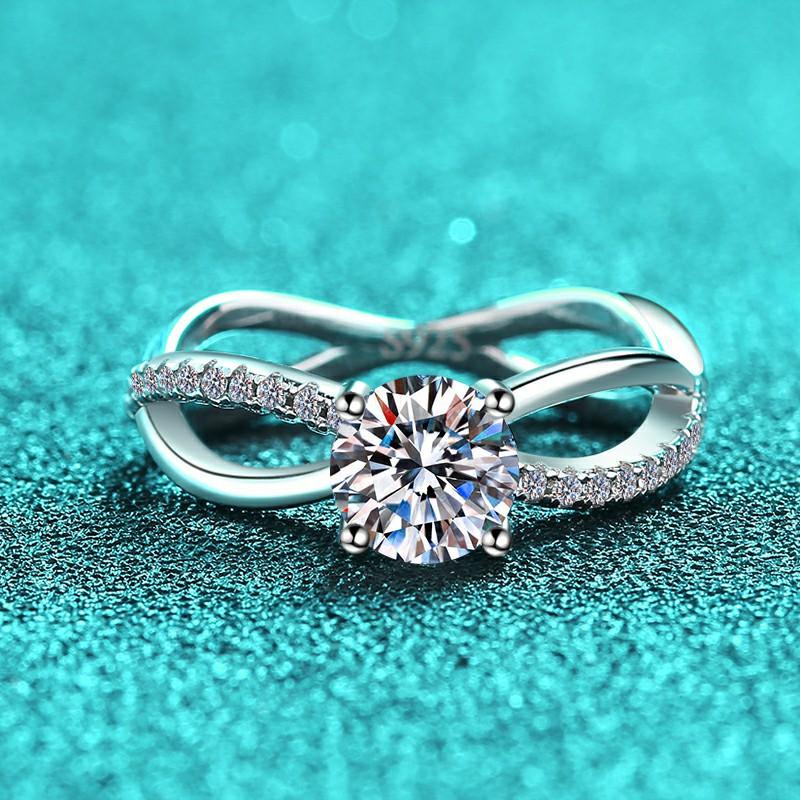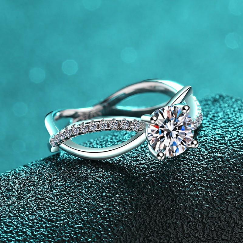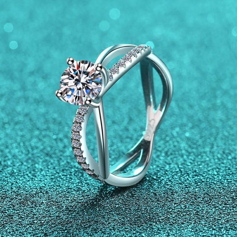 Compre Anel de moissanita redondo banhado a diamante PT950, anel leve de luxo de alta qualidade em prata esterlina 925, anel feminino com suporte de ar em estoque no atacado no Joom.pro