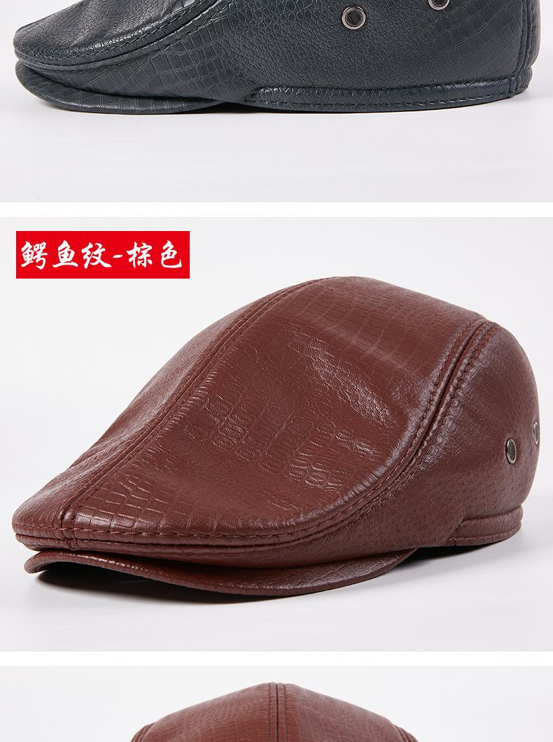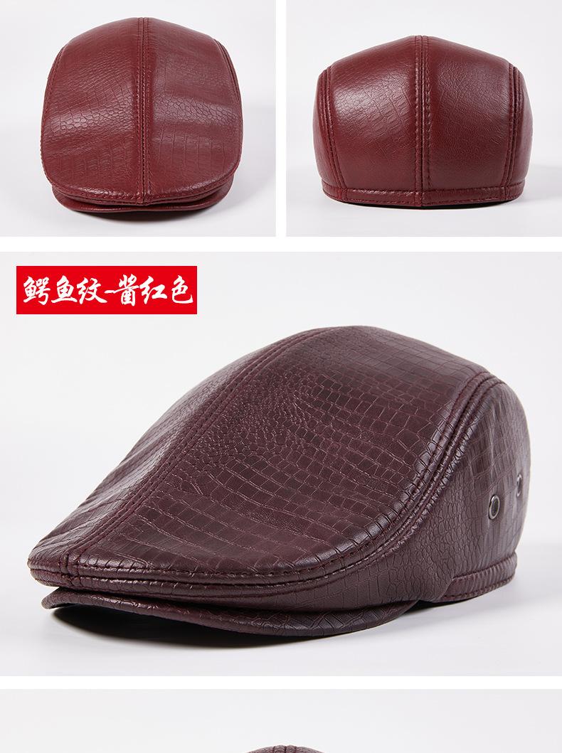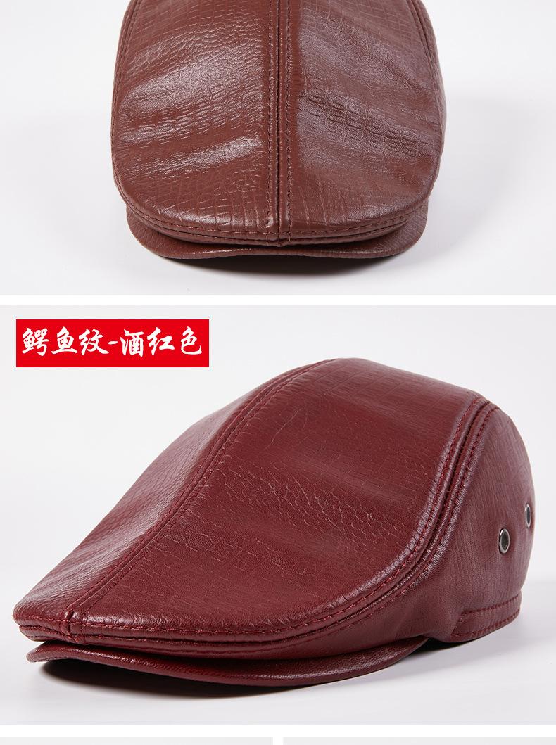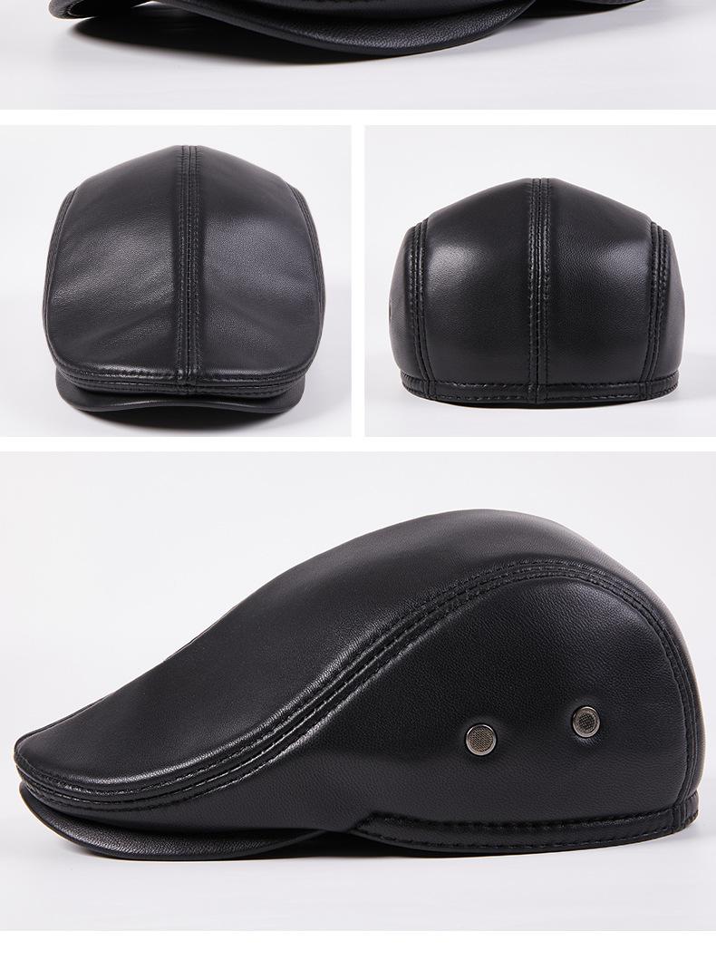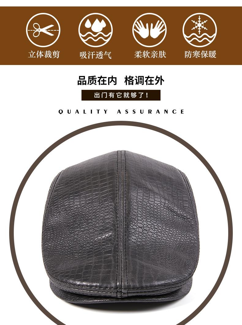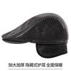 Chapéu de Couro Genuíno Estilo Coreano para Homens de Meia-Idade e Idosos, Boina de Couro de Vaca, Boné com Aba Retrô Progressivo para Outono e Inverno, Algodão Quente e Moderno