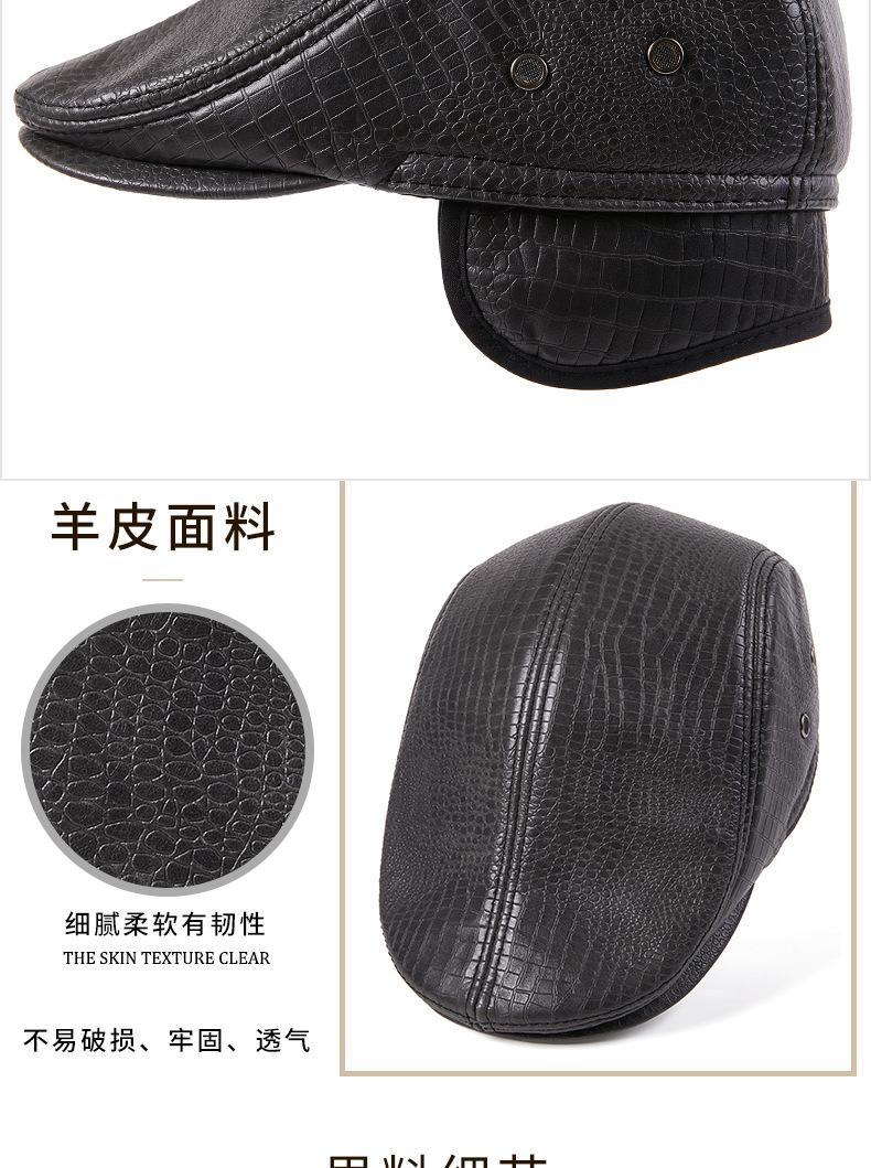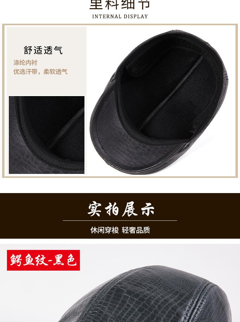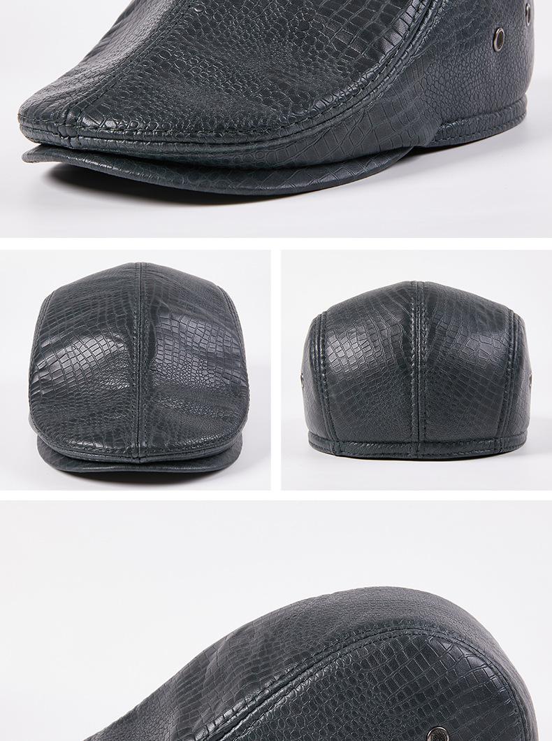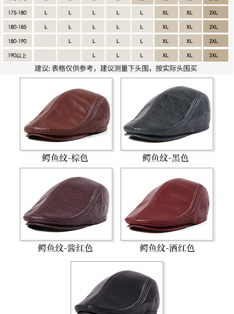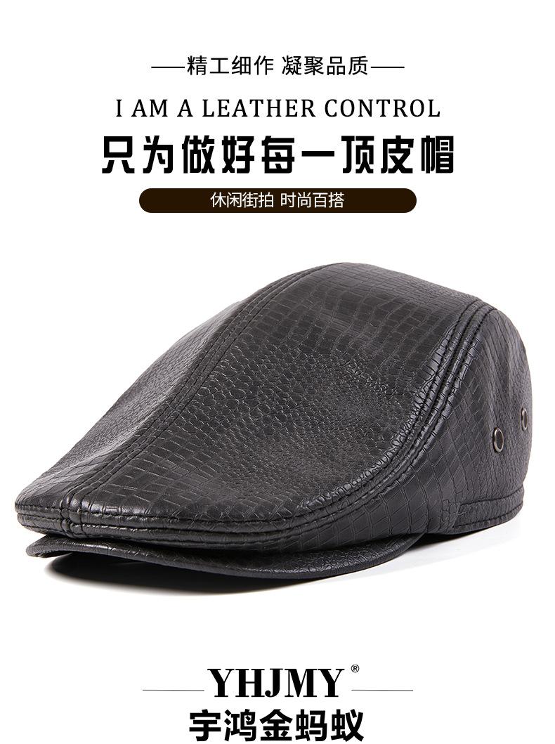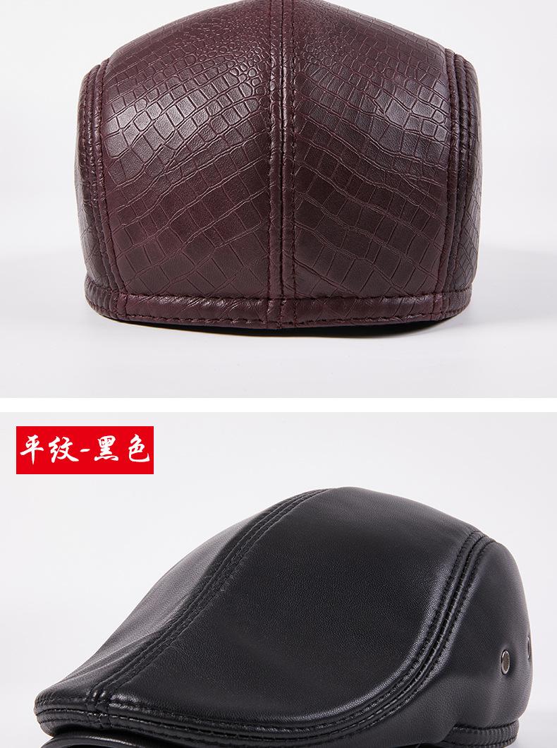 Chapéu de Couro Genuíno Estilo Coreano para Homens de Meia-Idade e Idosos, Boina de Couro de Vaca, Boné com Aba Retrô Progressivo para Outono e Inverno, Algodão Quente e Moderno