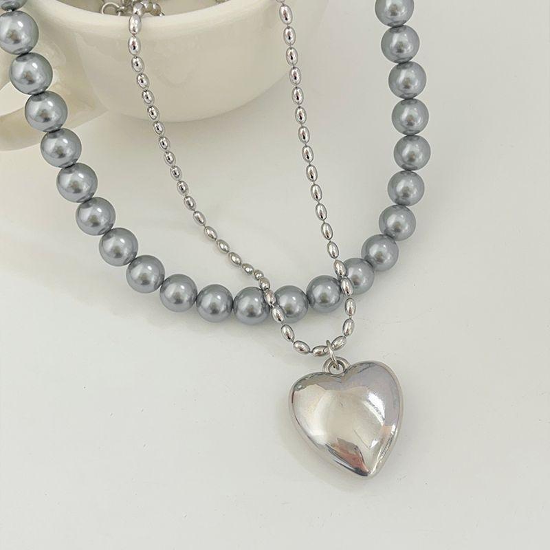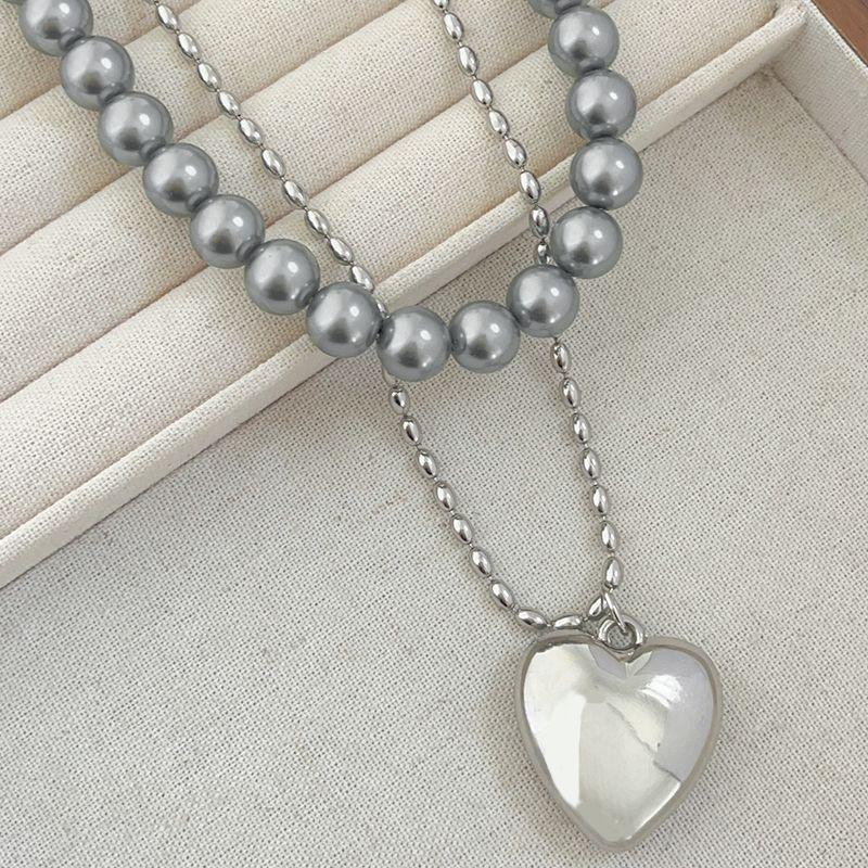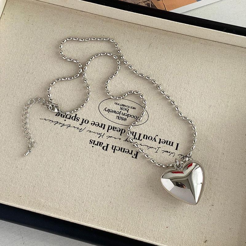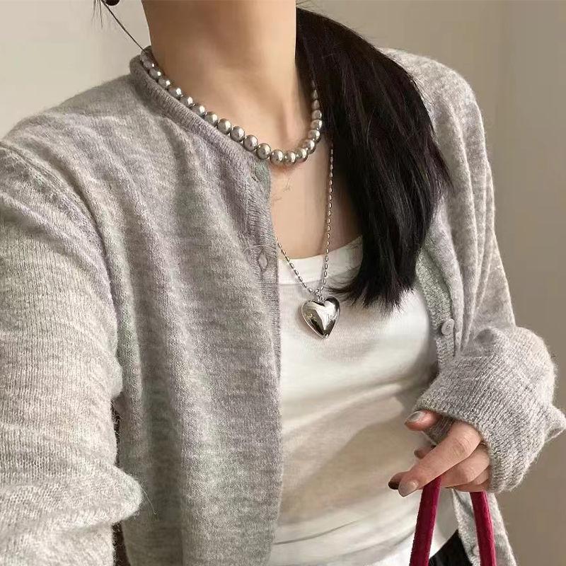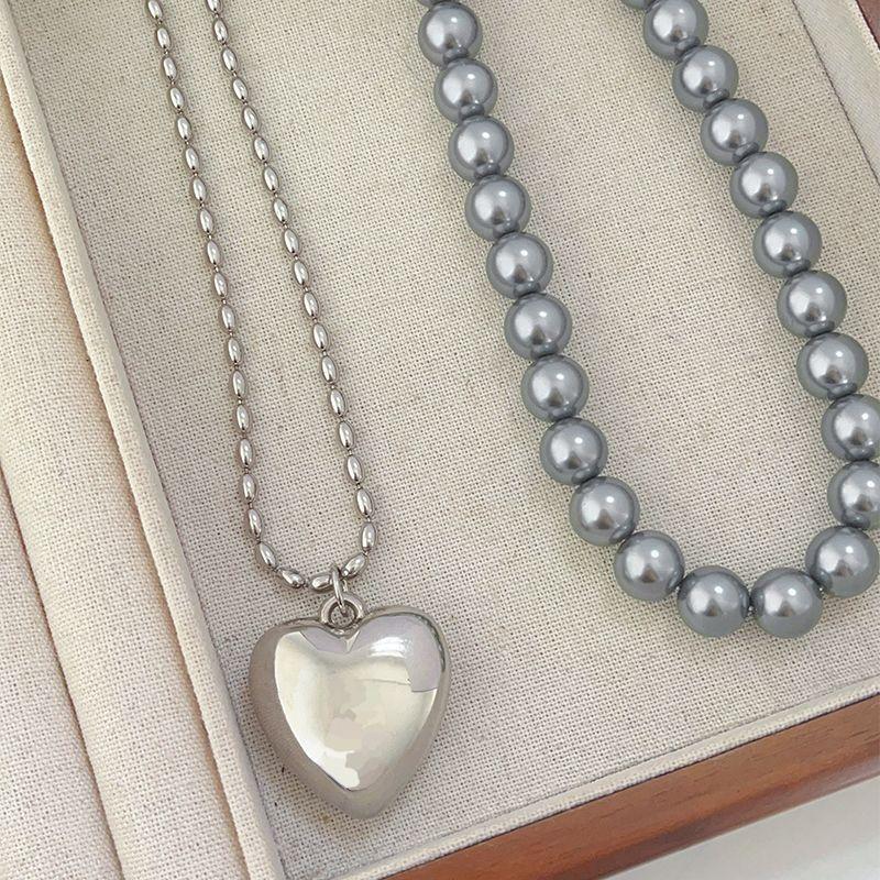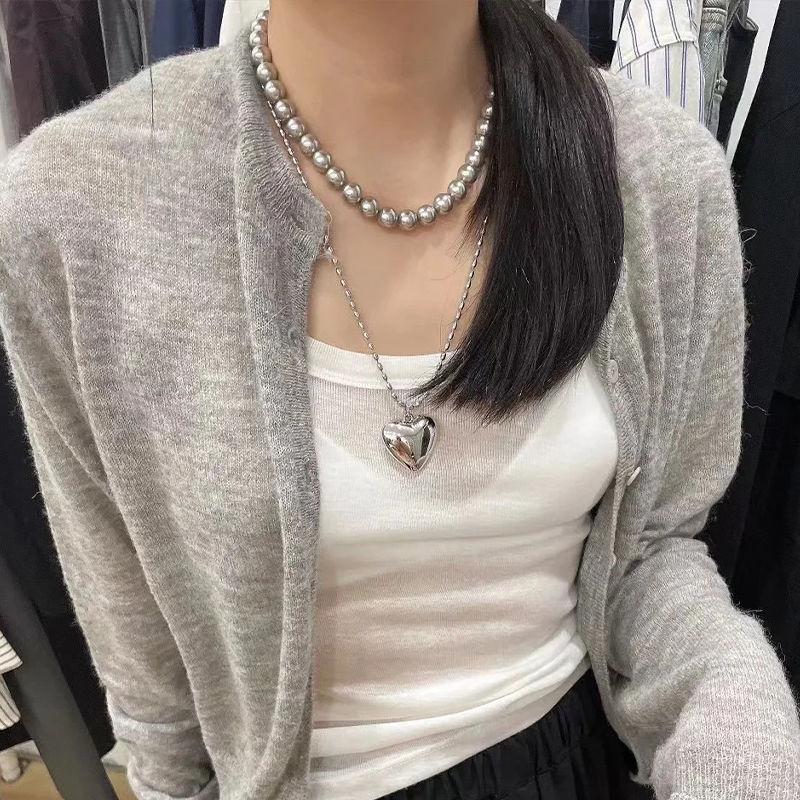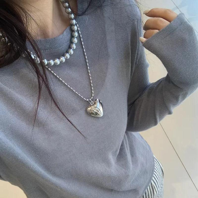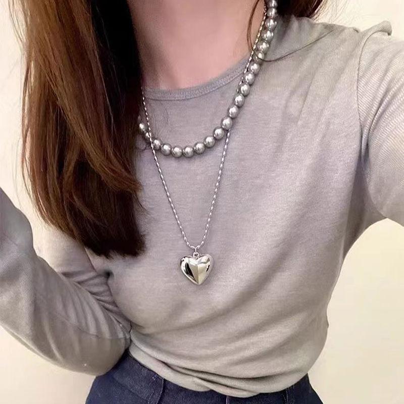 2024 Ins Coreano Simples Grande Pêssego Coração Empilhado Clavícula Cadeia Metal Amor Colar Feminino Prata Versão Longa
