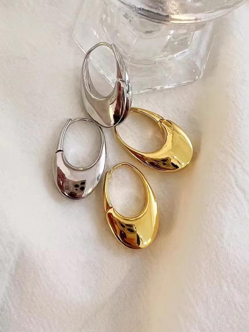 Bolsa oval metálica geométrica brincos de fivela de orelha simples nicho elegante moda viajante brincos de alta qualidade para mulheres