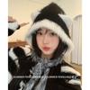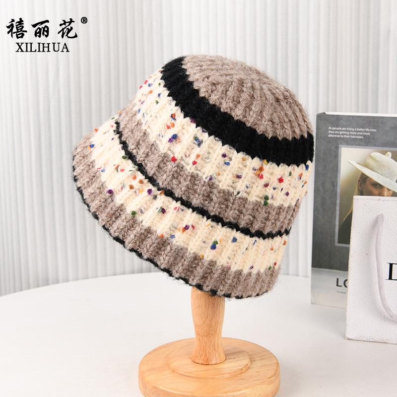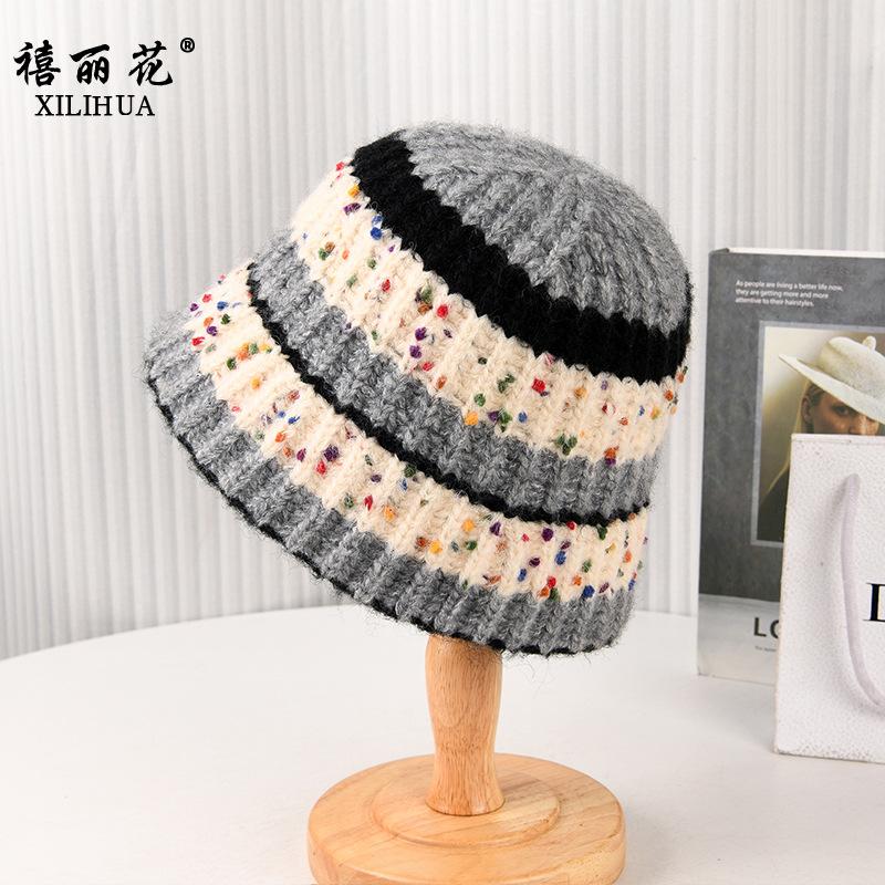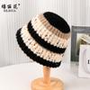 Chapéu de pescador de moda de malha listrada japonesa feminina inverno à prova de frio cor quente feijão doce para todos os jogos proteção auricular Chapéu