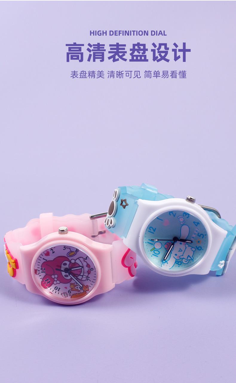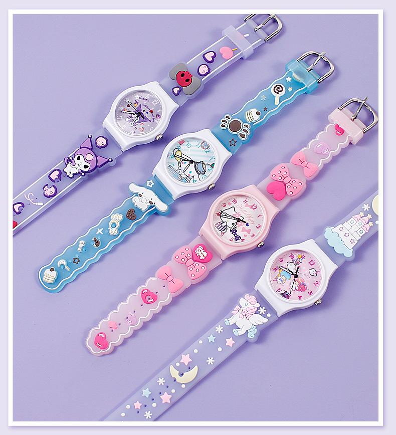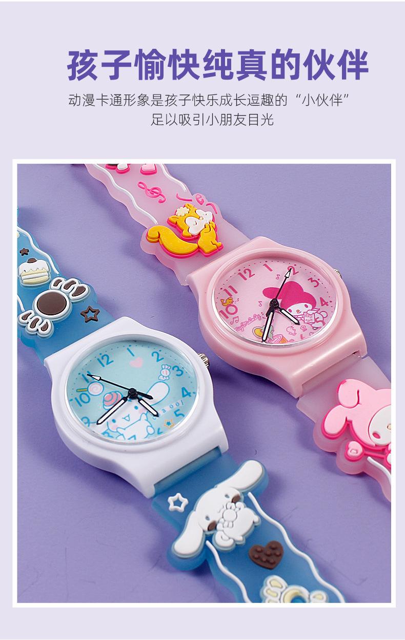 Relógio Sanrio dos desenhos animados Relógio infantil de silicone 3D Strap Cute Kulomi Gui Dog Girl Relógio de quartzo