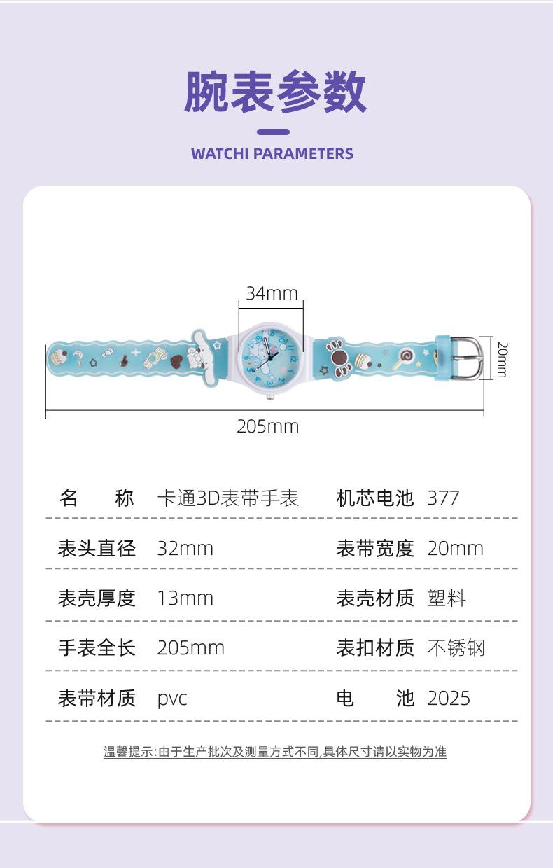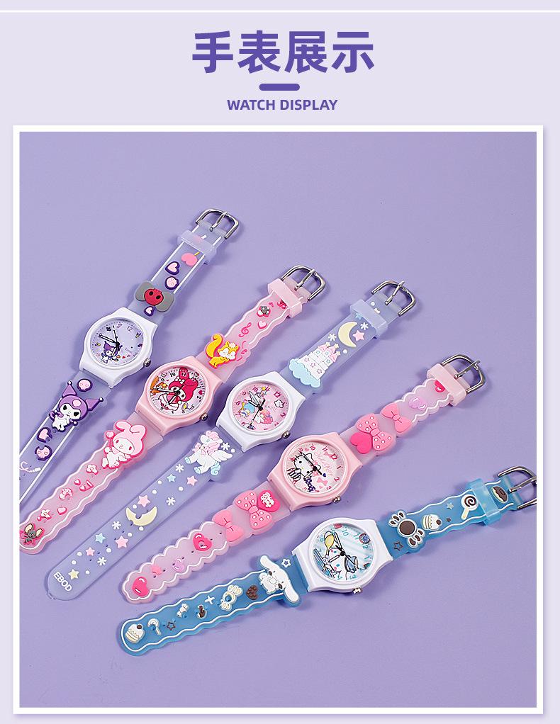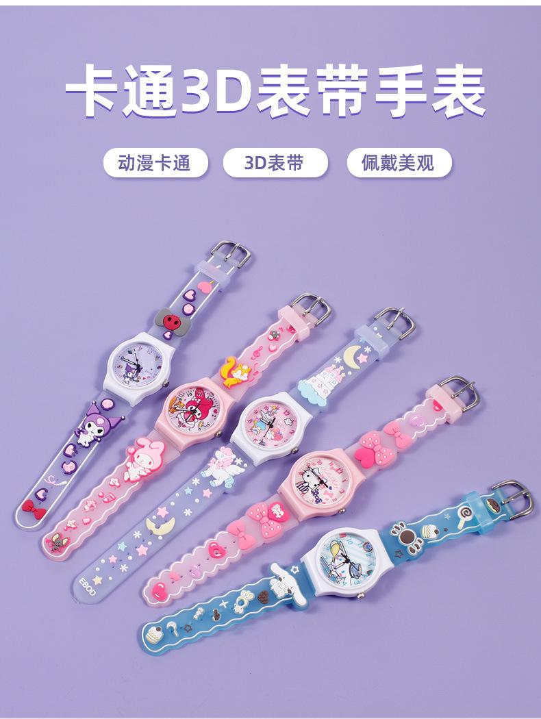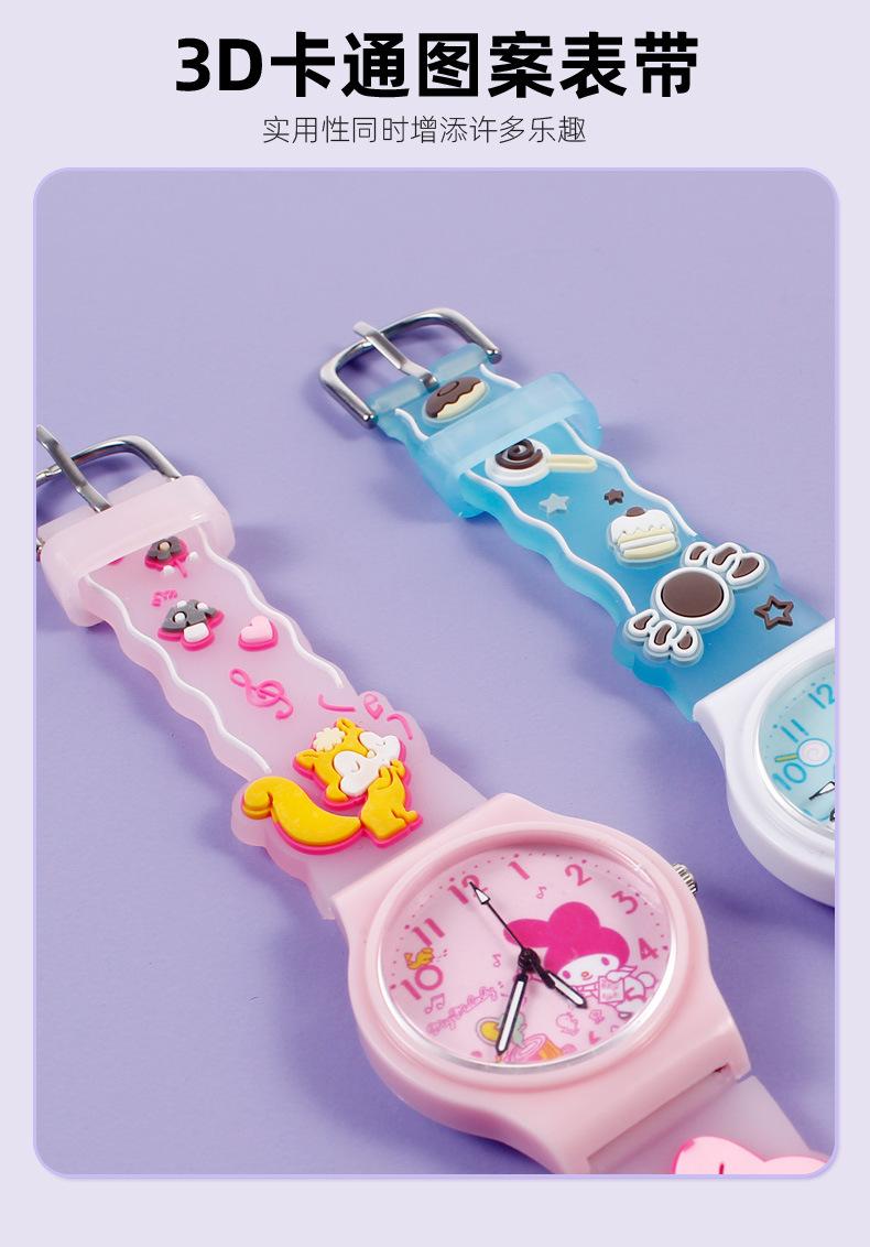 Relógio Sanrio dos desenhos animados Relógio infantil de silicone 3D Strap Cute Kulomi Gui Dog Girl Relógio de quartzo
