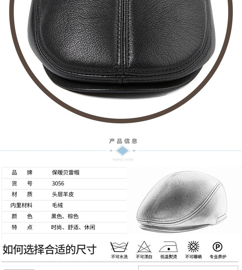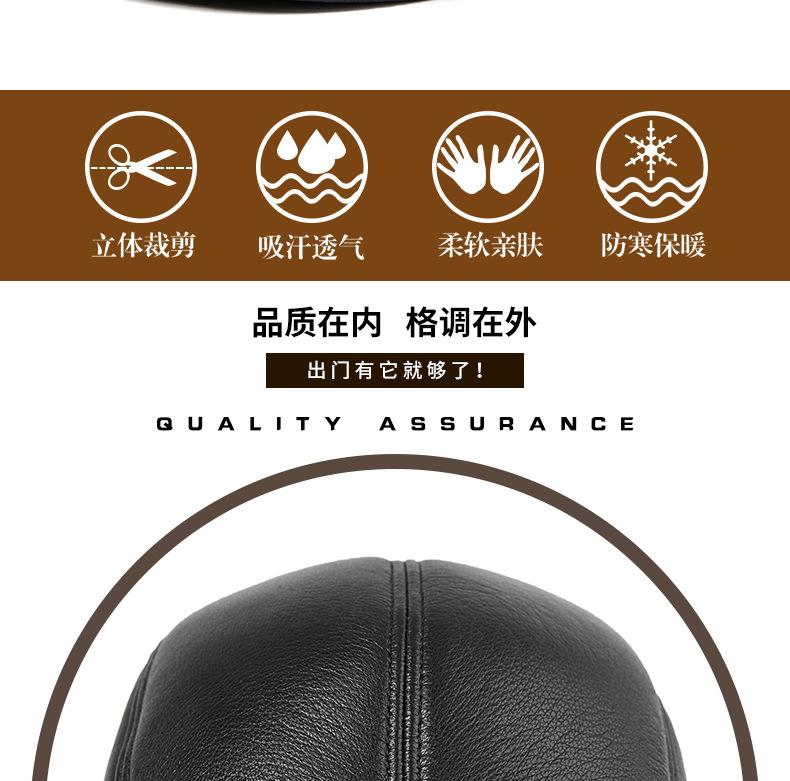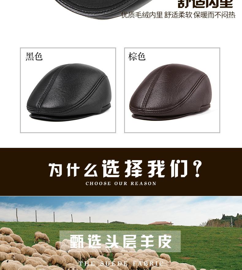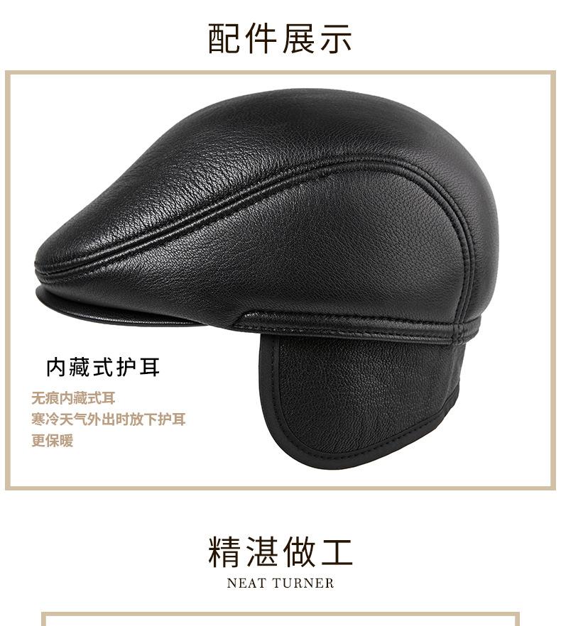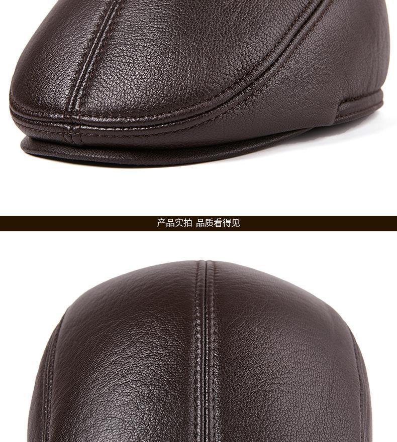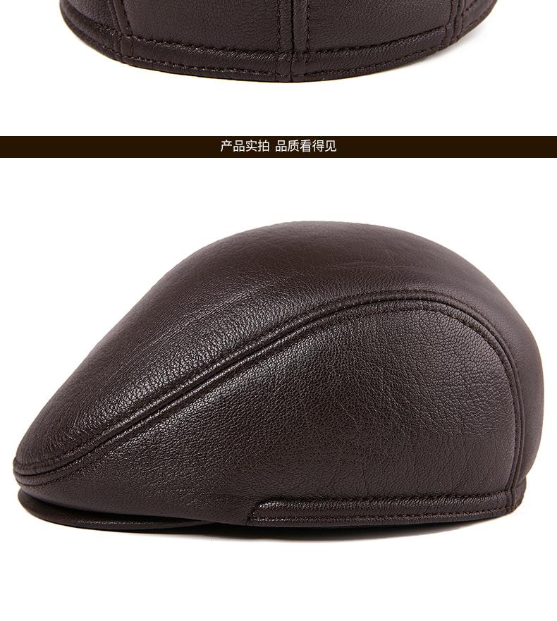 Novo Chapéu de Couro Genuíno Boina de Pele de Carneiro Masculina de Meia-Idade e Idosa Outono e Inverno Advance Cap Proteção Auricular Algodão Quente Anti Onda Fria