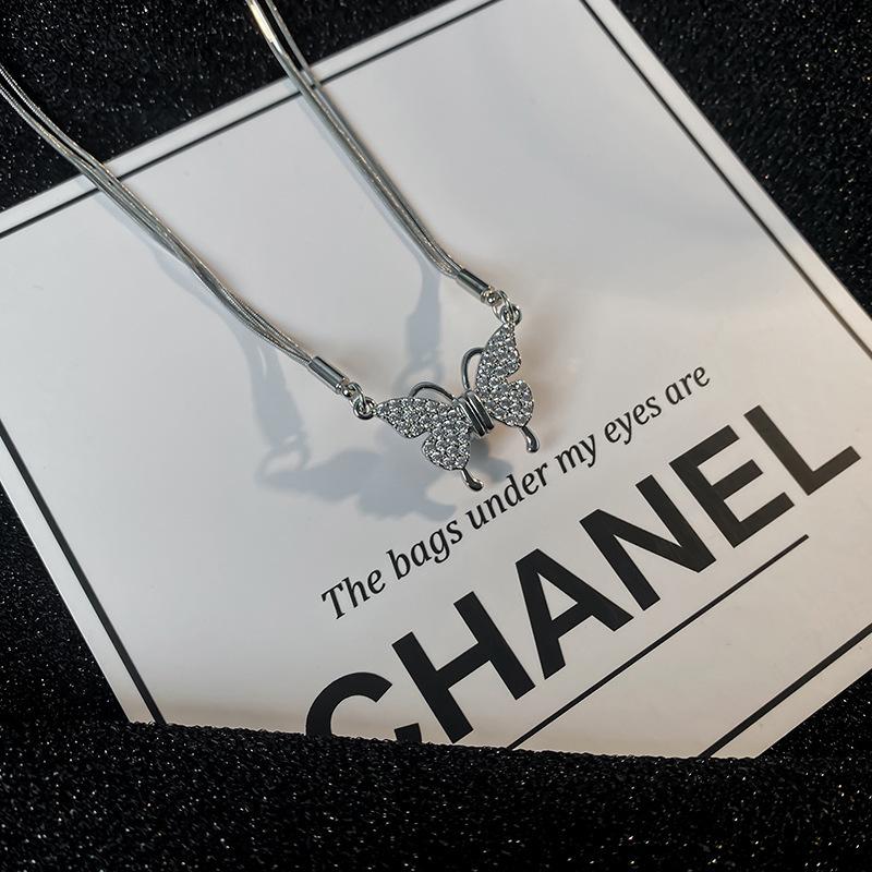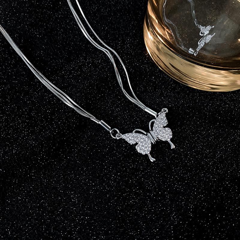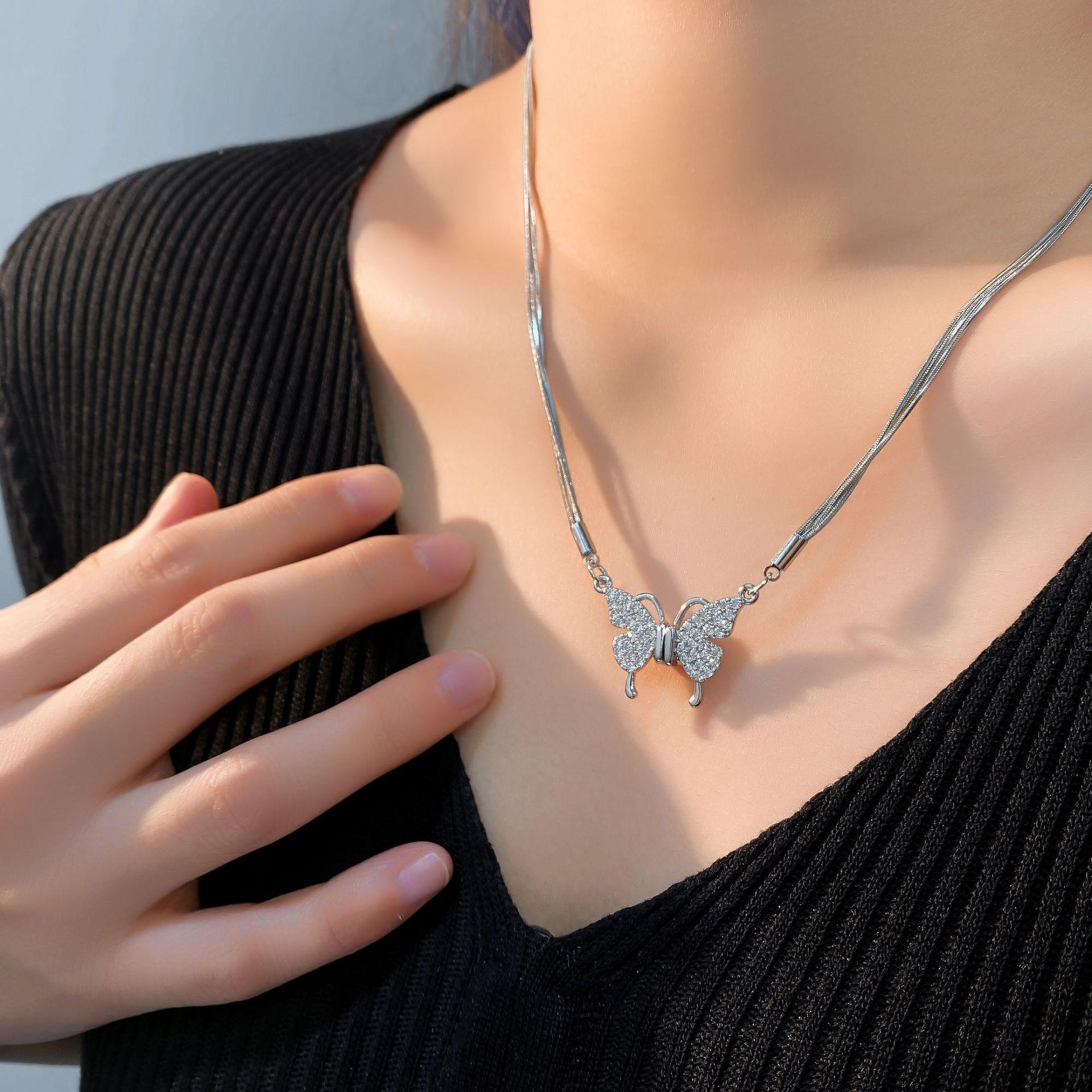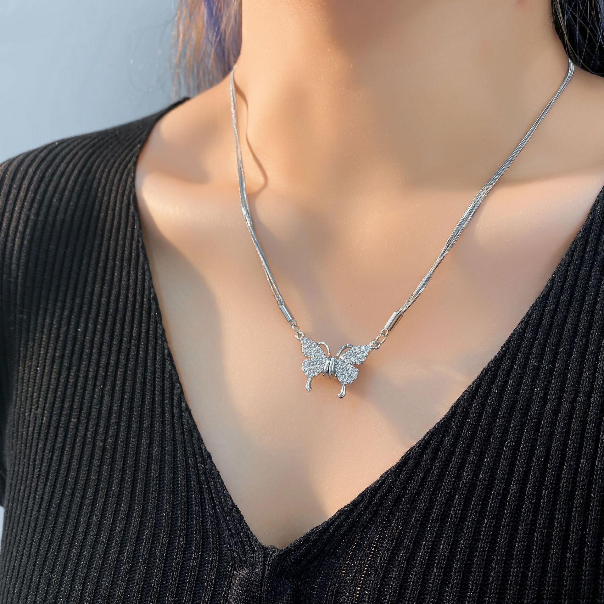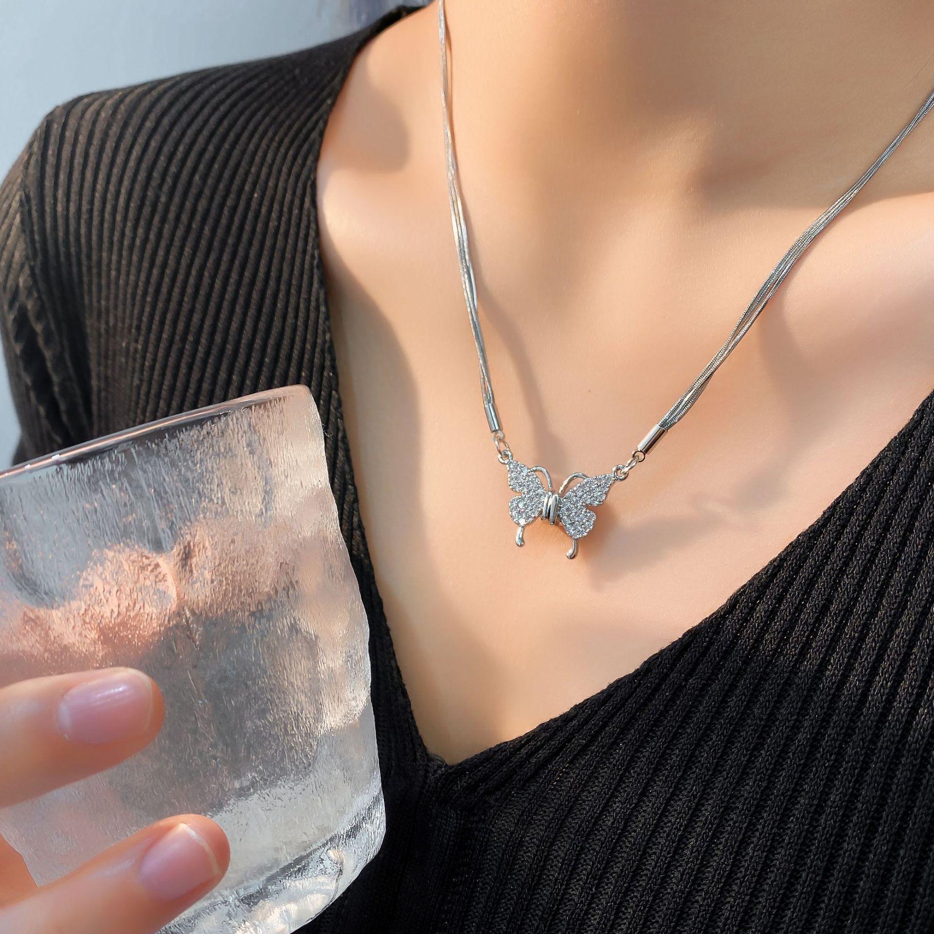 Colar com pingente de borboleta de corrente multicamadas retrô francesa feminino novo design de nicho simples corrente de clavícula de alta qualidade para mulheres