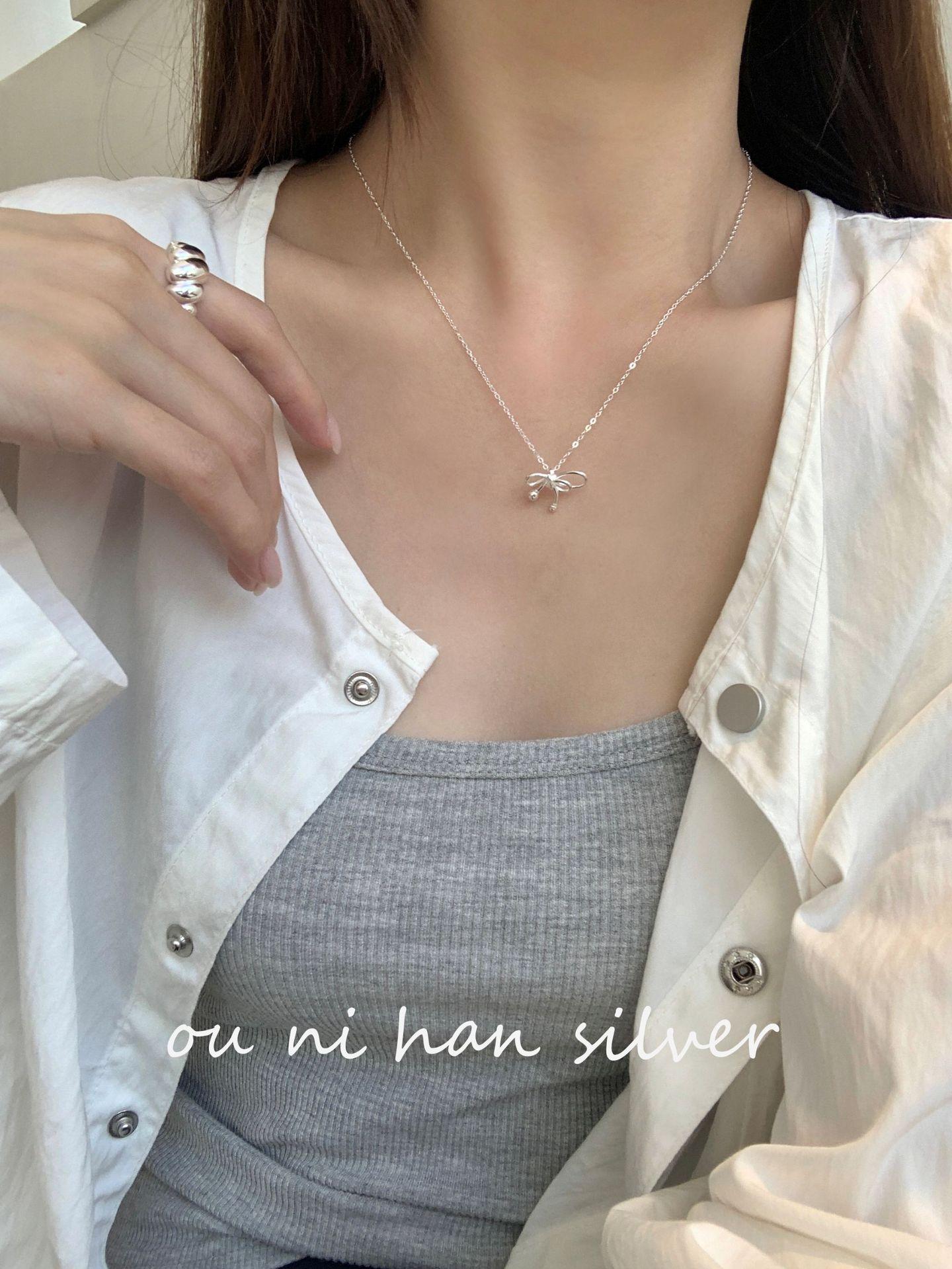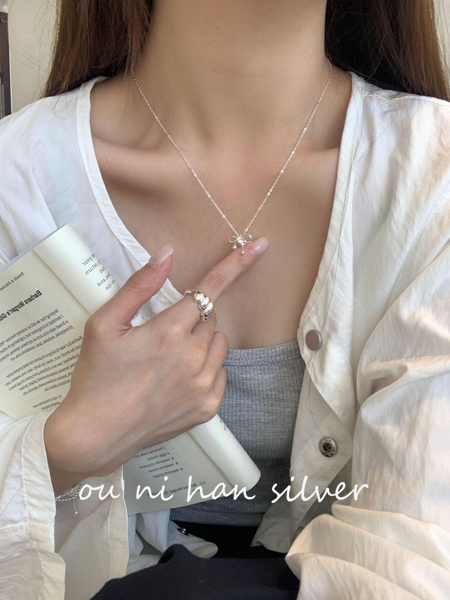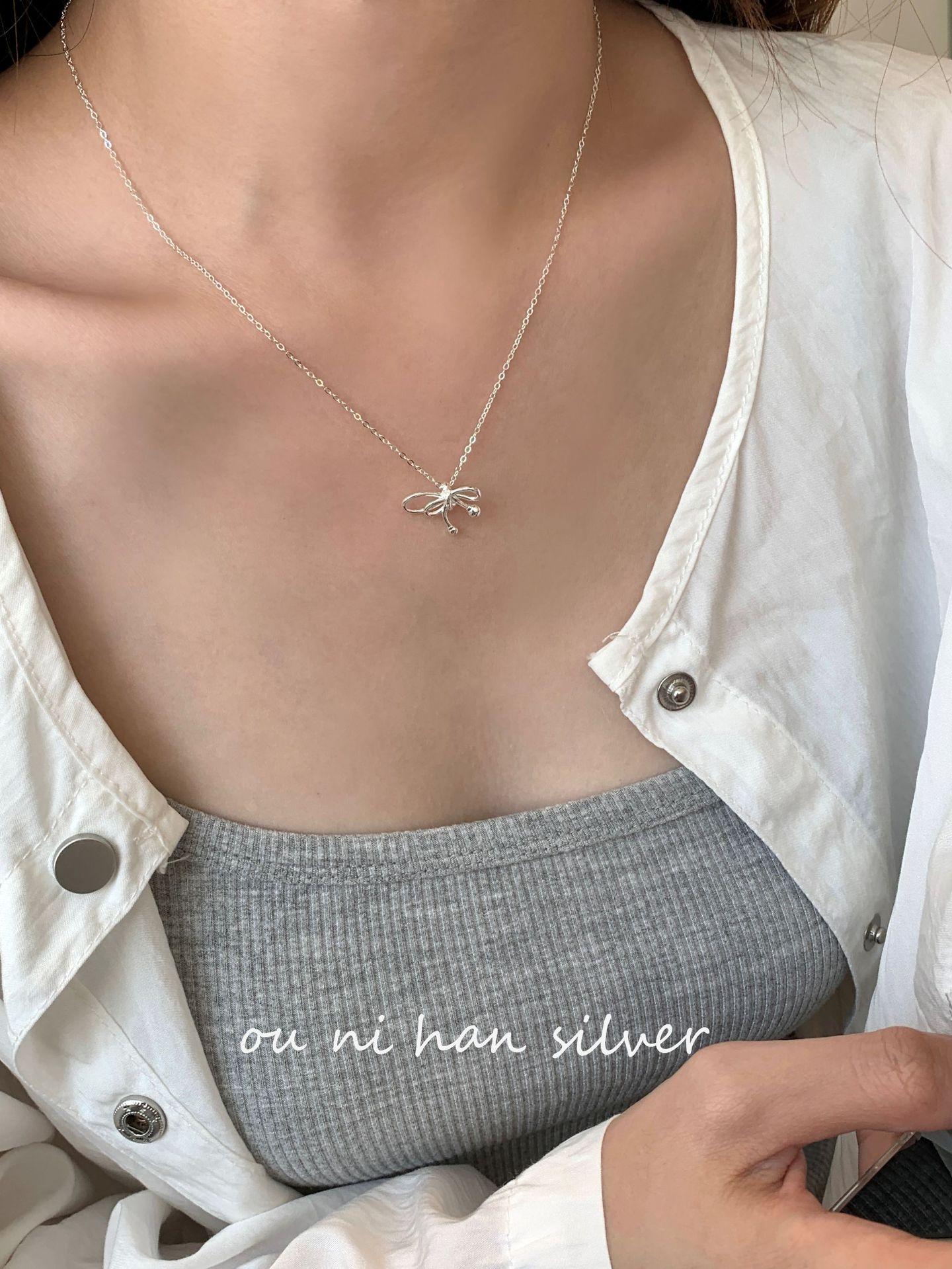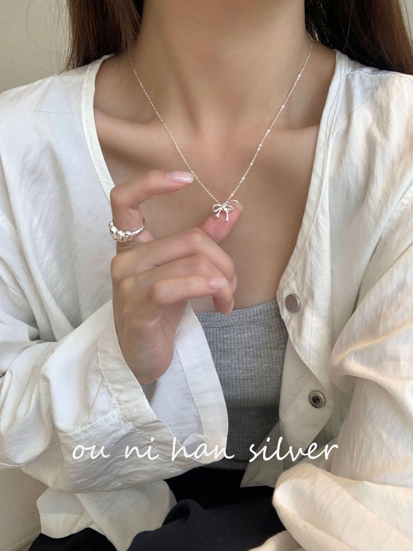 Oni estilo coreano S925 prata esterlina arco fino colar novo 2024 luz luxo nicho high-end clavícula corrente para mulheres