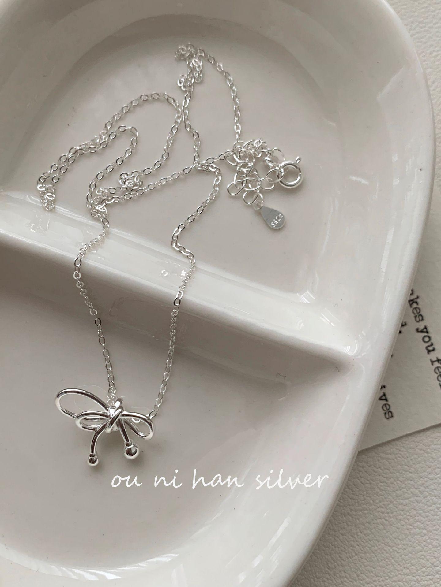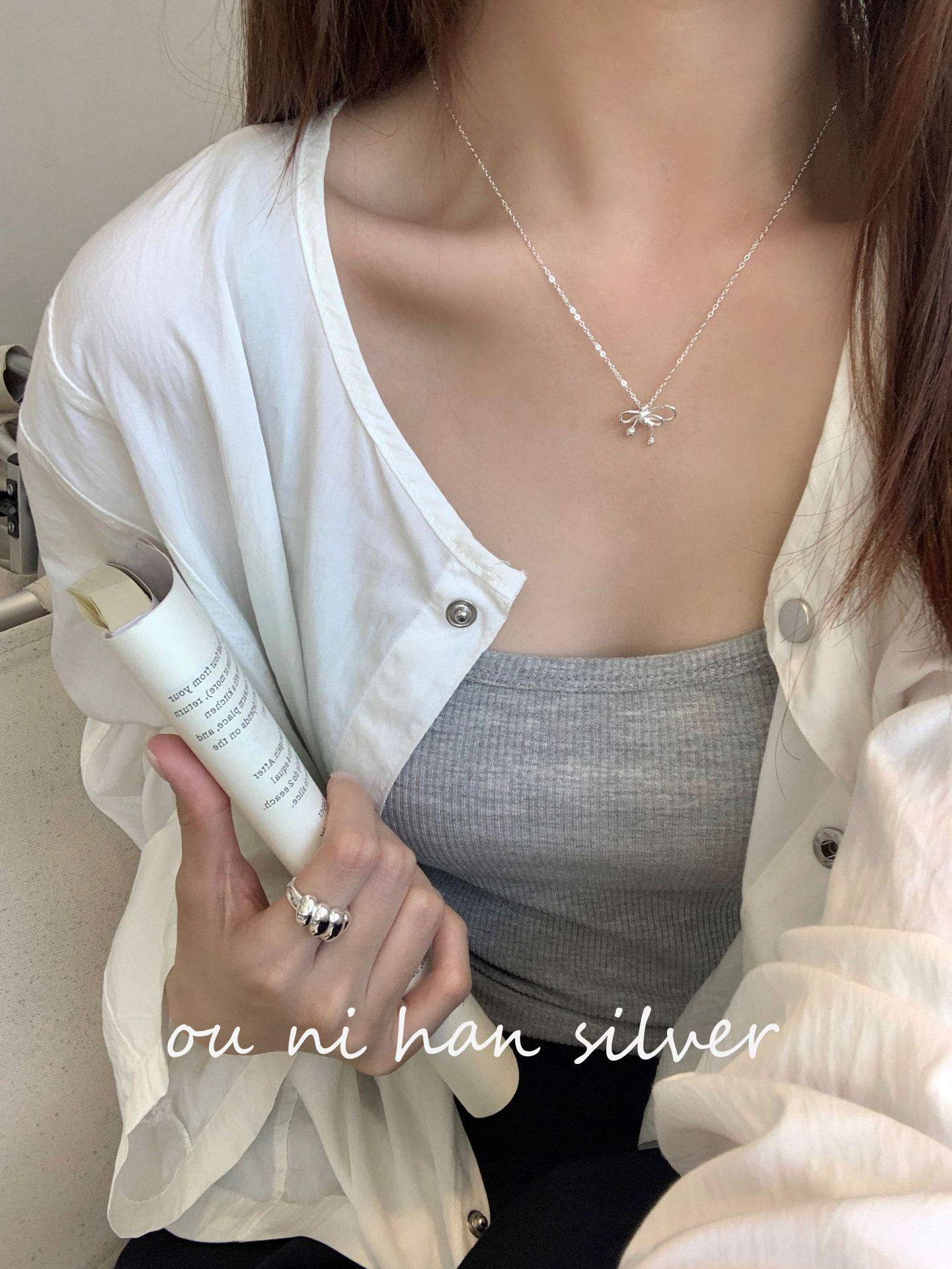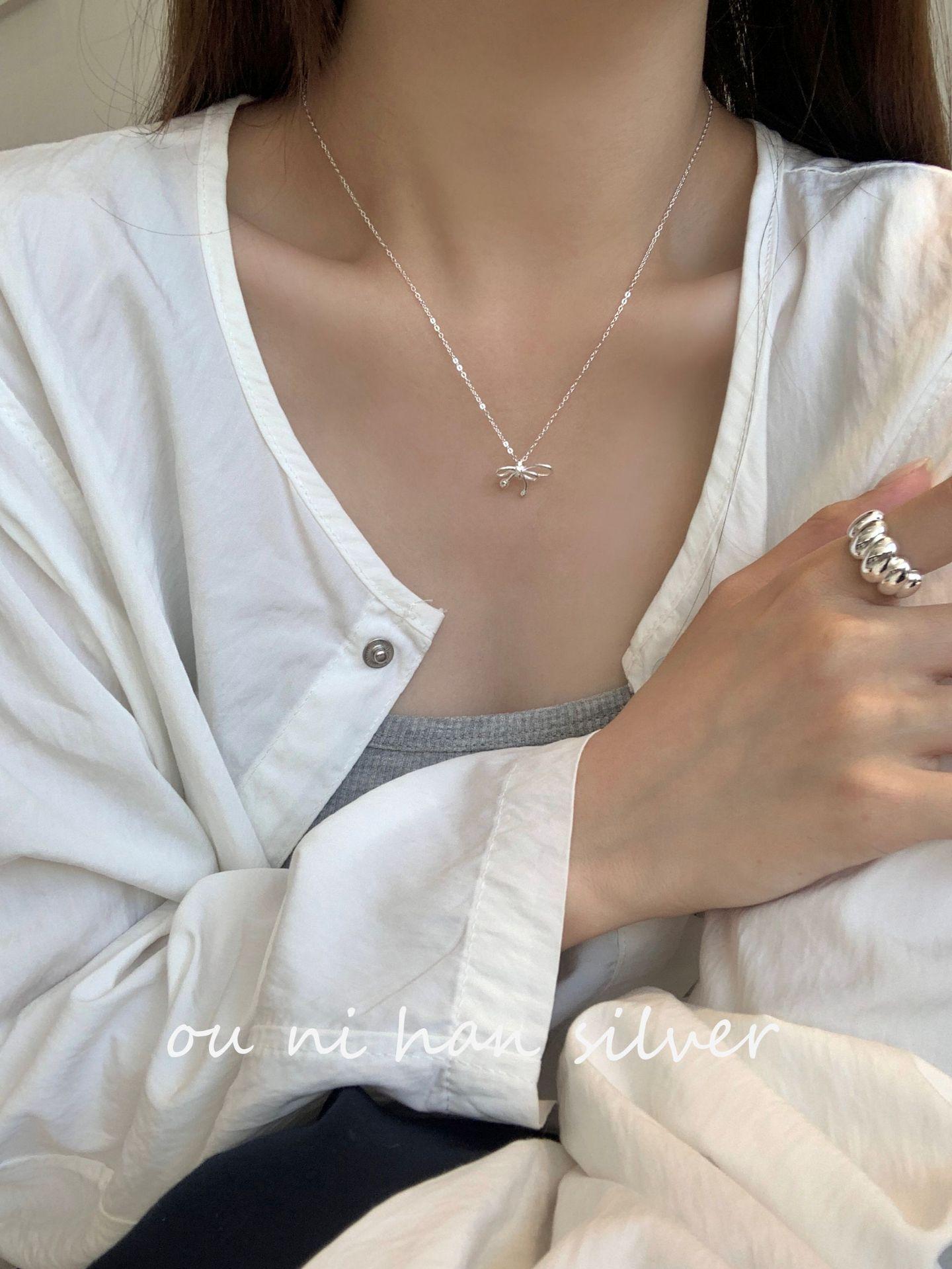 Oni estilo coreano S925 prata esterlina arco fino colar novo 2024 luz luxo nicho high-end clavícula corrente para mulheres