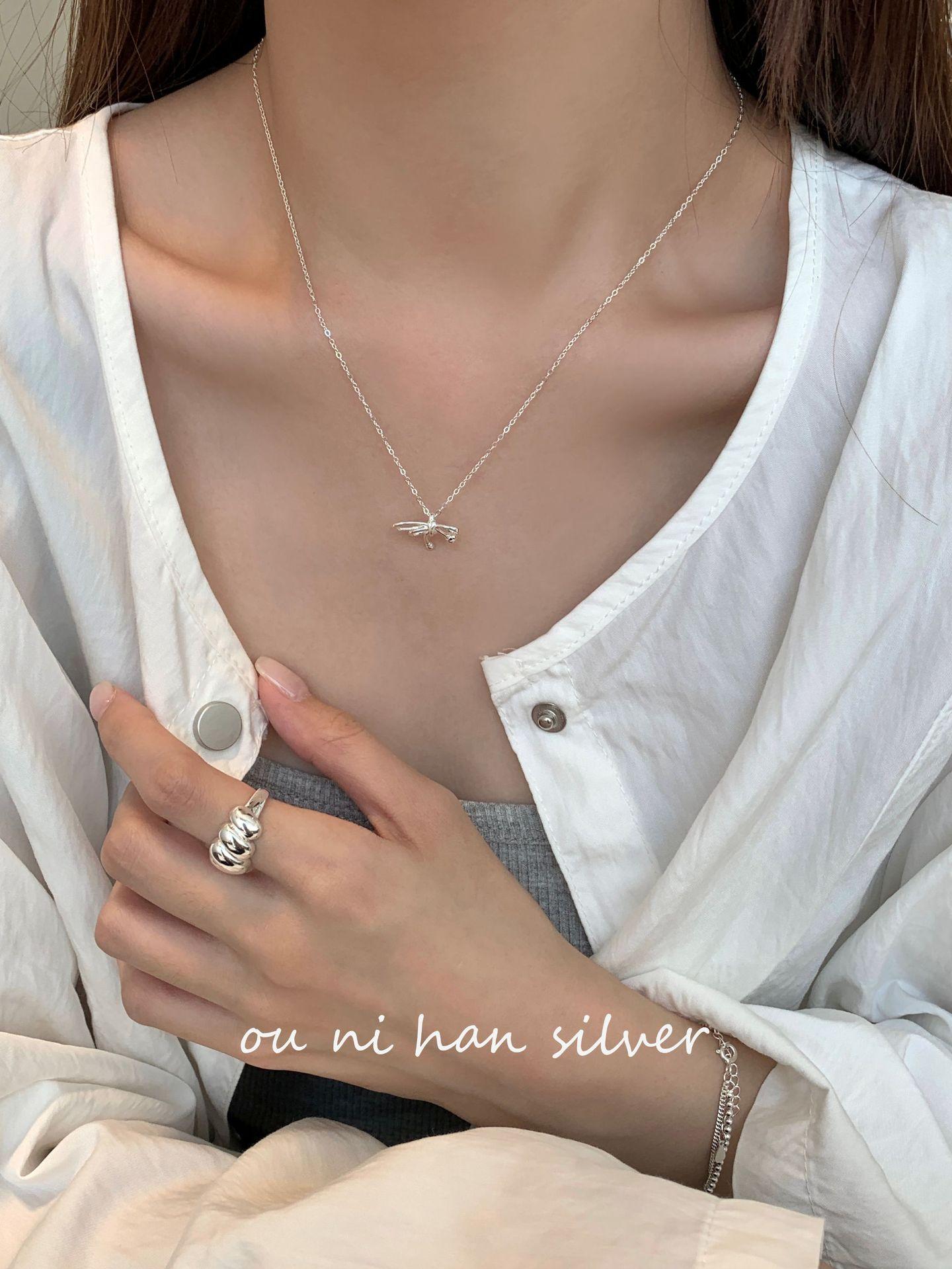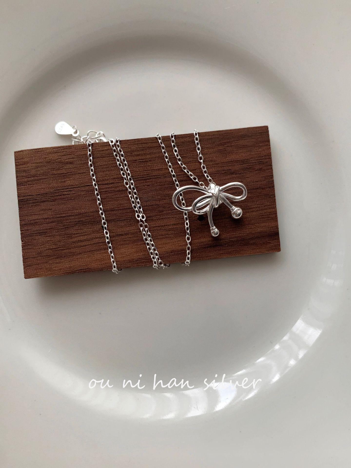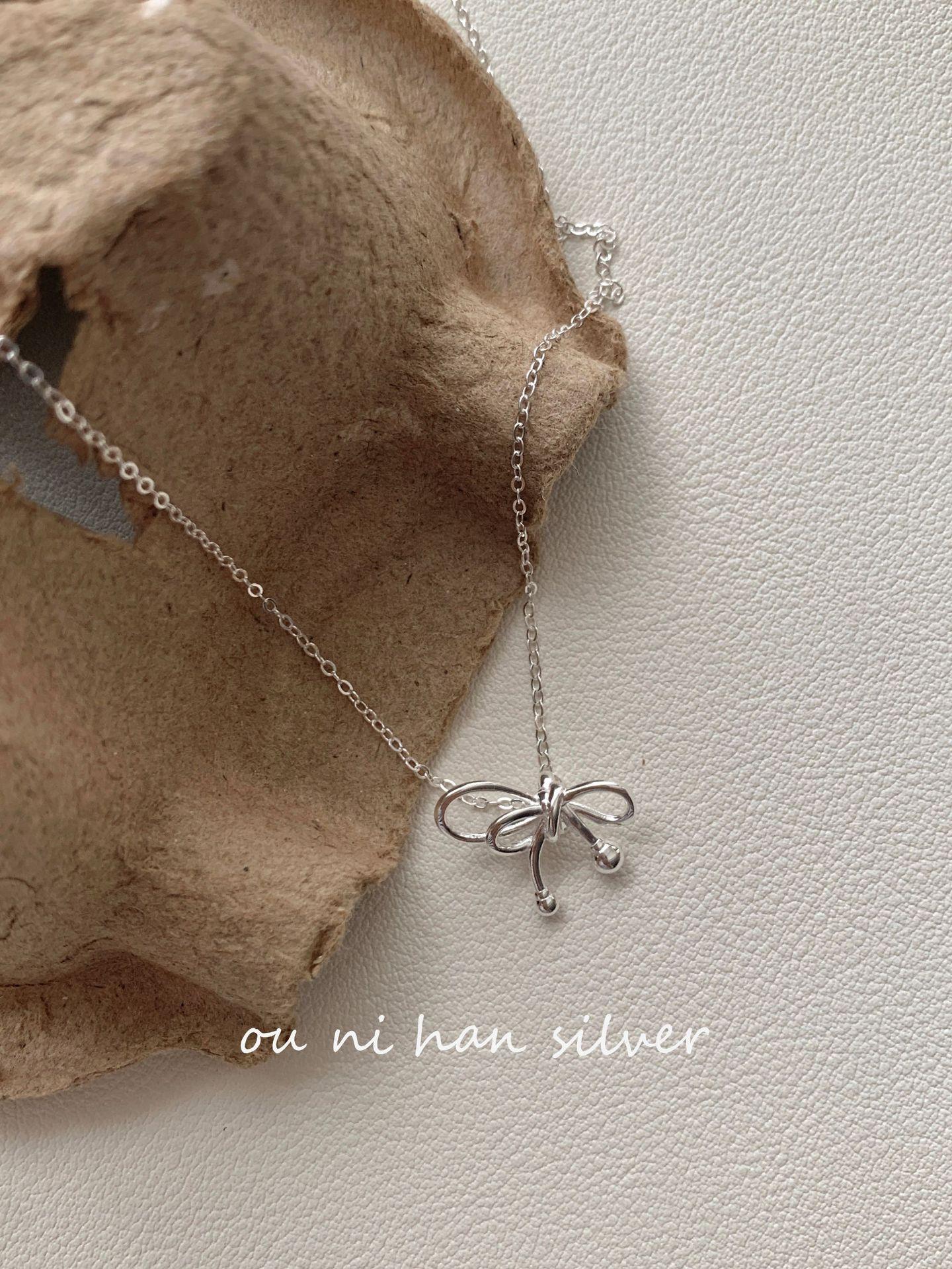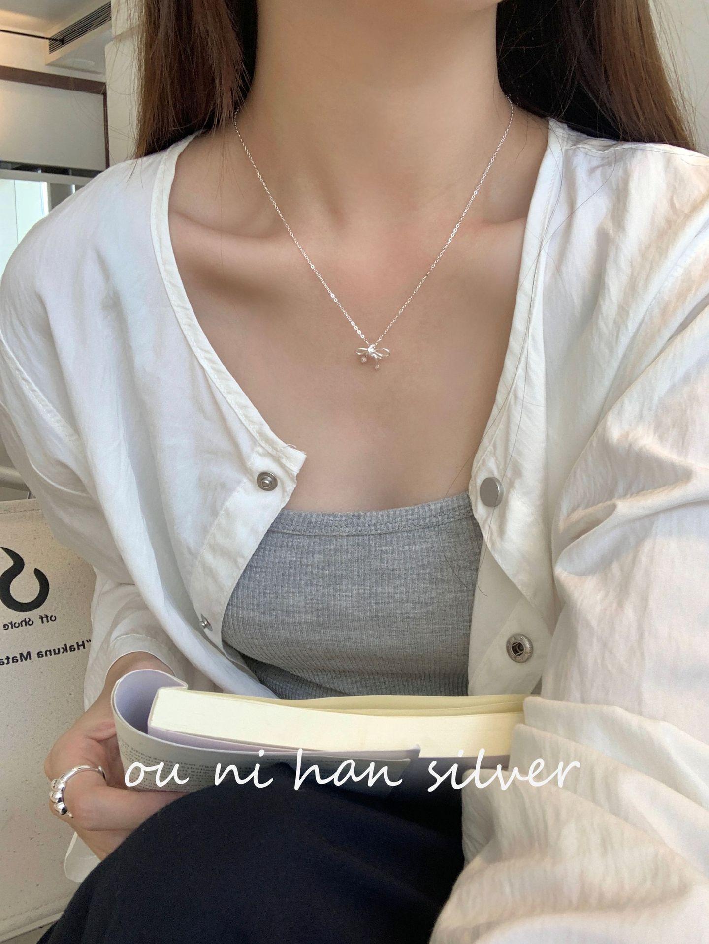 Oni estilo coreano S925 prata esterlina arco fino colar novo 2024 luz luxo nicho high-end clavícula corrente para mulheres