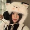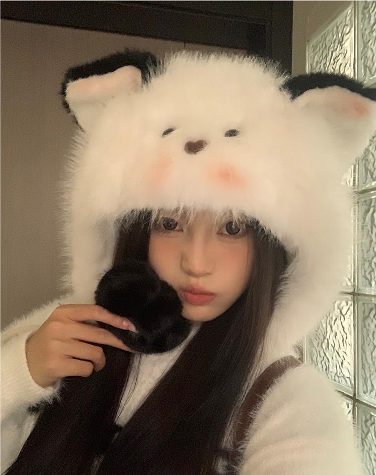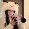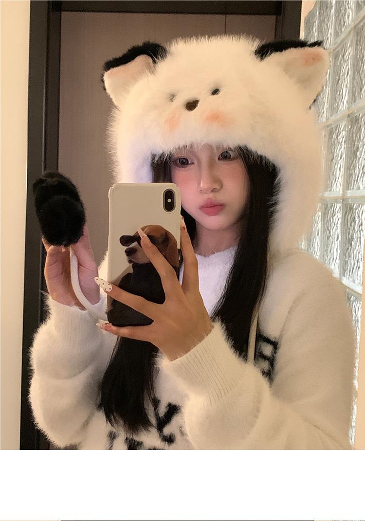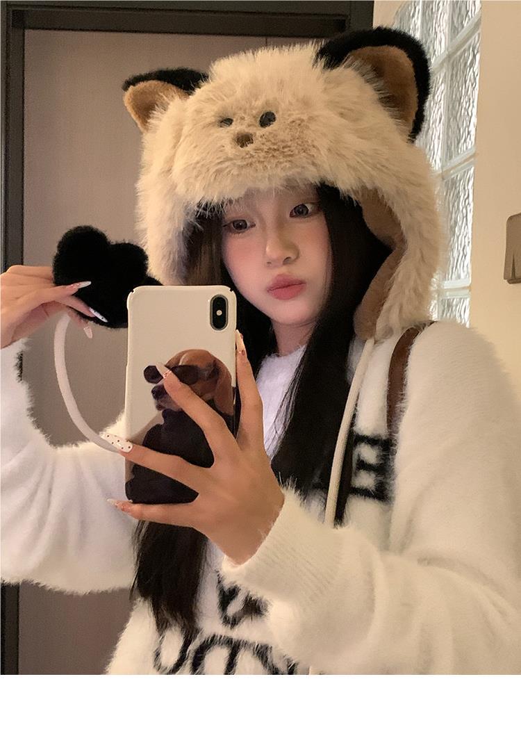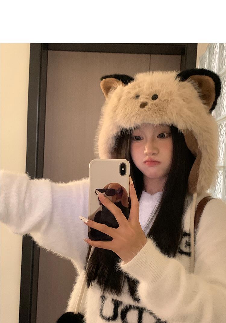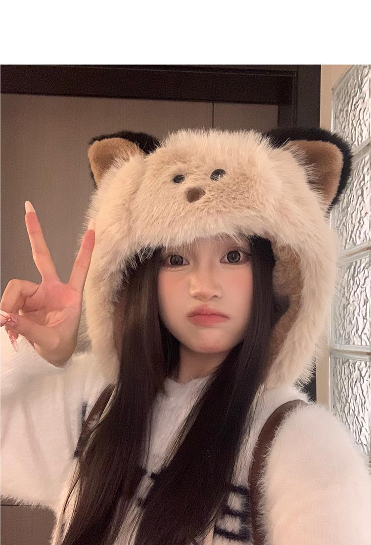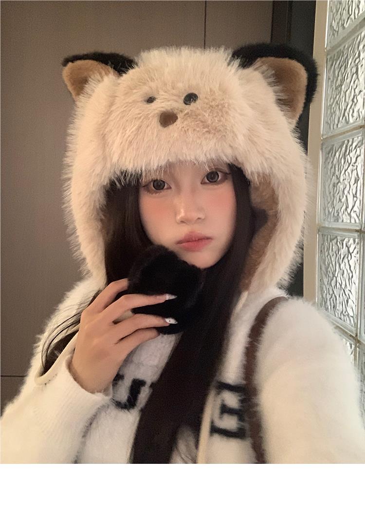 Bonito chapéu de pelúcia de duas peças para mulheres no outono e inverno novo chapéu Lei Feng quente e espesso mostrando o rosto pequeno chapéu de proteção para orelhas branco