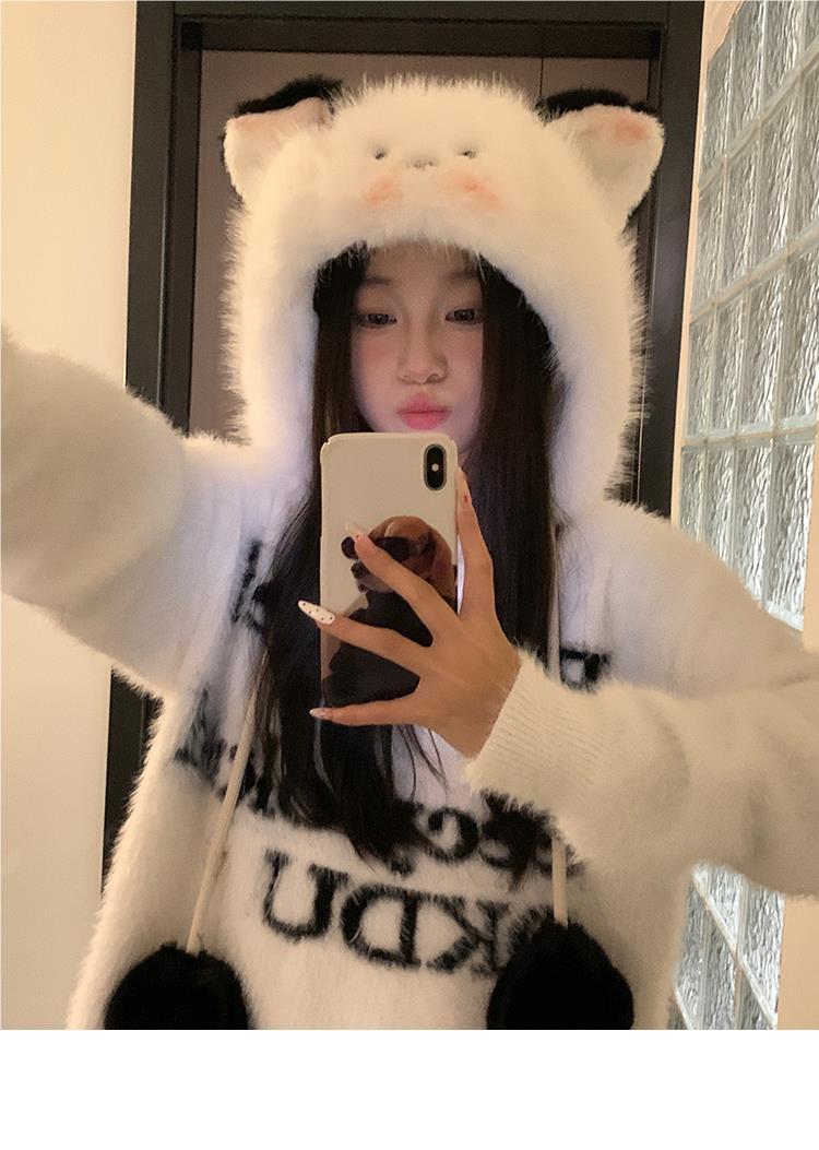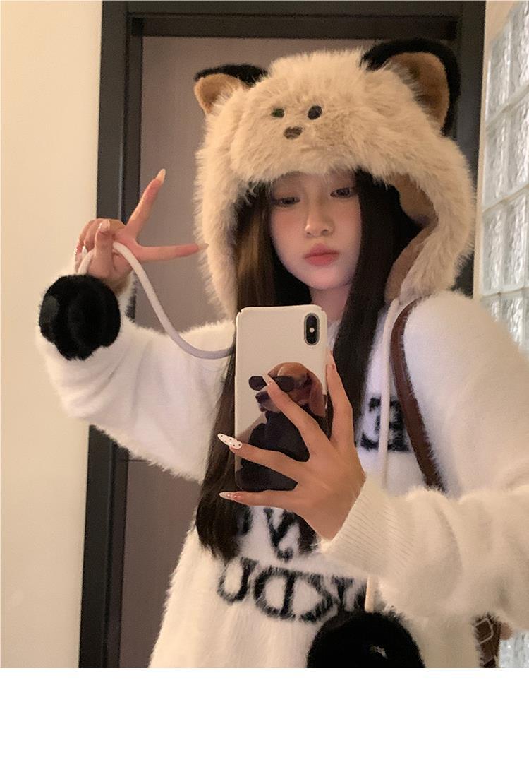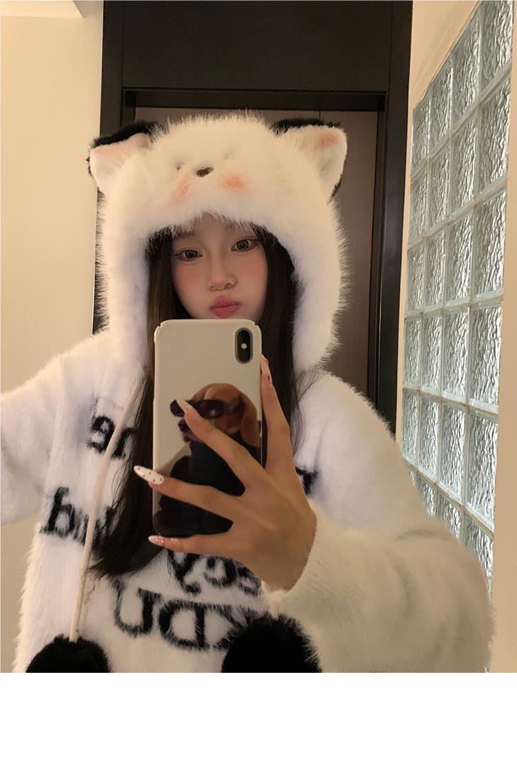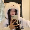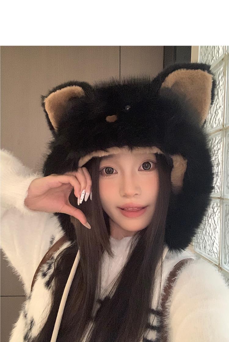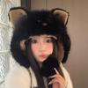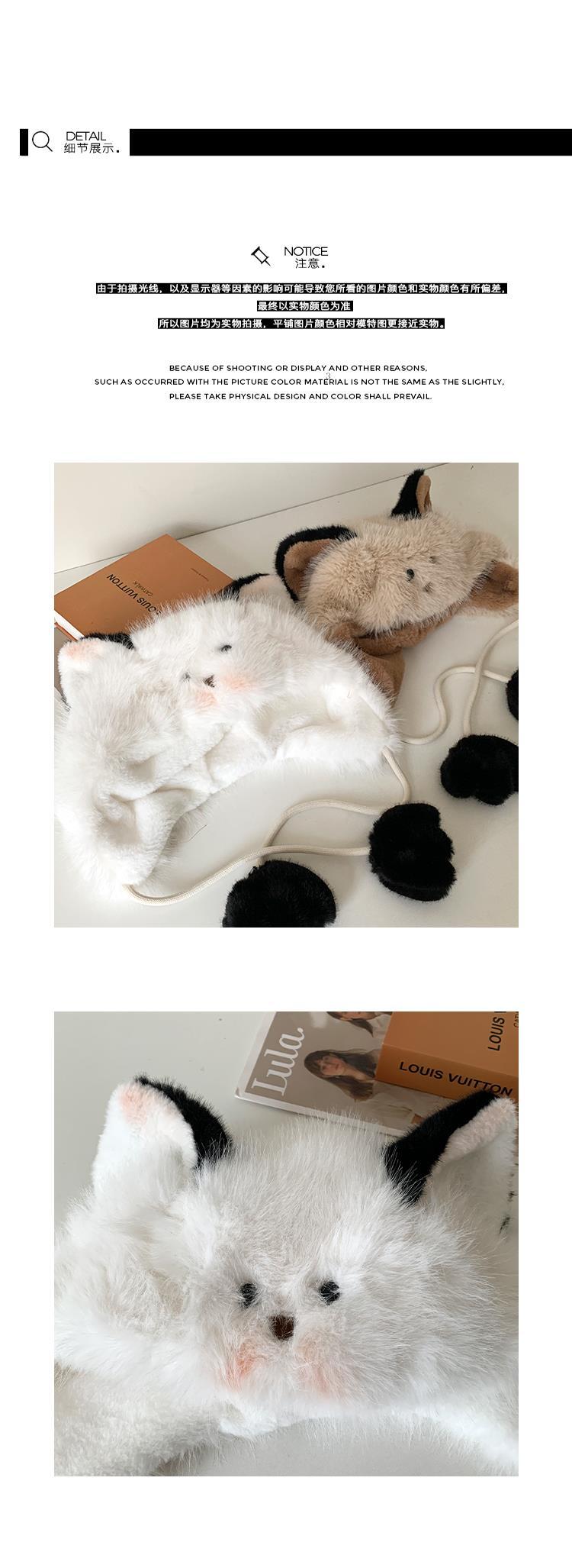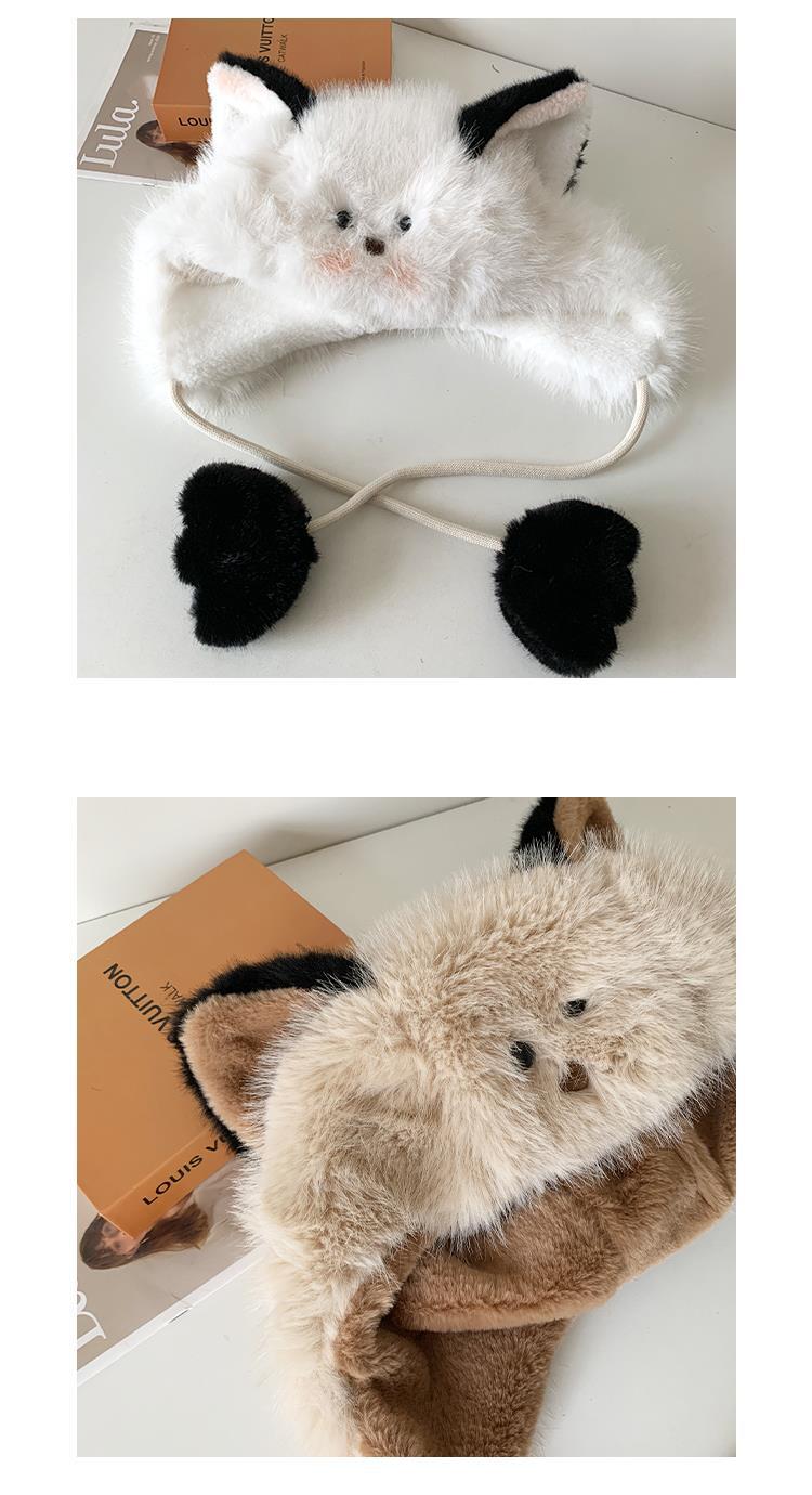 Bonito chapéu de pelúcia de duas peças para mulheres no outono e inverno novo chapéu Lei Feng quente e espesso mostrando o rosto pequeno chapéu de proteção para orelhas branco
