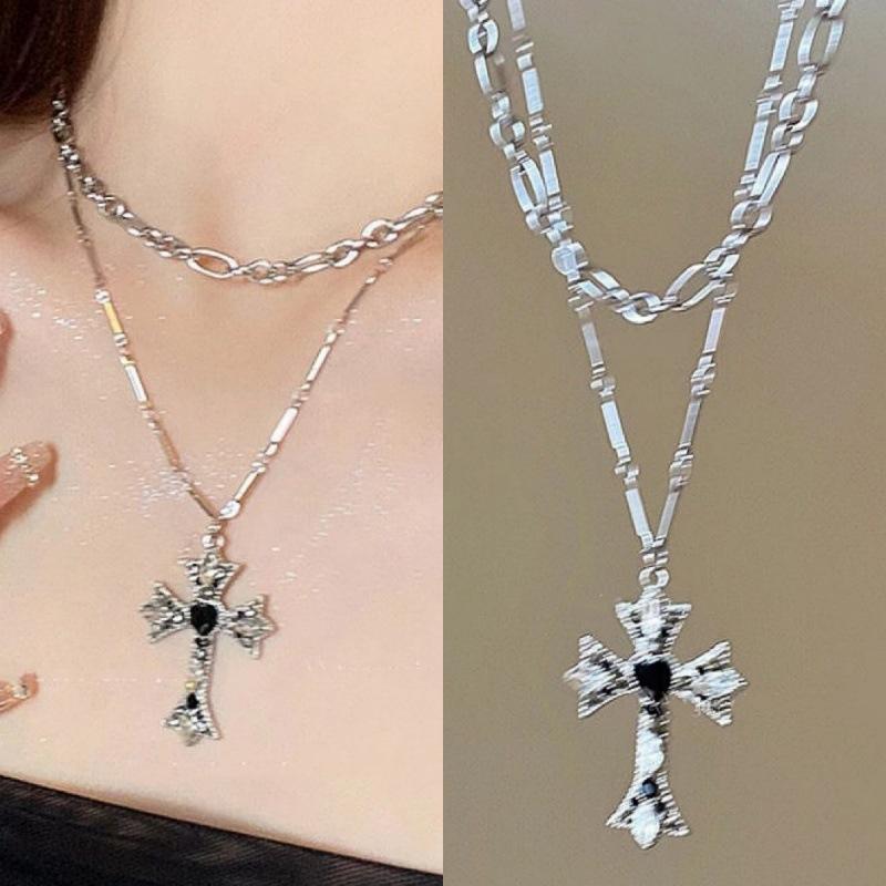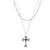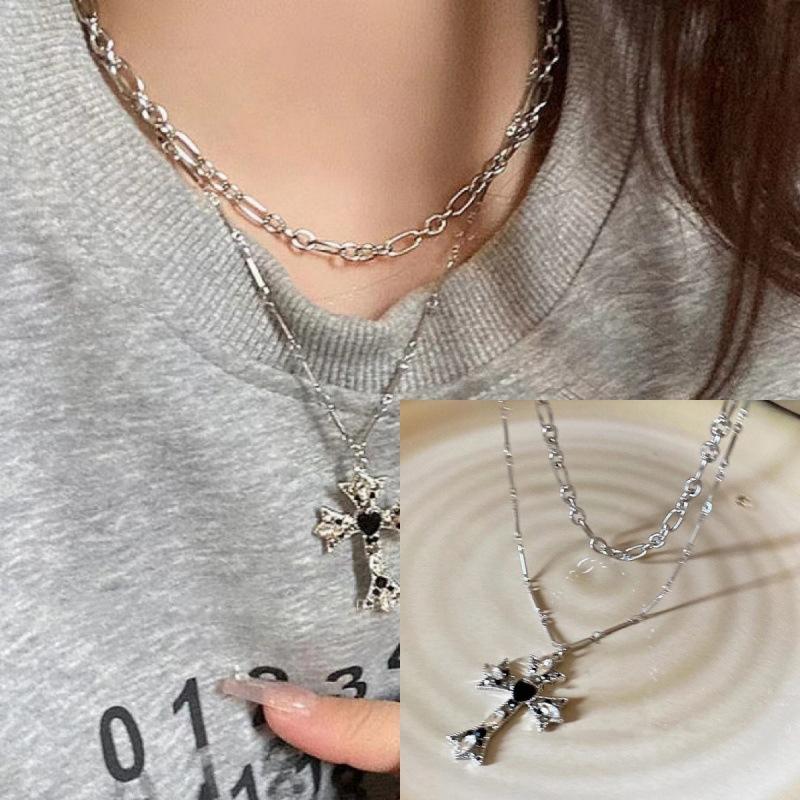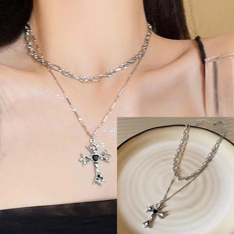 Colar de pingente de cruz incrustado de diamante de camada dupla requintada de luxo leve para mulheres Nova moda moda personalizada na Internet Celebridade da Internet Corrente de clavícula