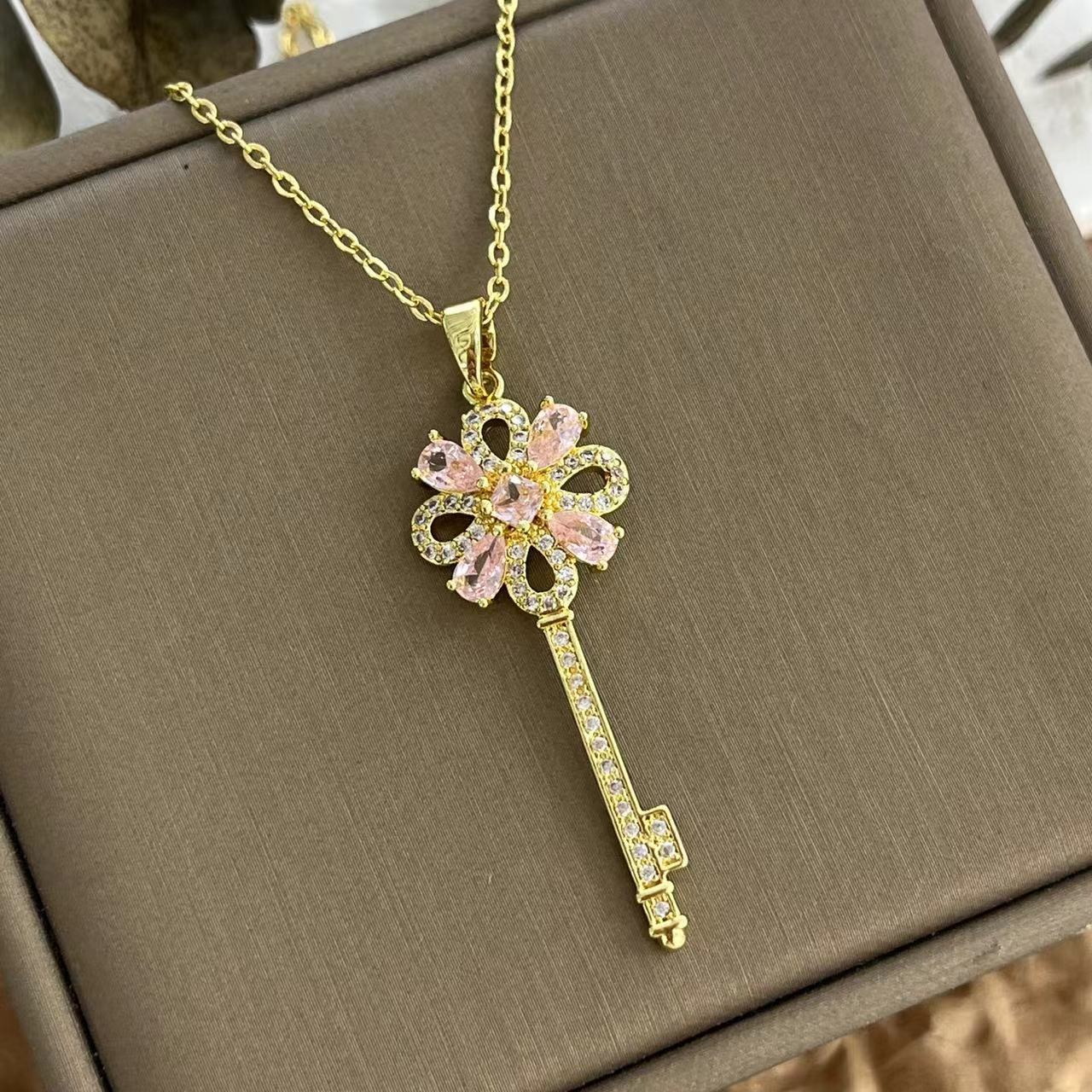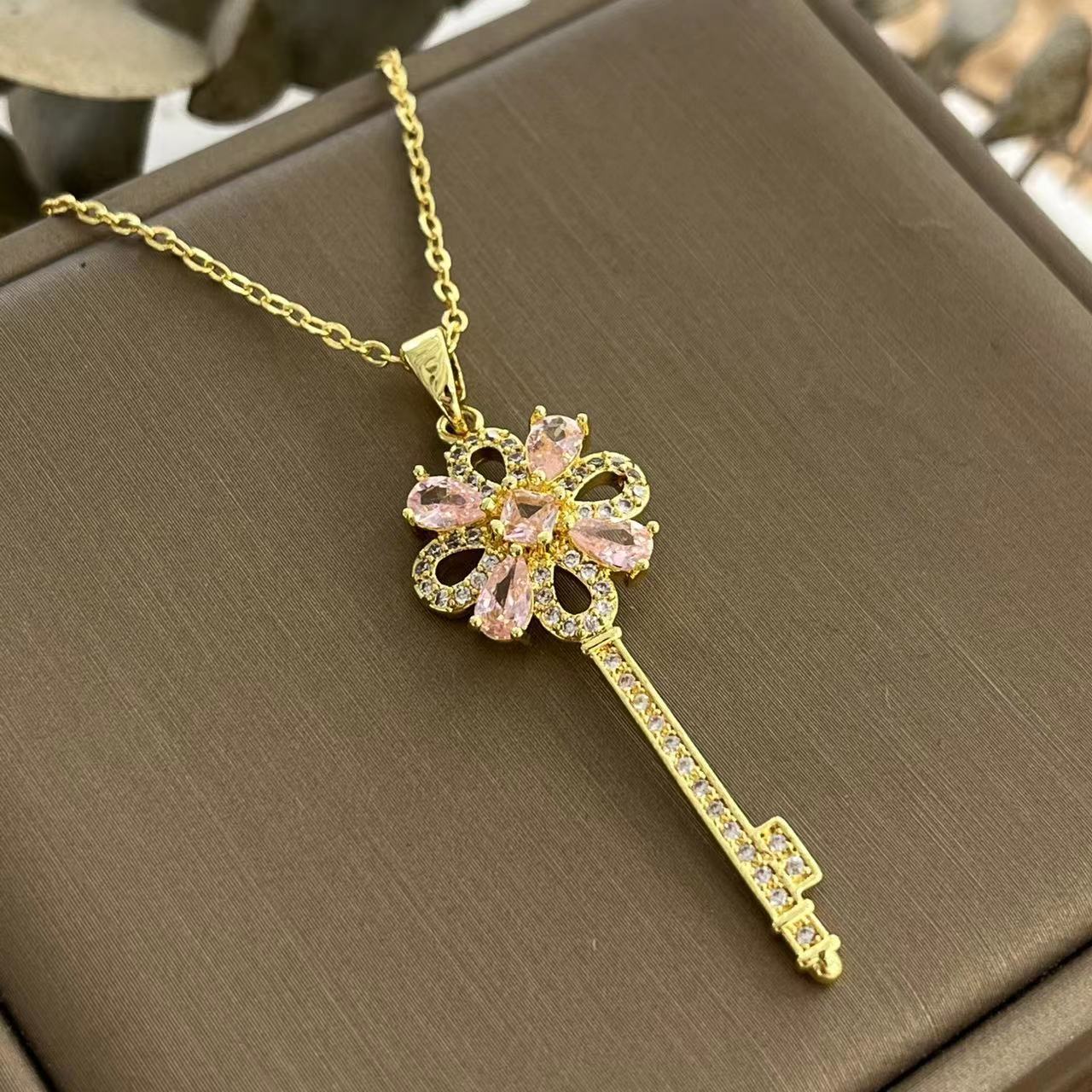 Cross-border novo colar de chave feminino de alta qualidade moda simples colar de titânio aço não desbotamento feminino jóias colar acessórios