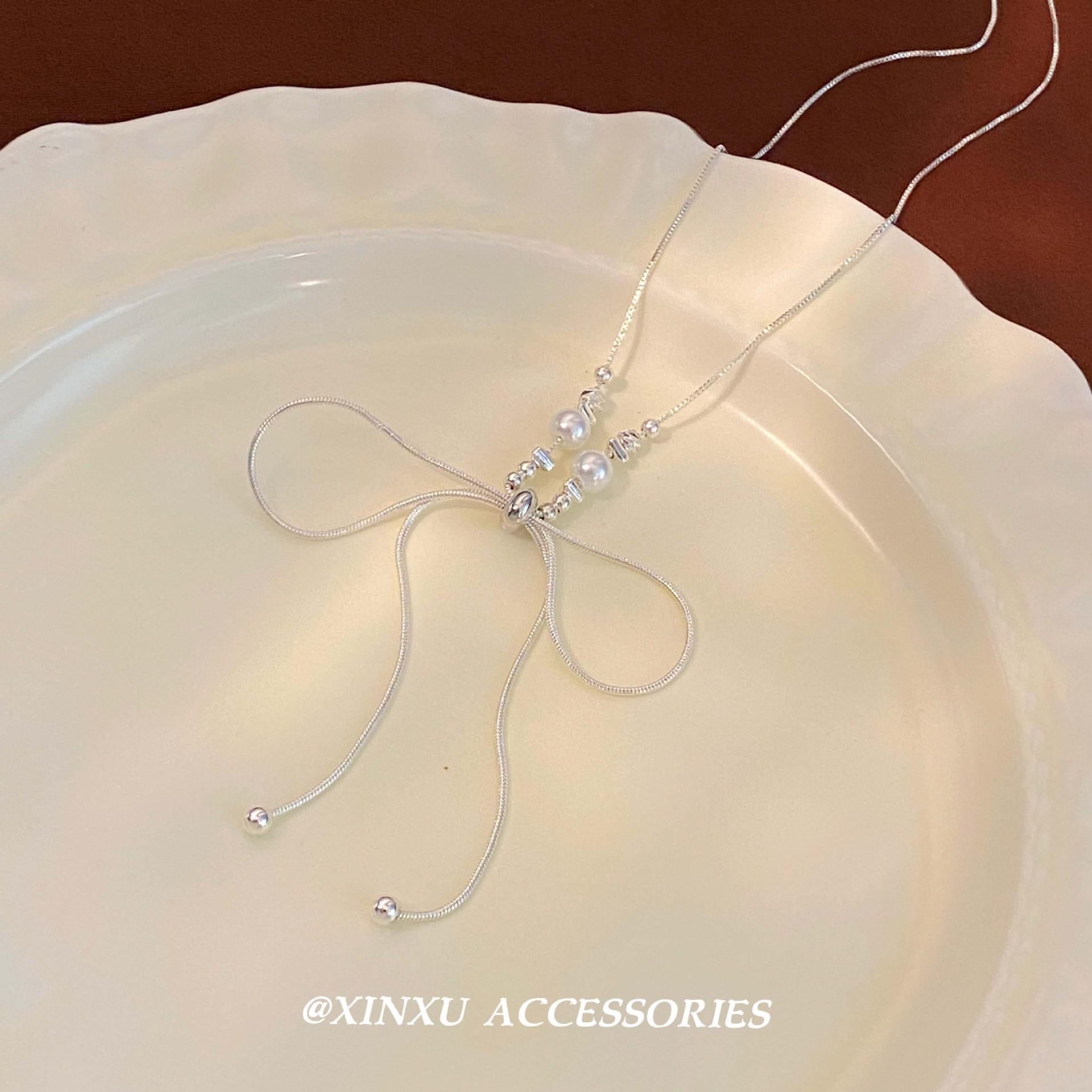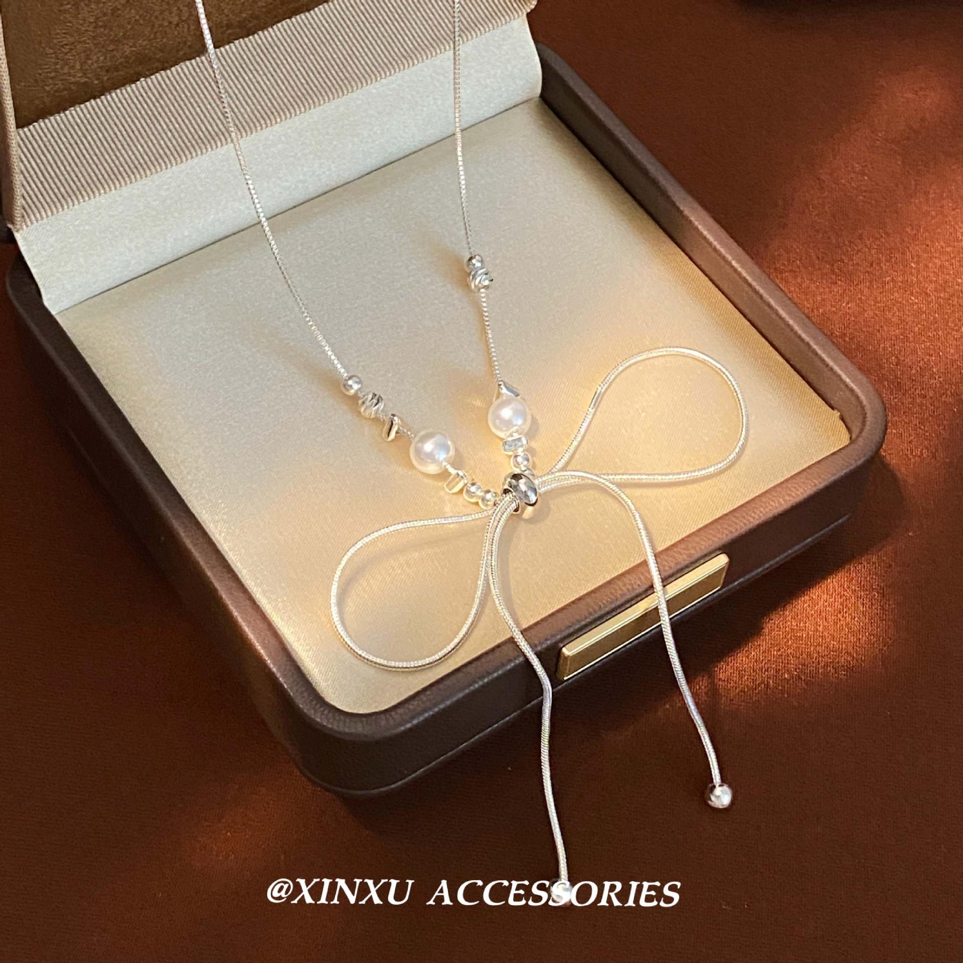 Compre 2024 Novo Estilo Super Bonito Arco Colar de Pérolas Luz Luxo Elegante Nicho Clavícula Cadeia Moda All-match Colar Longo Cadeia no atacado no Joom.pro