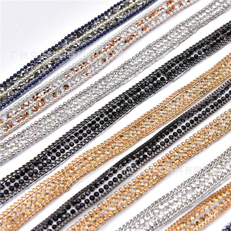【Conteúdo】:Correntes de contas de vidro em ambos os lados, tira de cola de strass no meio