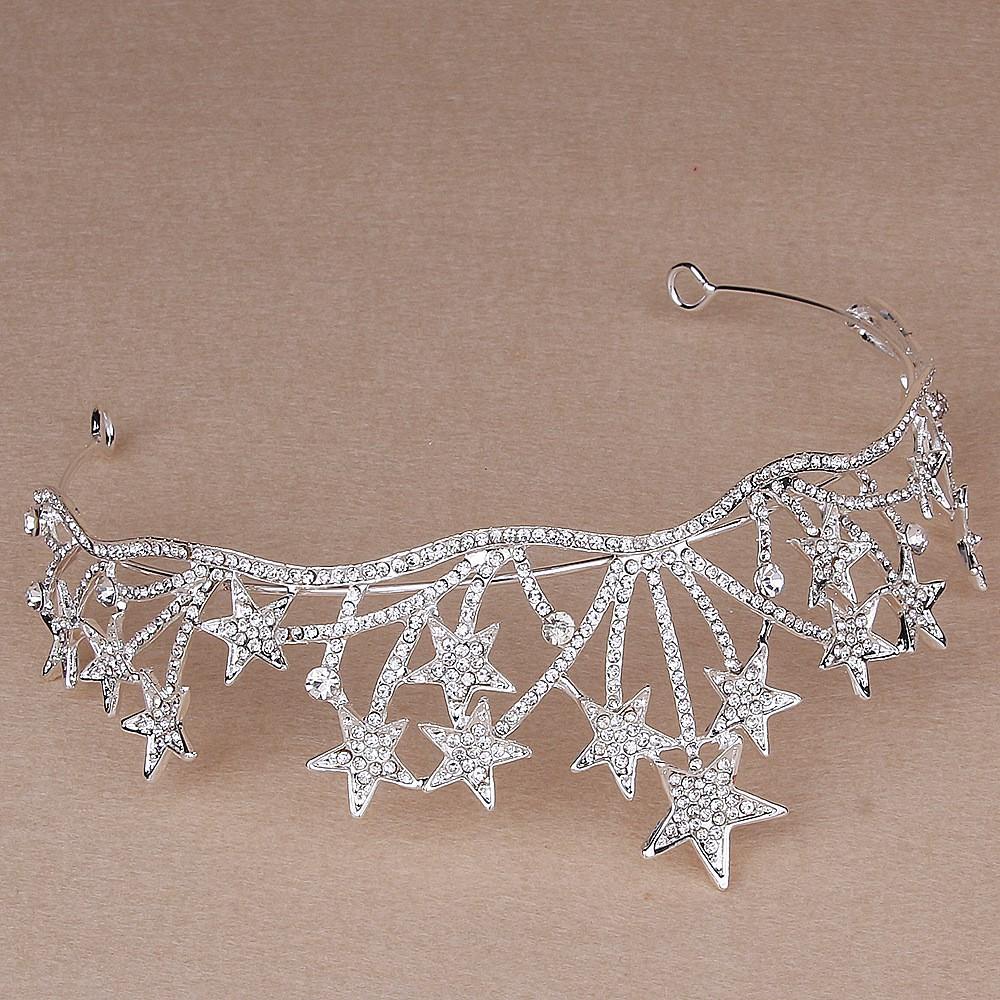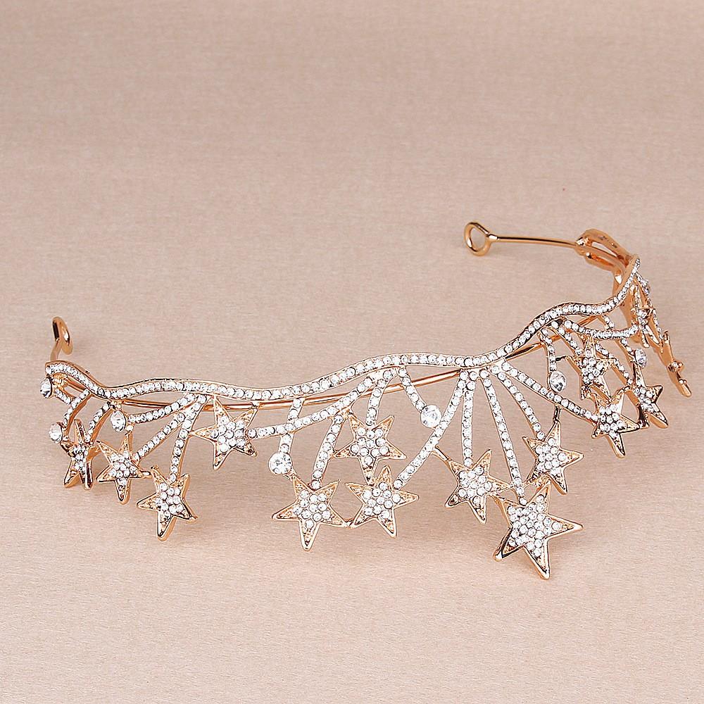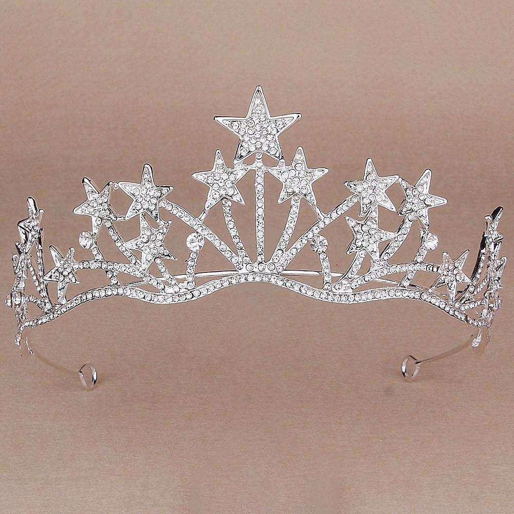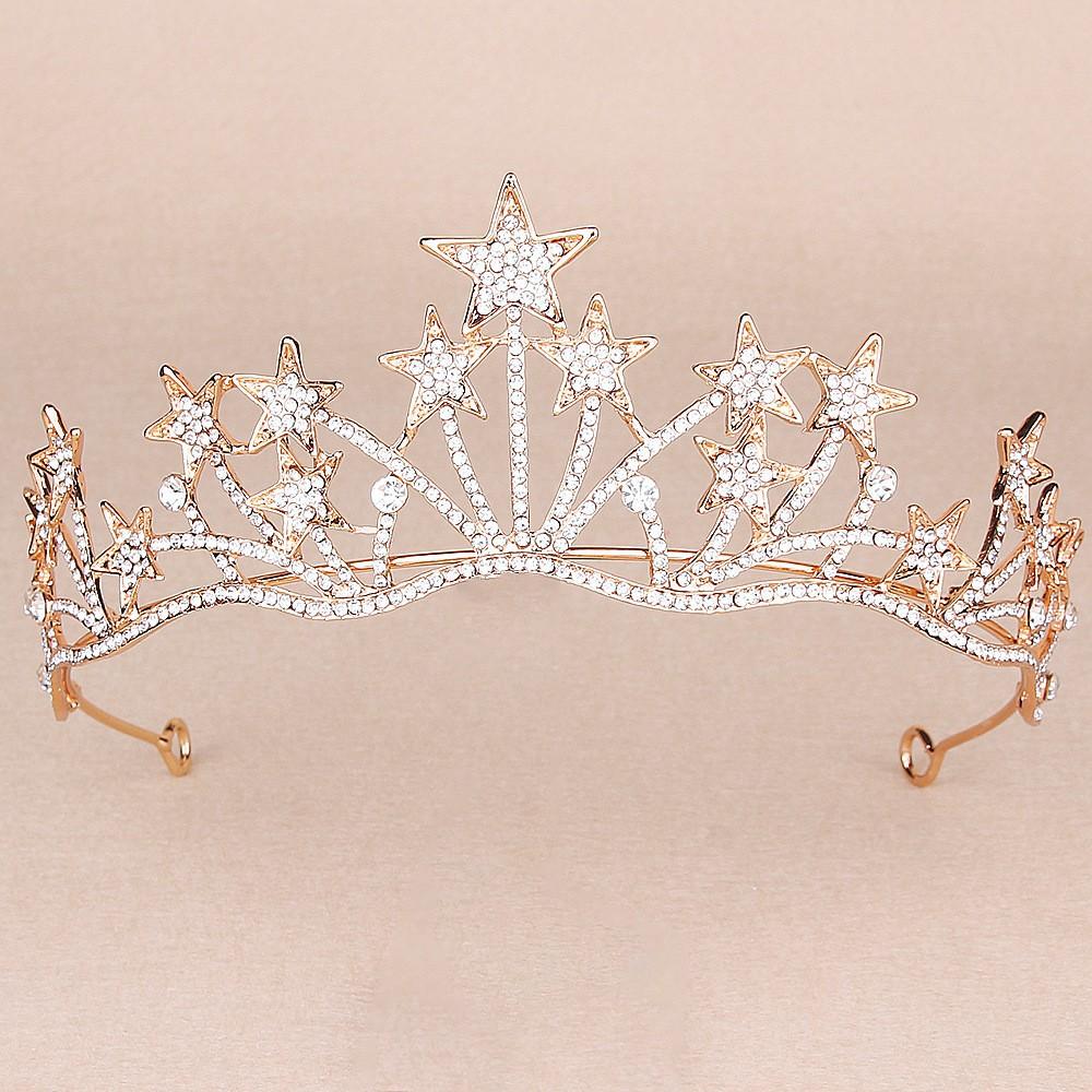 Compre Liga de strass de cinco pontas estrela coroa de noiva cocar high-end vestido de noiva acessórios de casamento acessórios de cabelo coroa de luxo no atacado no Joom.pro