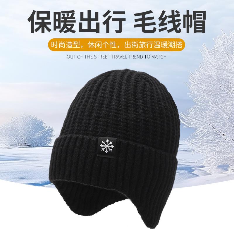 Chapéu frio masculino 2024 inverno novo simples moda quente chapéu de malha proteção auricular forrado de lã grande chapéu de lã para homens