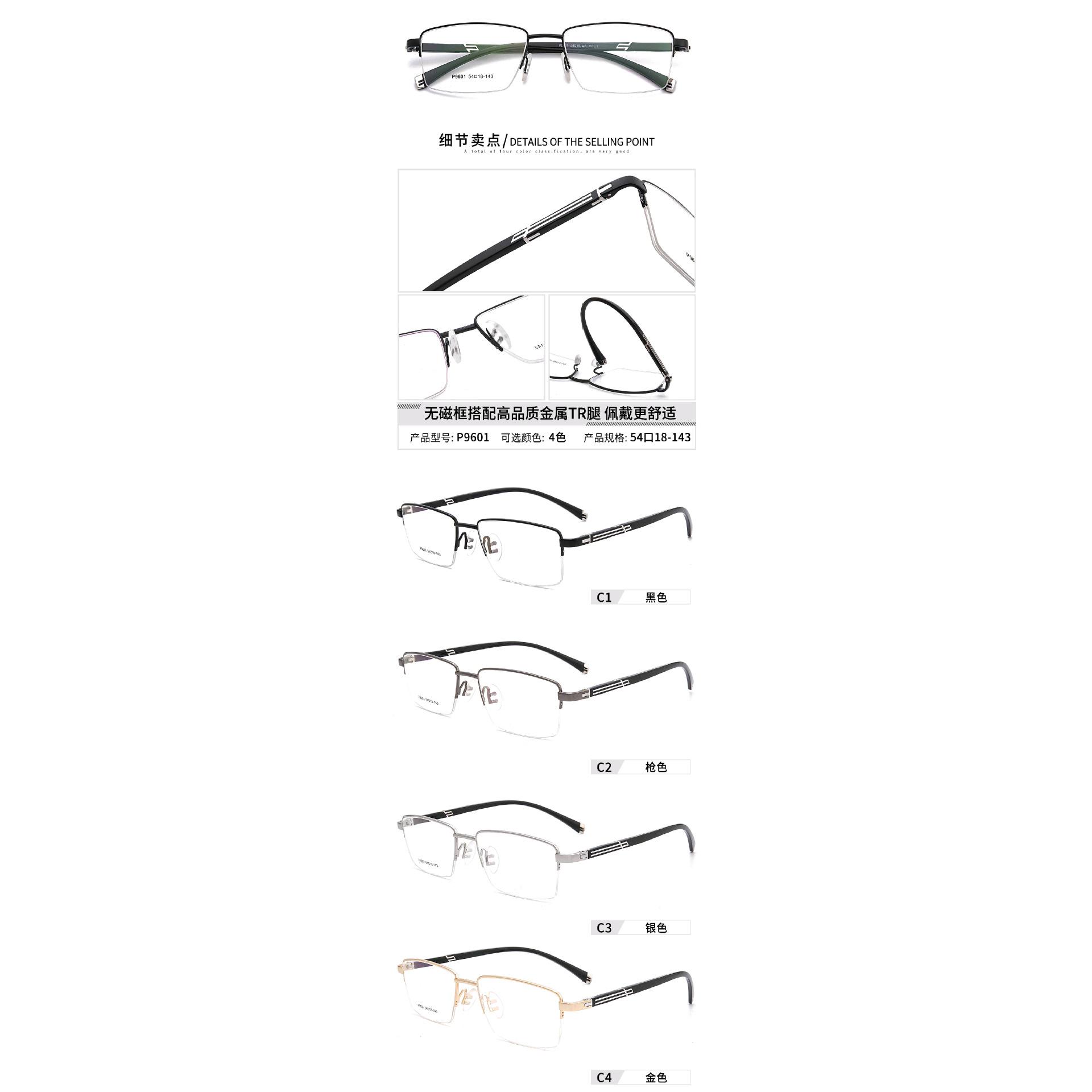 Compre Quadro não-magnético dos vidros do pé do TR do metal com o confortável de alta qualidade desgastar o P9601 bonito P9601 do escritório do negócio no atacado no Joom.pro