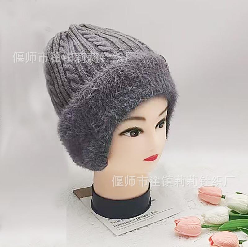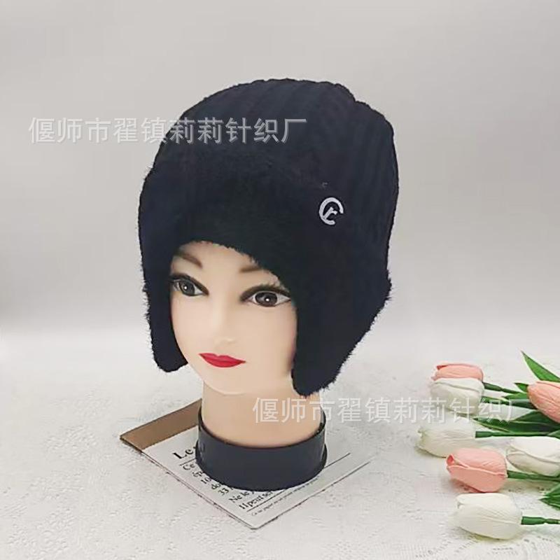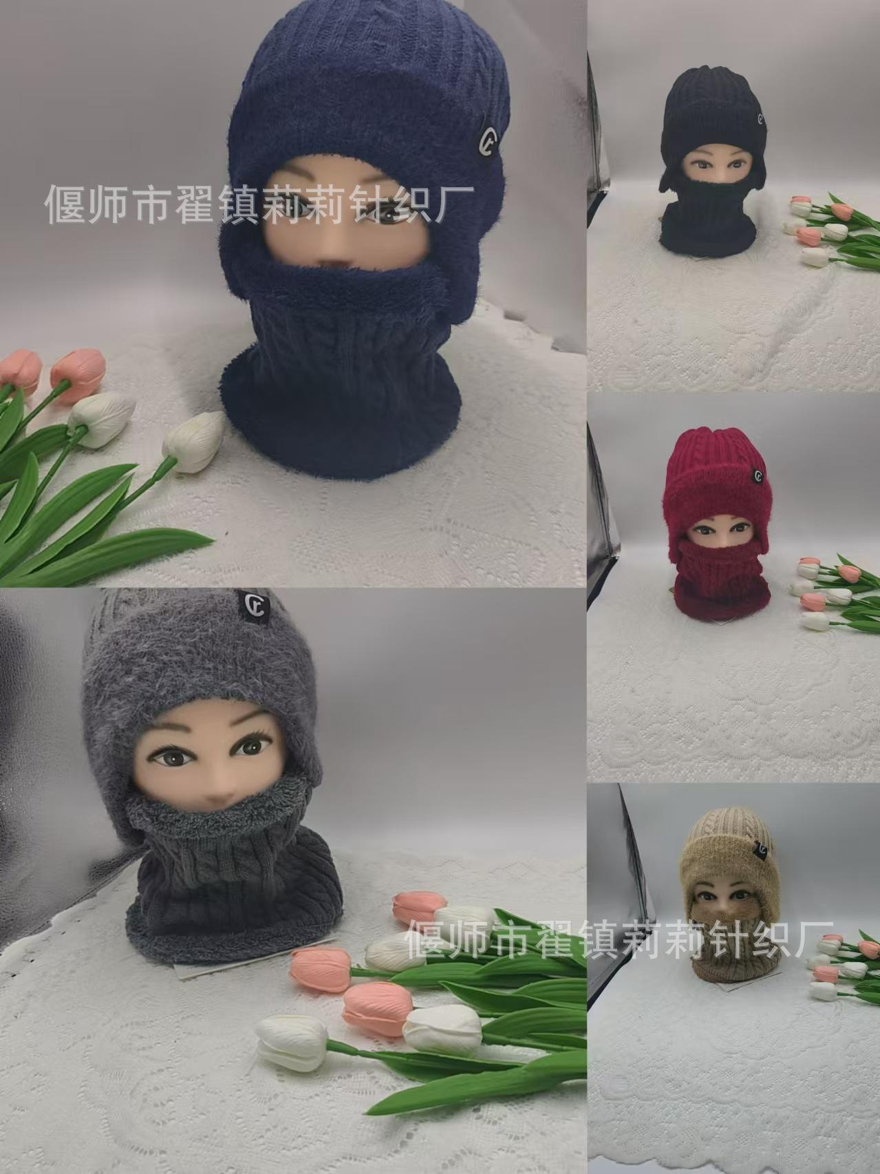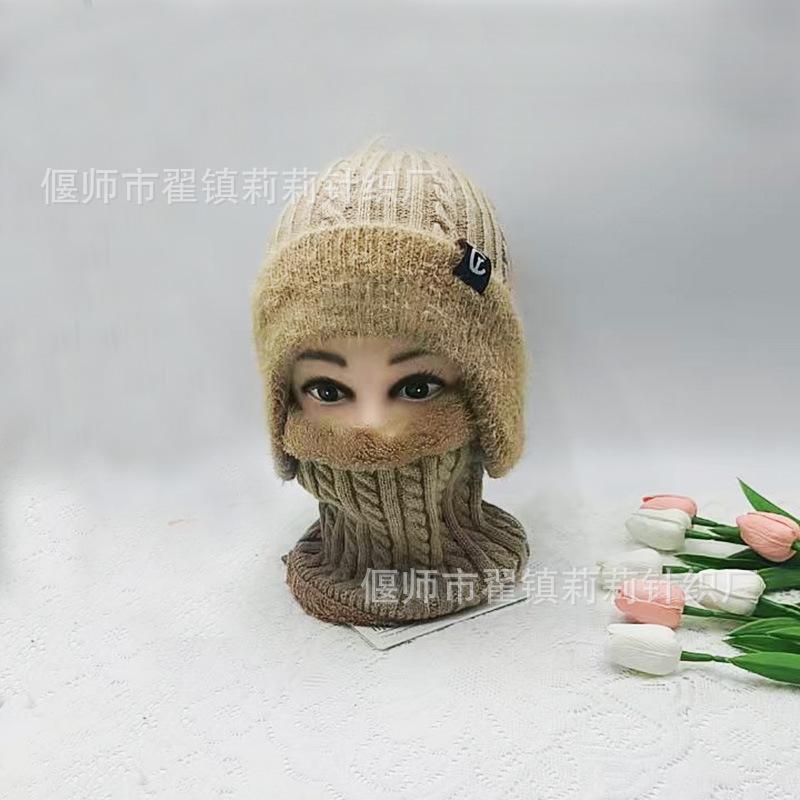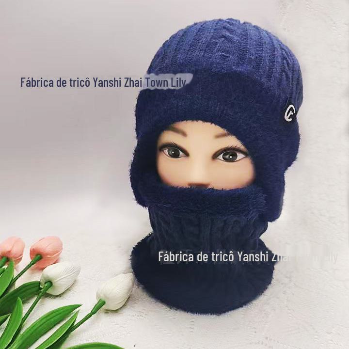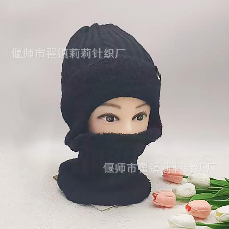 Chapéu Masculino Inverno Quente Proteção de Orelhas Forrado de Lã Chapéu de Malha Grosso Pescoço Duas Peças Cross-border Outono e Inverno Chapéu de Lã