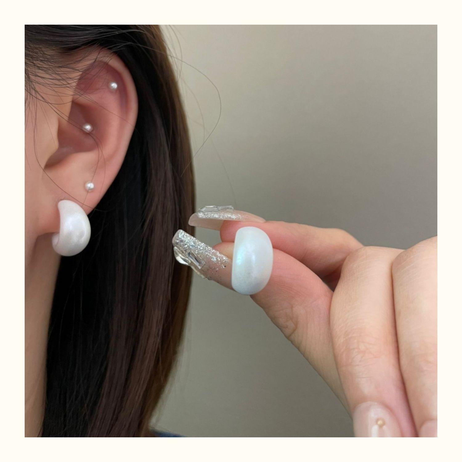Compre Verão Novos Brincos Femininos Creme Branco Pequeno C Anel Brincos S925 Prata Agulha Doce Legal Bonito Brincos Combinados Brincos no atacado no Joom.pro