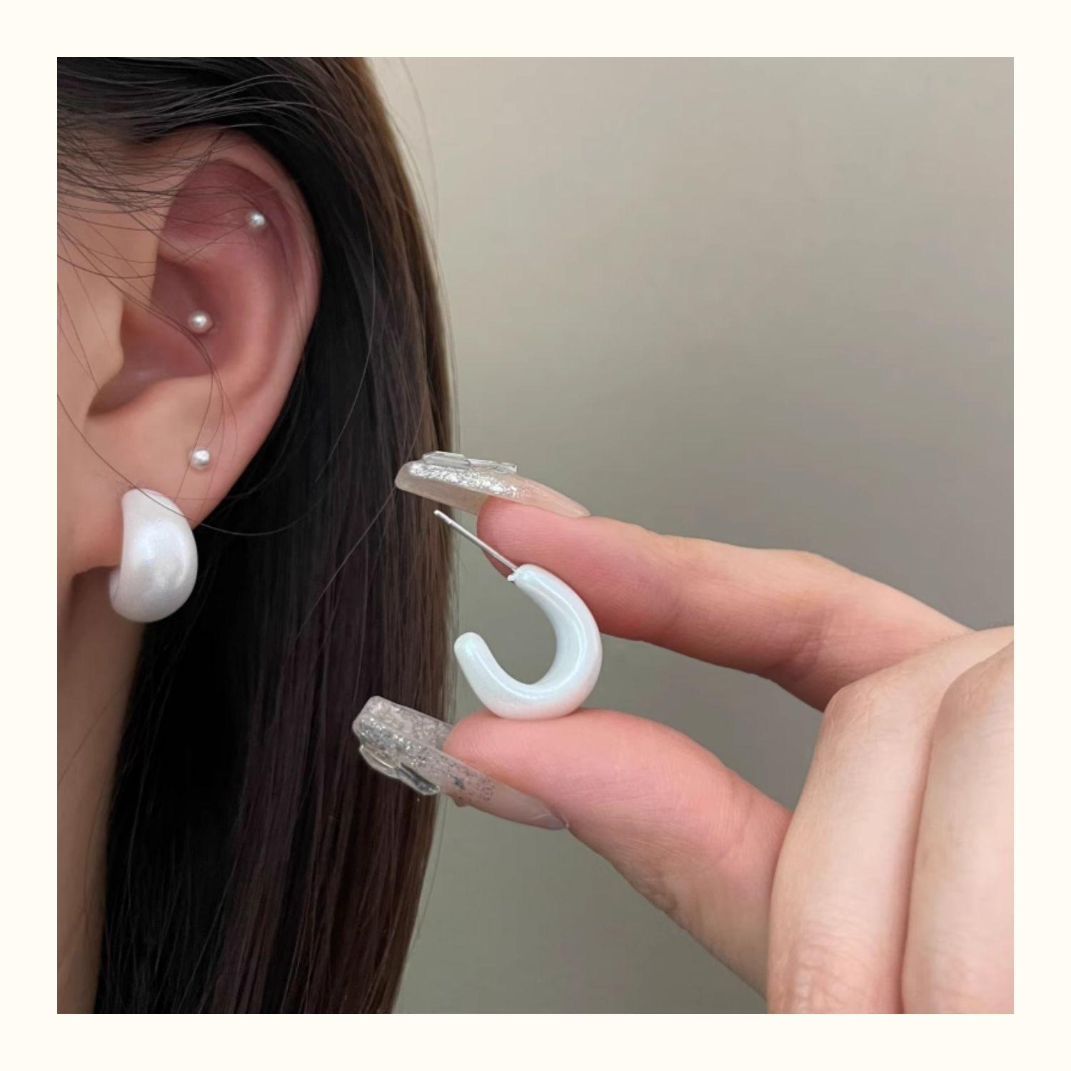 Verão Novos Brincos Femininos Creme Branco Pequeno C Anel Brincos S925 Prata Agulha Doce Legal Bonito Brincos Combinados Brincos