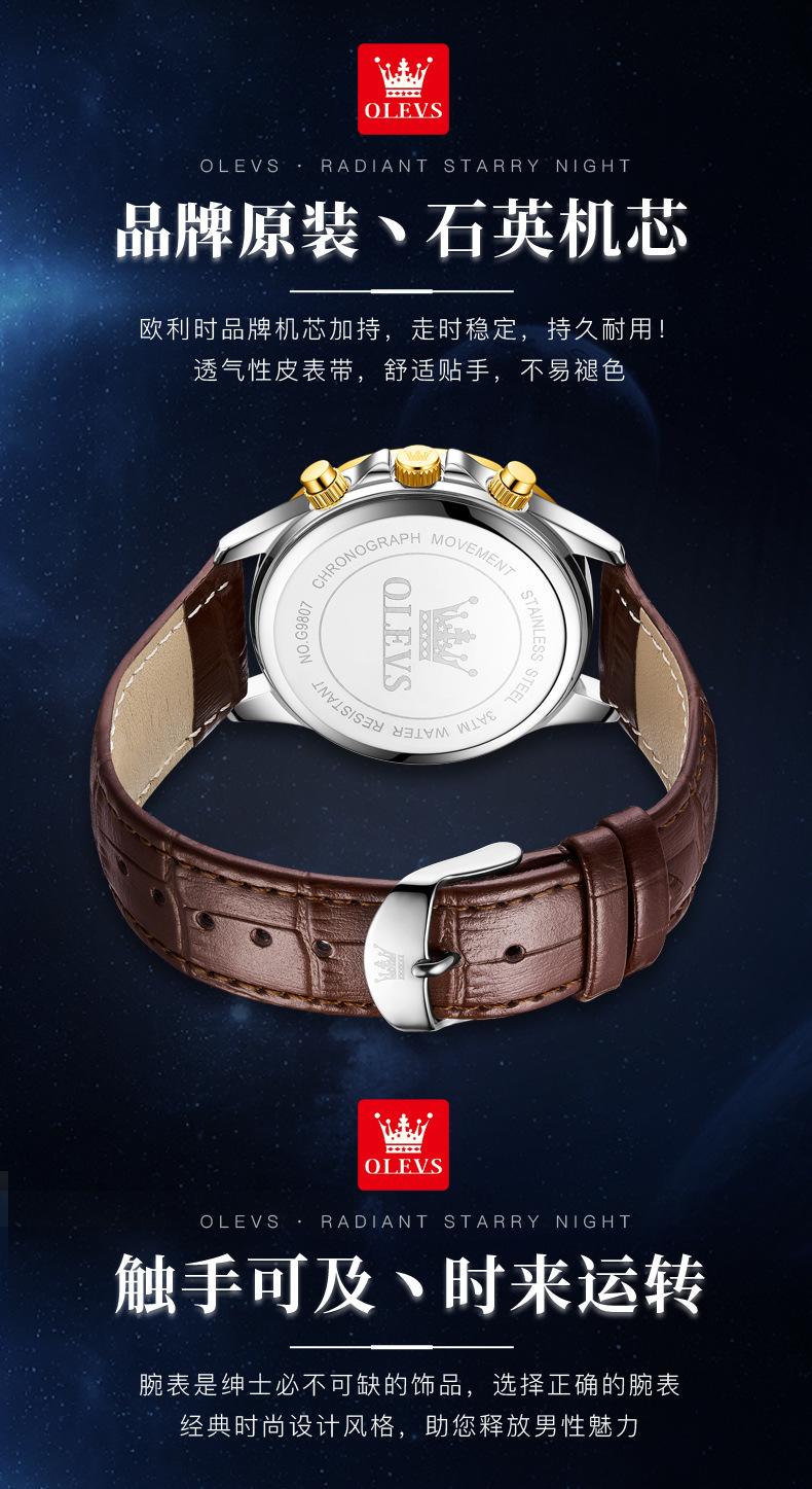 Uma geração de relógios da marca Oli, mostrador estrela, relógios masculinos multifuncionais de quartzo, relógios masculinos, atacado internacional