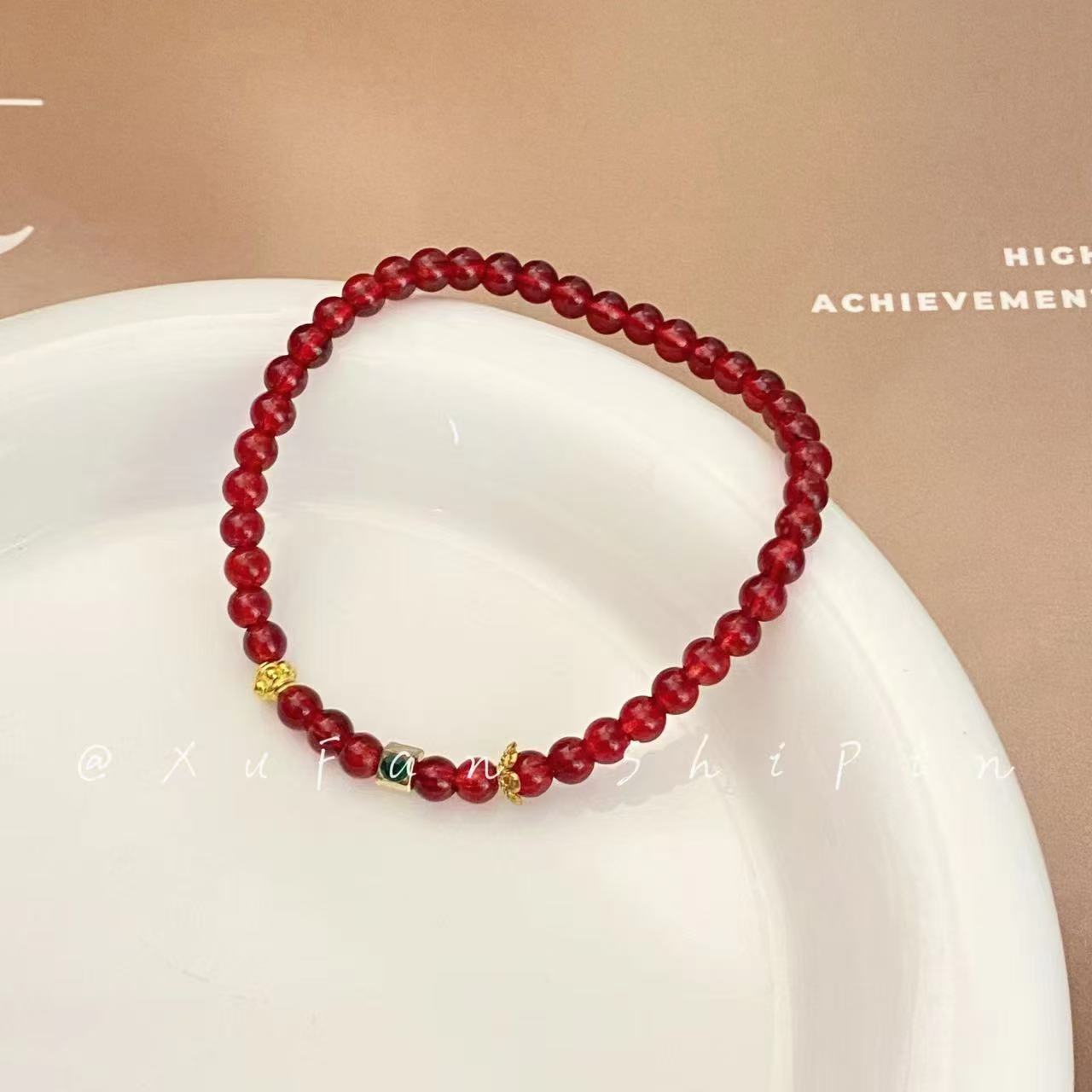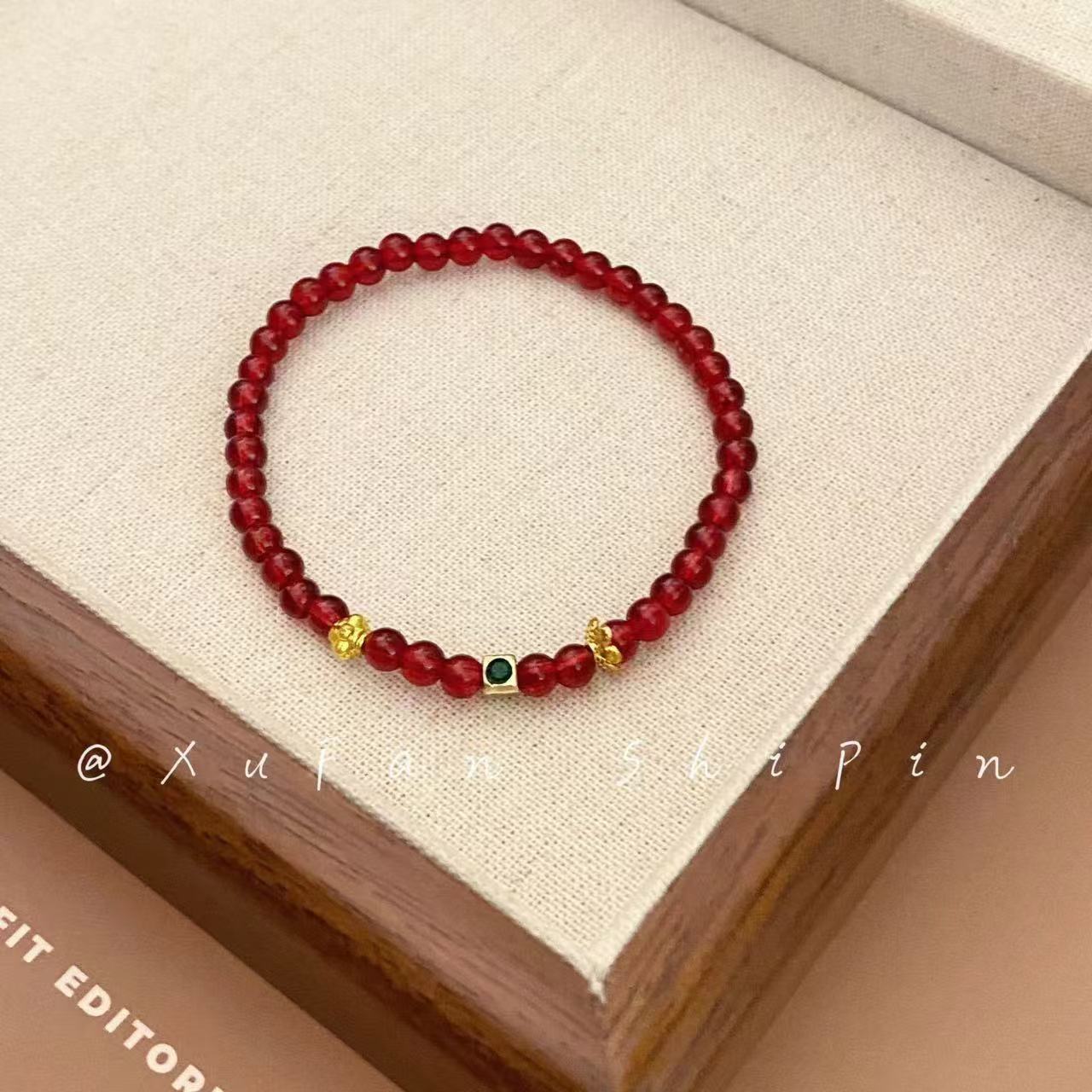Novo Estilo Chinês Moda Nacional Granada Frisado Pulseira Pulseira Estilo Retrô All-match Light Luxury Simples Niche Design Pulseira