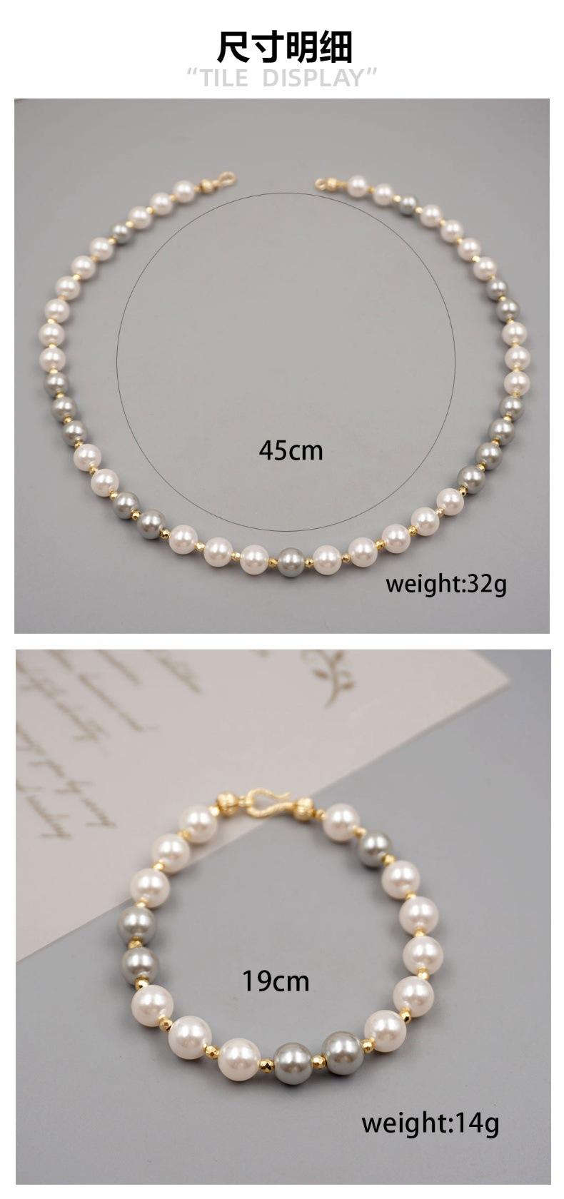 Nome do produto: Conjunto de colar e pulseira de contas de pérolas de imitação