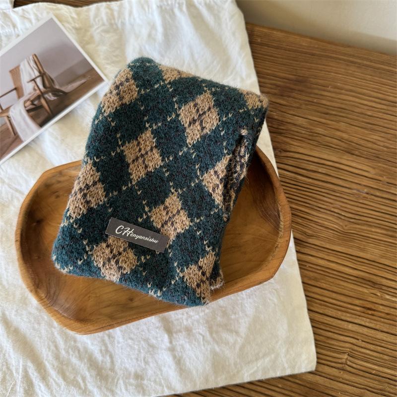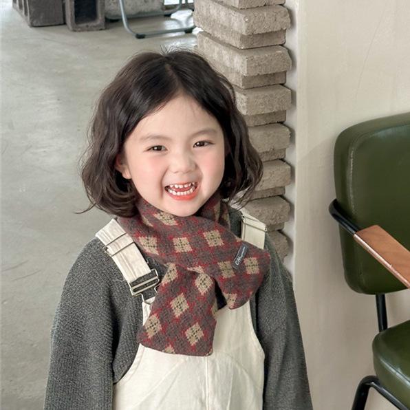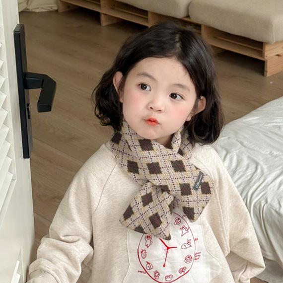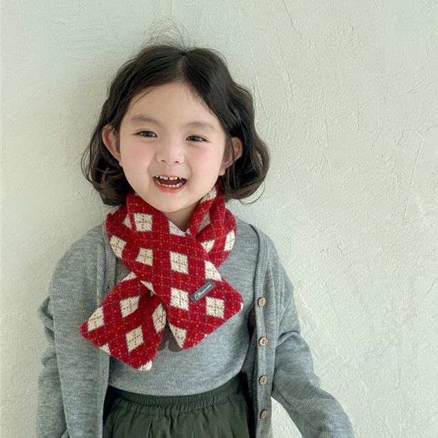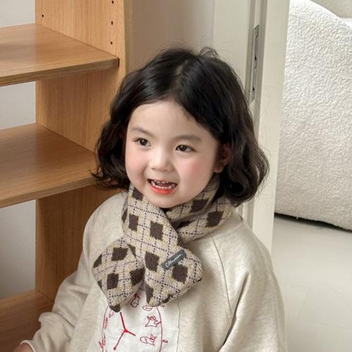 Cachecol de malha de diamante infantil coreano Contraste de cor Cachecol cruzado para todos os jogos Outono e inverno Bebê meninos e meninas usam cachecol